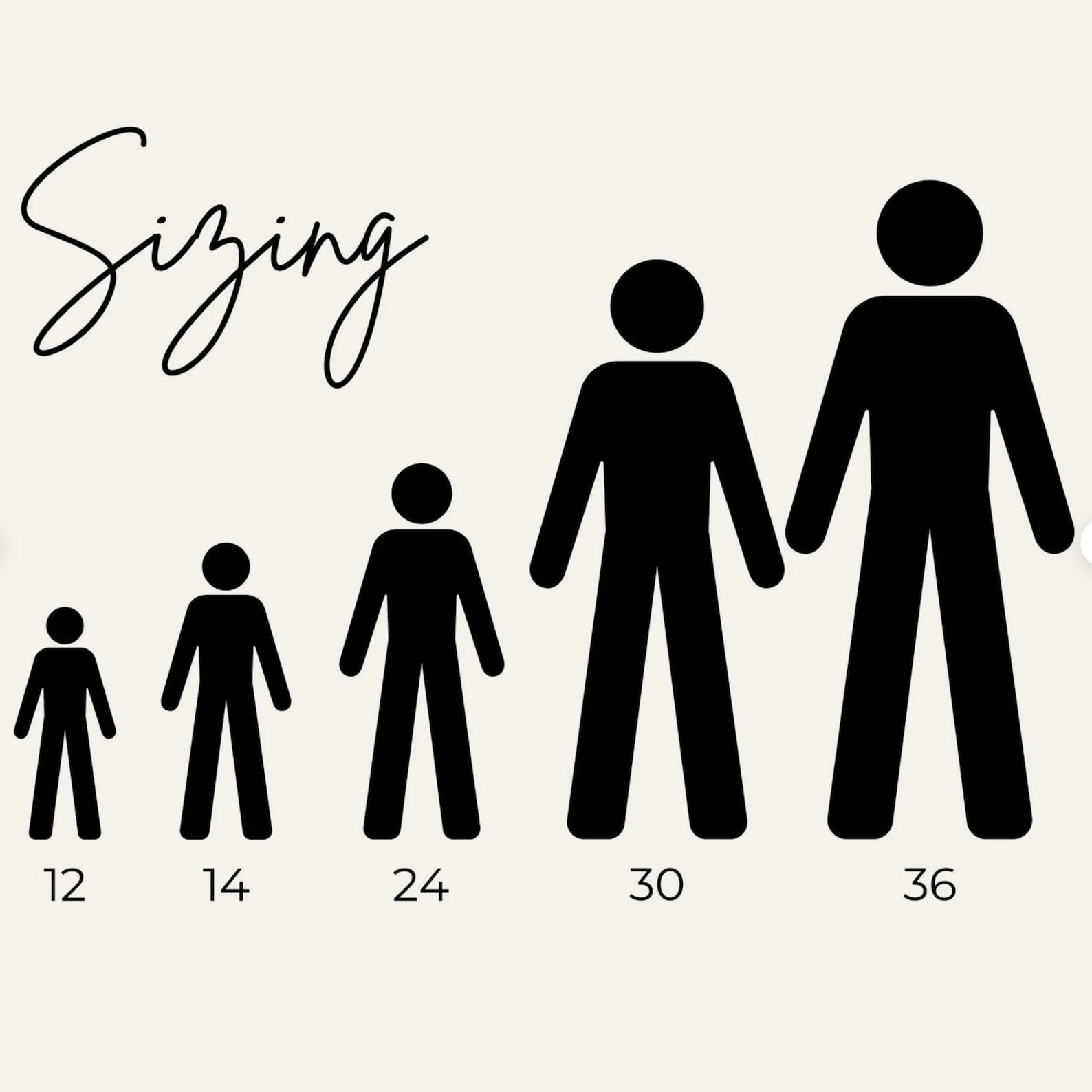 Sizing is based on the width from the left side of the large letter to the right side of the larger letter.