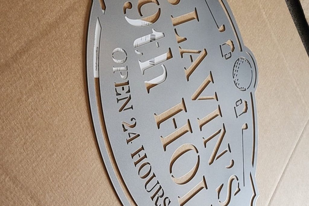 Made with 18 gauge steel and powder coated in your choice of 5 colors, this sign is built to withstand the elements for years of enjoyment. Add a touch of elegance to your home on the inside, outside, or both!