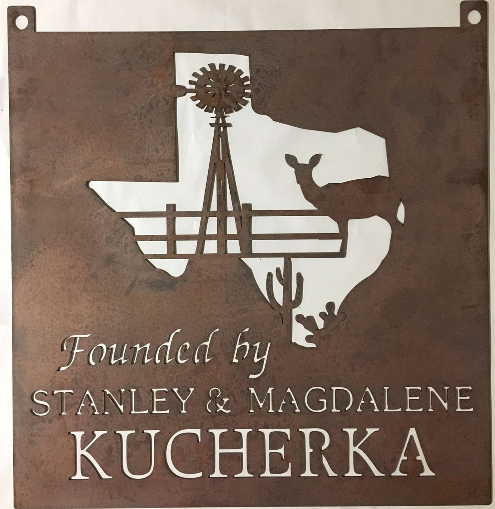 Sign finished in rustic copper acid wash with baked on clear coat or black baked on powder coat. PROOF WILL BE SENT TO YOU AFTER PURCHASE FOR YOUR APPROVAL. We will wait 24 hrs before we cut the sign. NOTE! If you order brushed metal, it will rust within a short time since theres no UV block, unlike black which is a solid finish