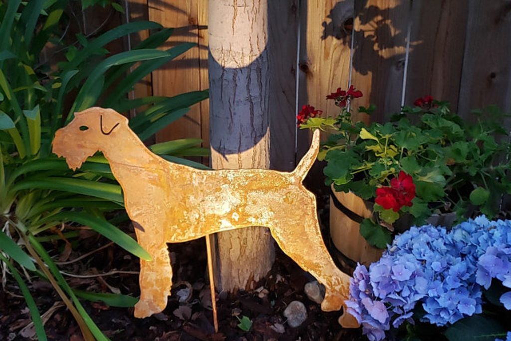 This handcrafted rusty metal Airedale Terrier Garden Stake or Wall Hanging will become a decorative favorite. A charming way to add some fun to your home or outdoor garden decor.