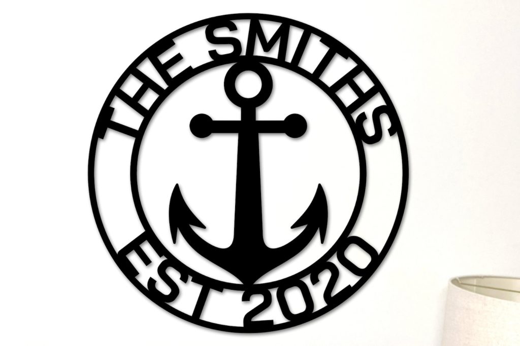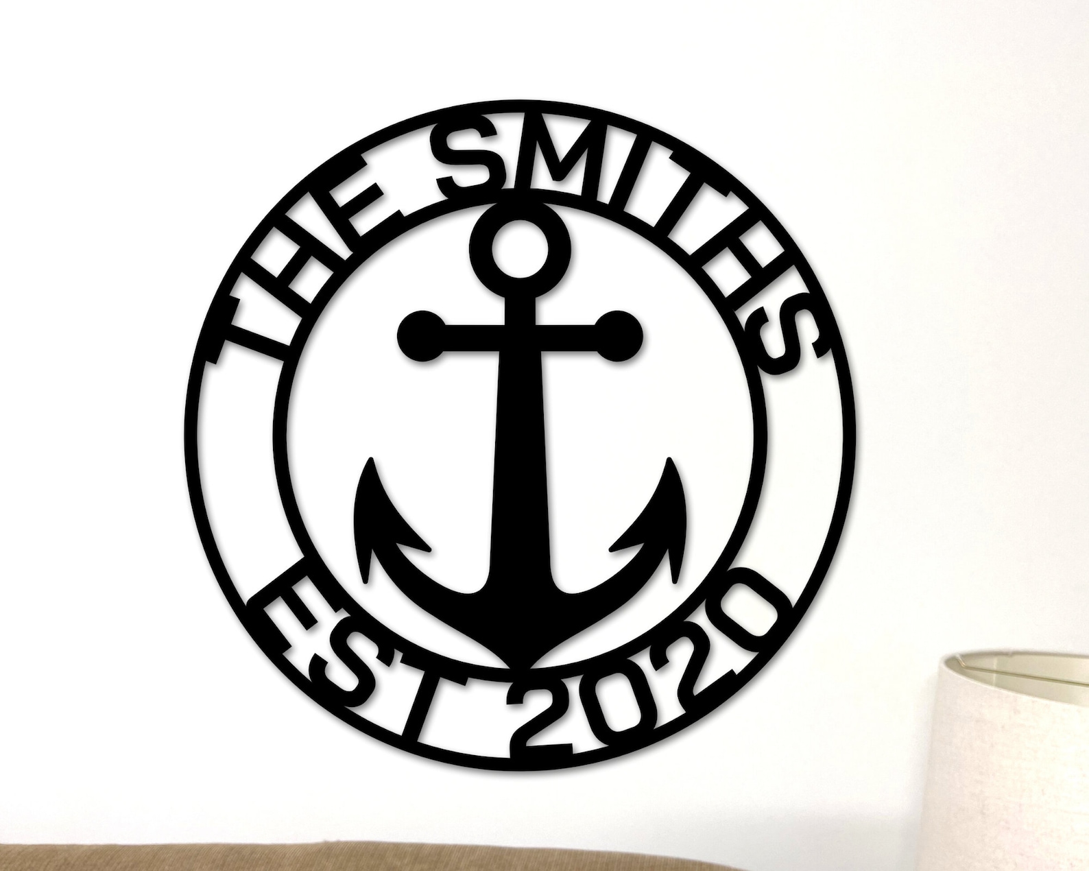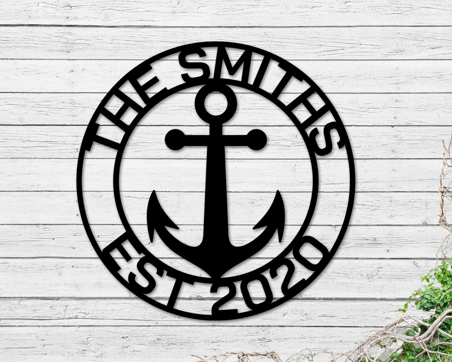 Anchor Sign: Last Name Metal Sign, Coastal Decor