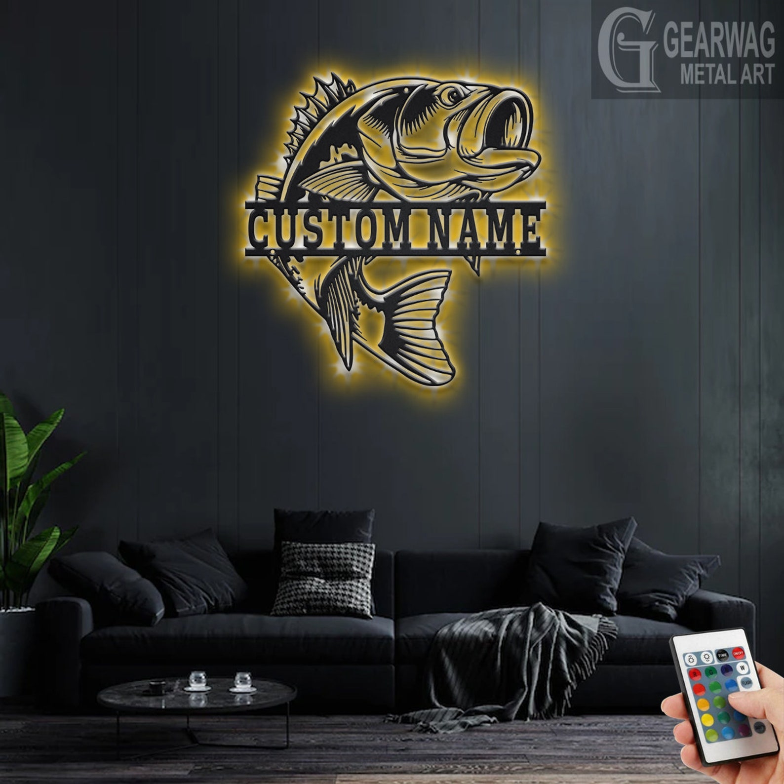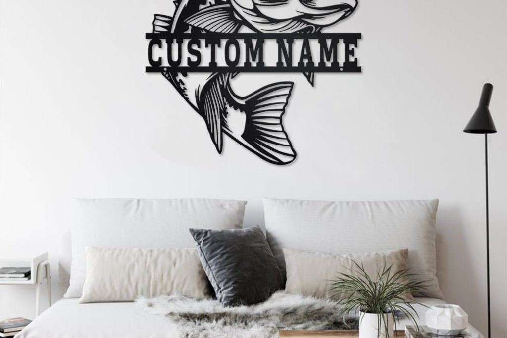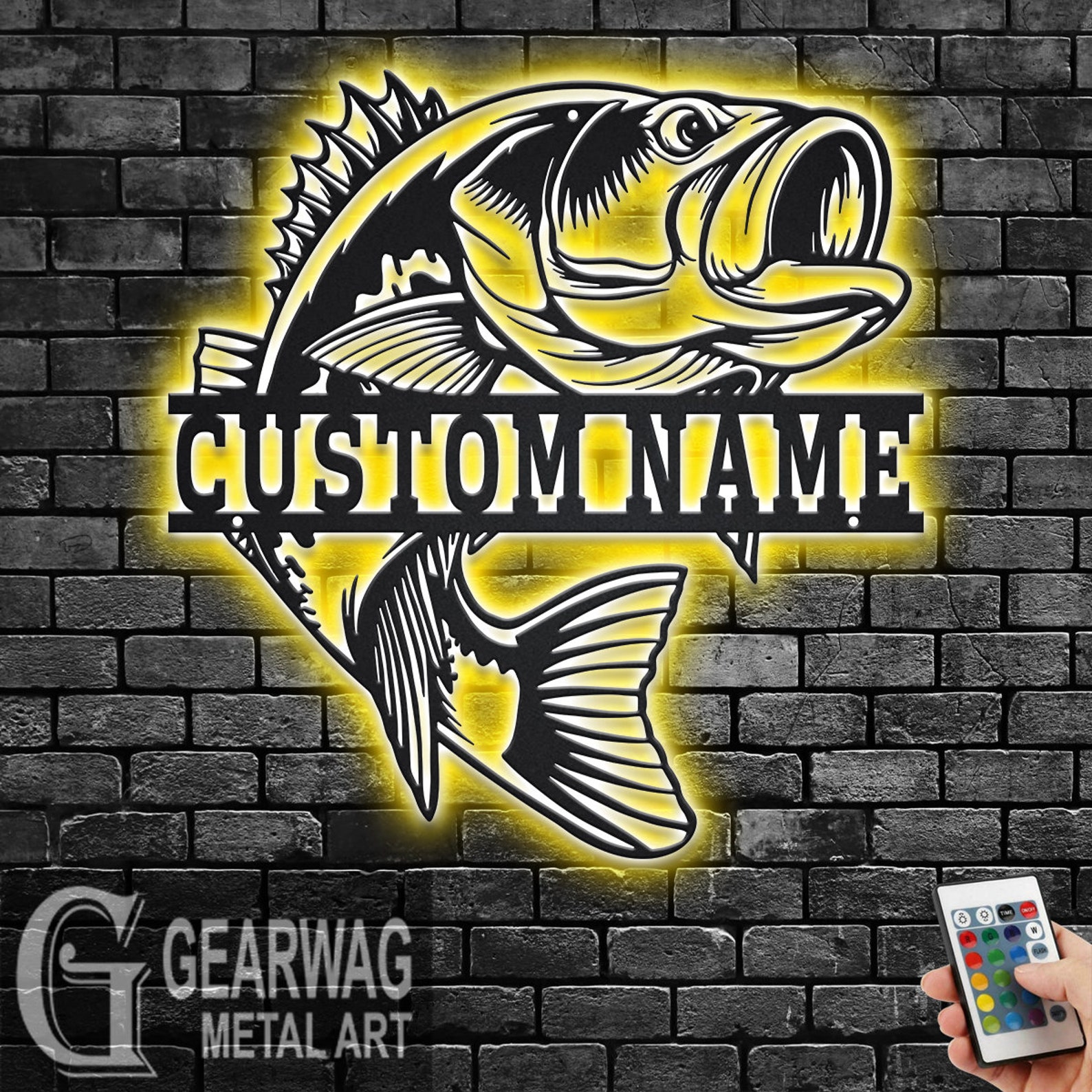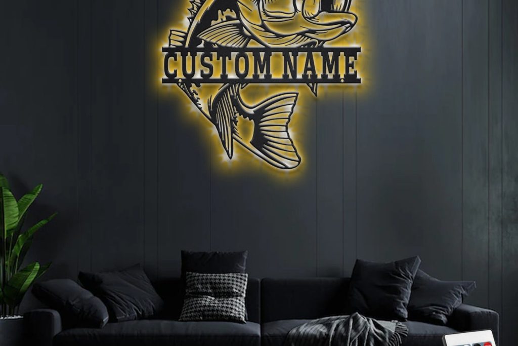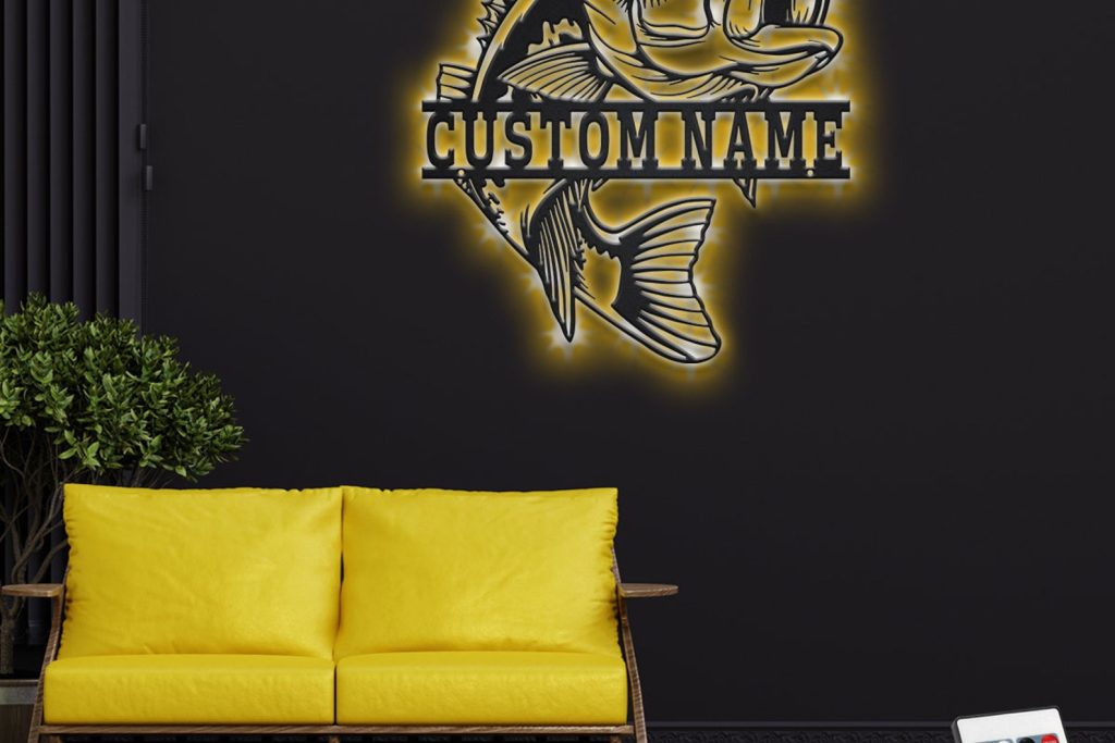Bass Fish Metal Art with LED, Personalized Sign