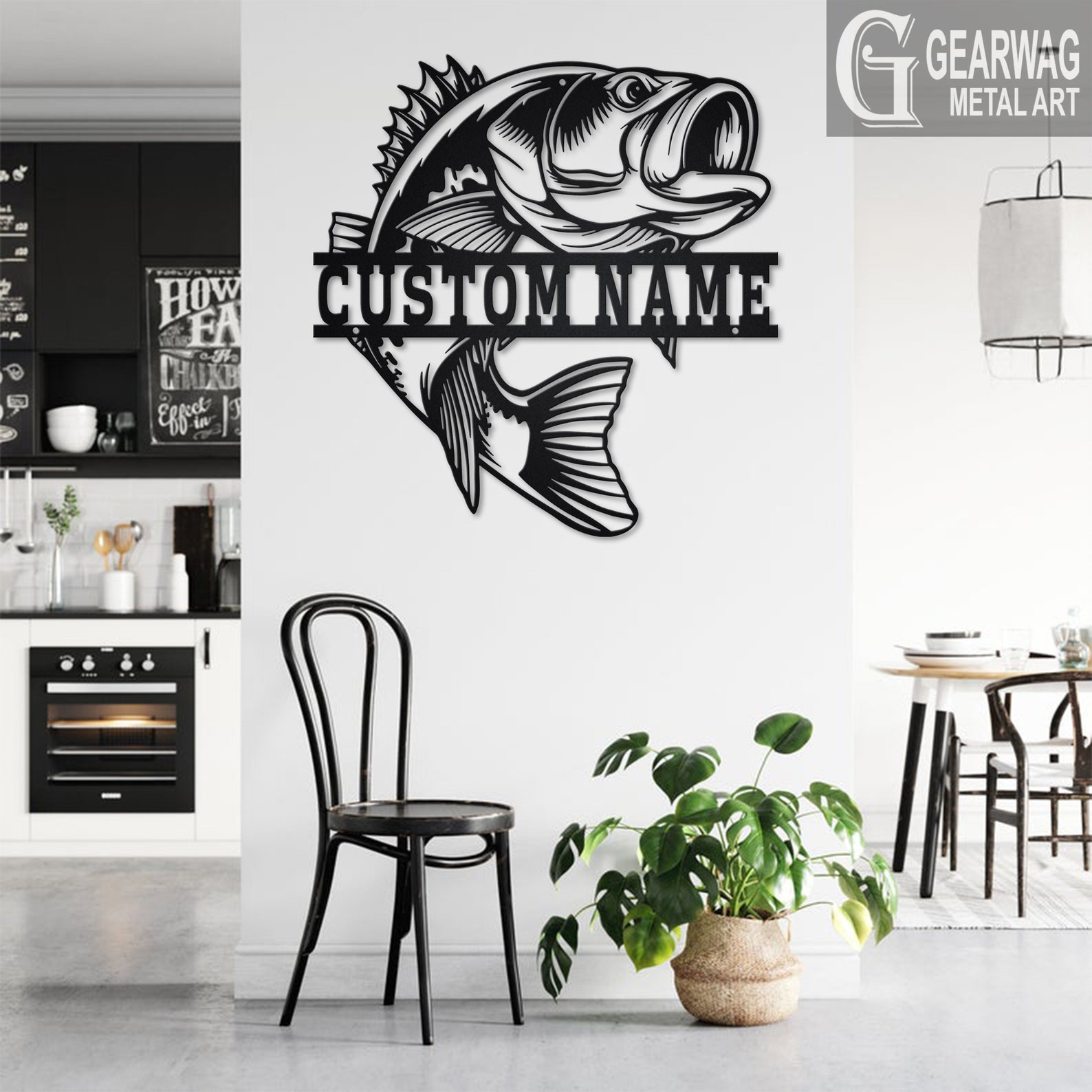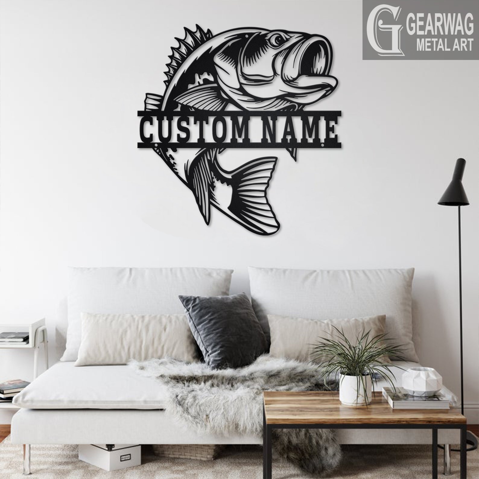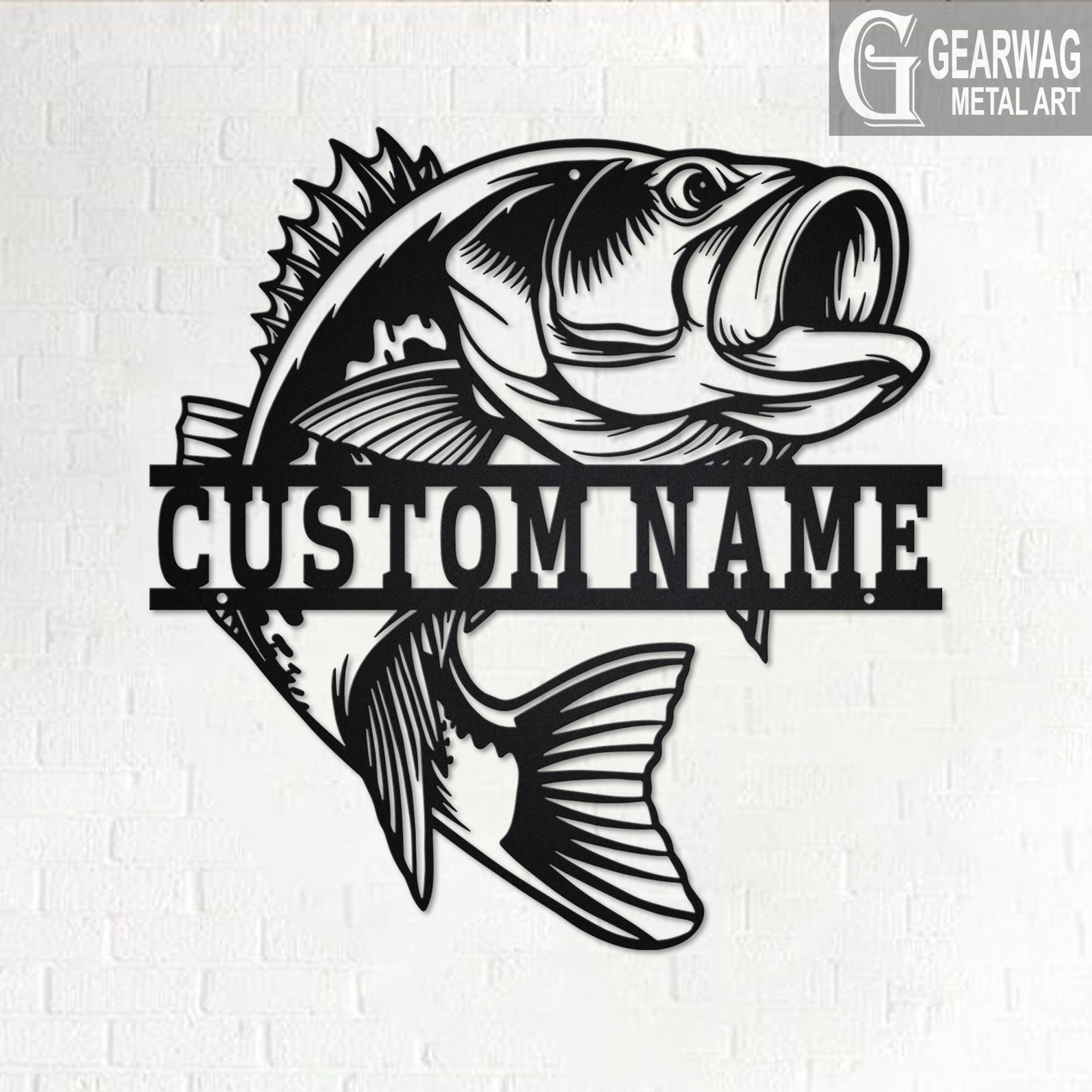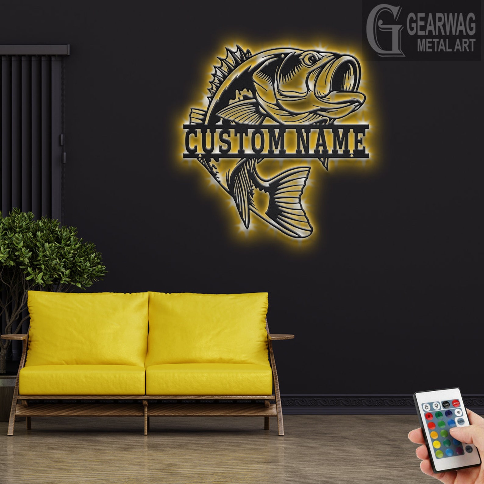 Bass Fish Metal Art with LED, Personalized Sign