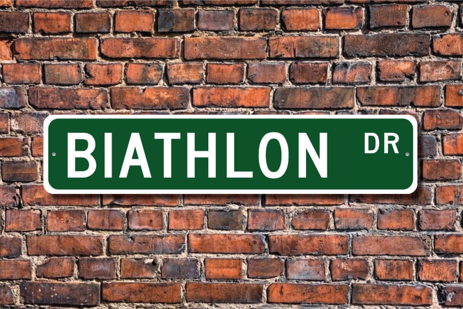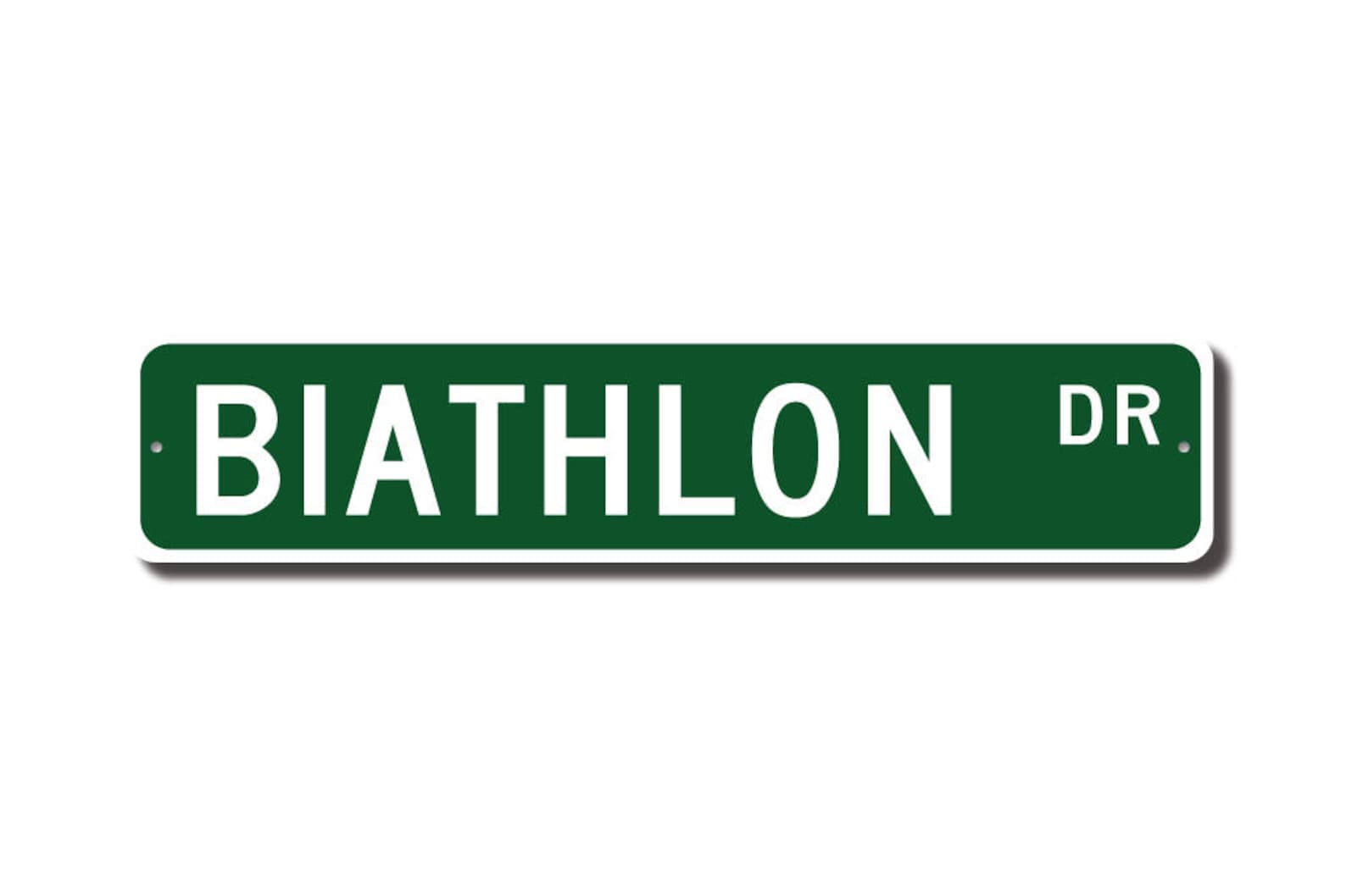 Biathlon lovers check out this awesome street sign! This will make the perfect piece for any Biathlon fan, or maybe you are a Biathlon lover looking for a cool decor piece ! Made of premium aluminum it will stand the test of time. This sign will look great in any room, home den, cave, or office ! Get this sign for your favorite Biathlon aficionado !