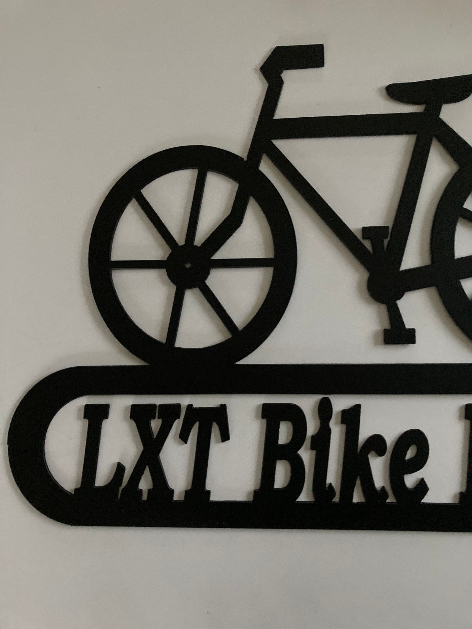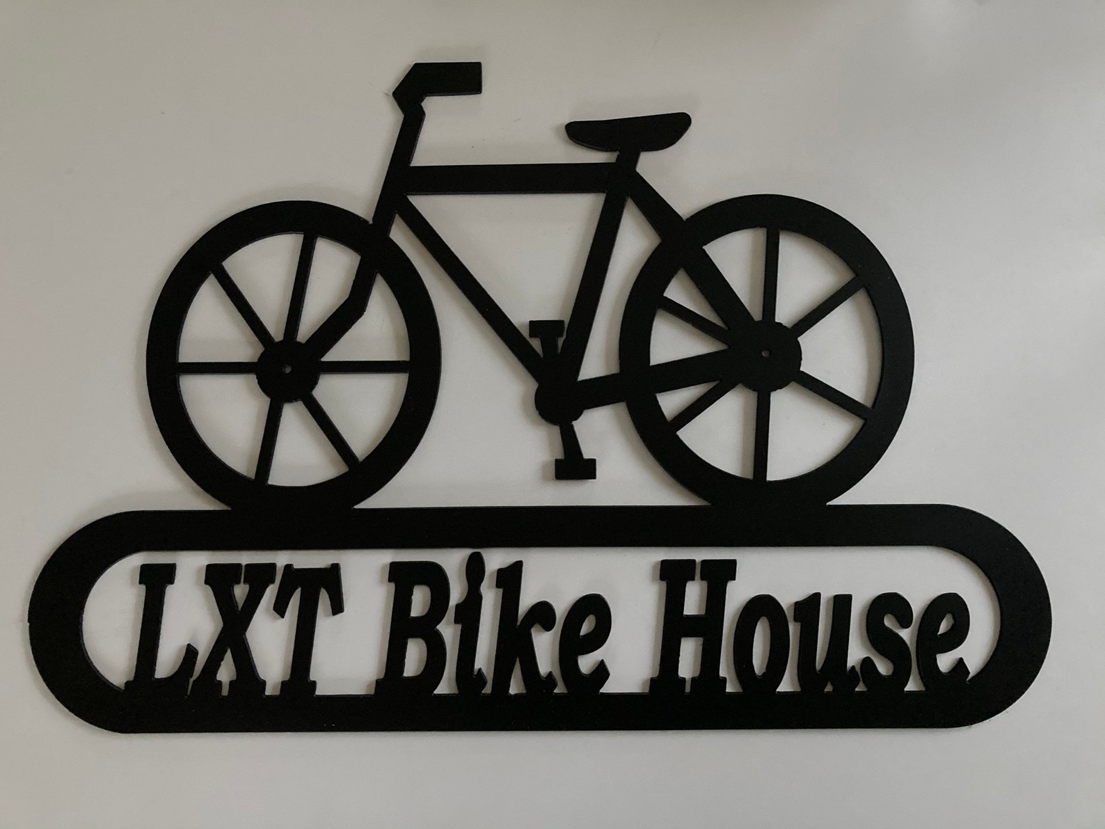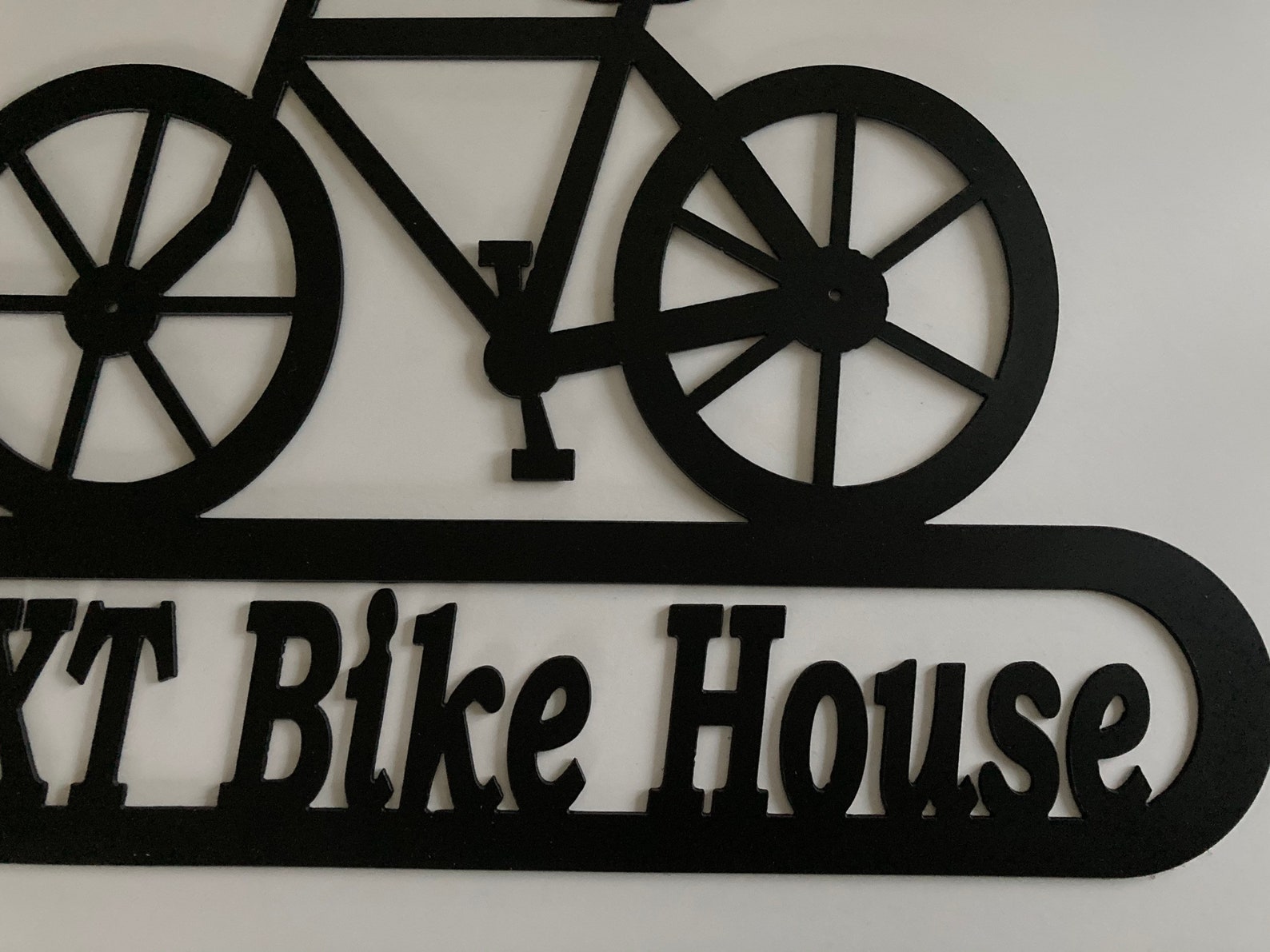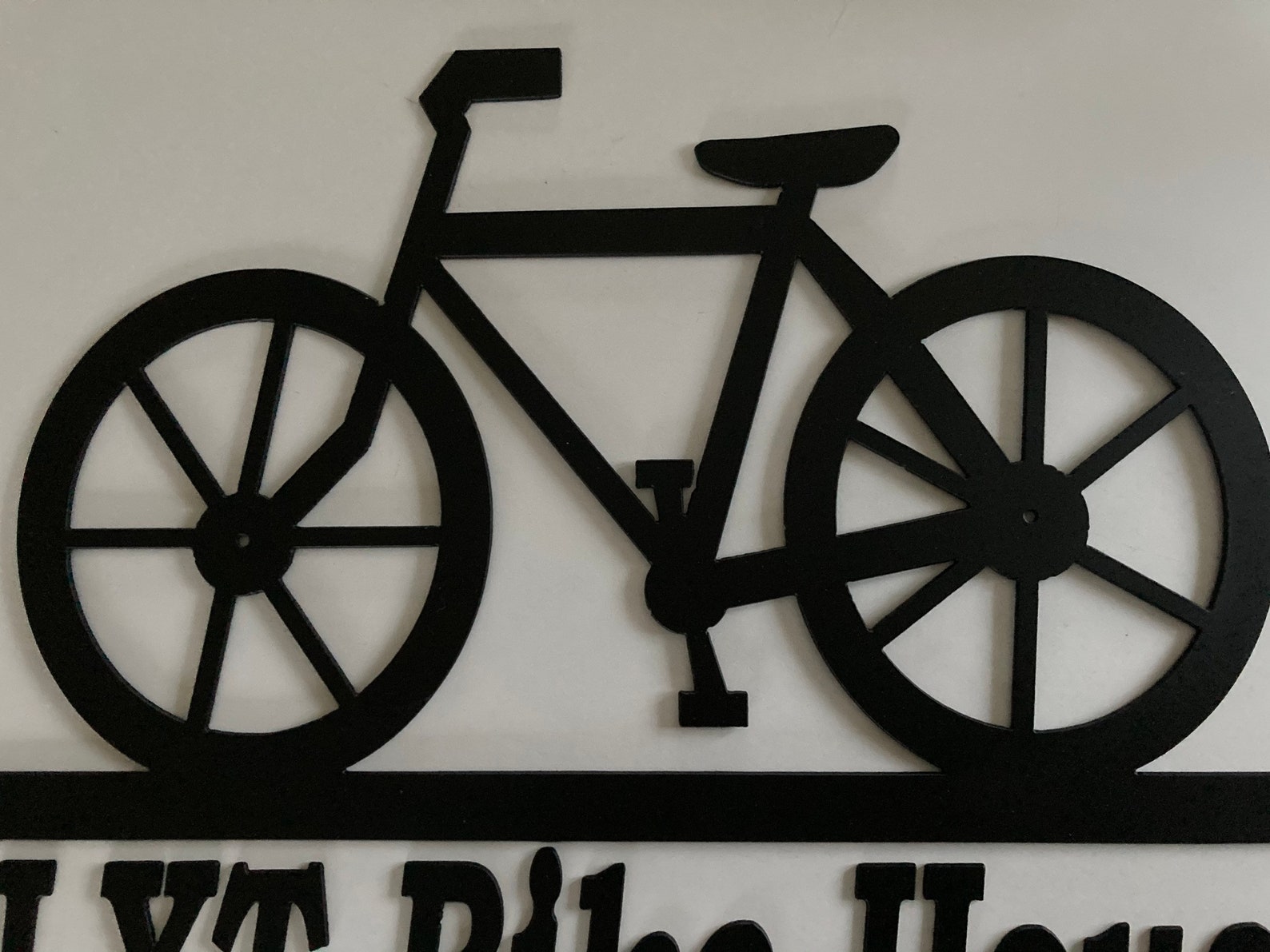 Metal Bike Decor with Address or Your Name. Approx. 14" x 21". Painted Black. Custom order yours. 14 gauge metal. Birthday, Christmas, or Housewarming gift. More Unique Metal Decor Available: