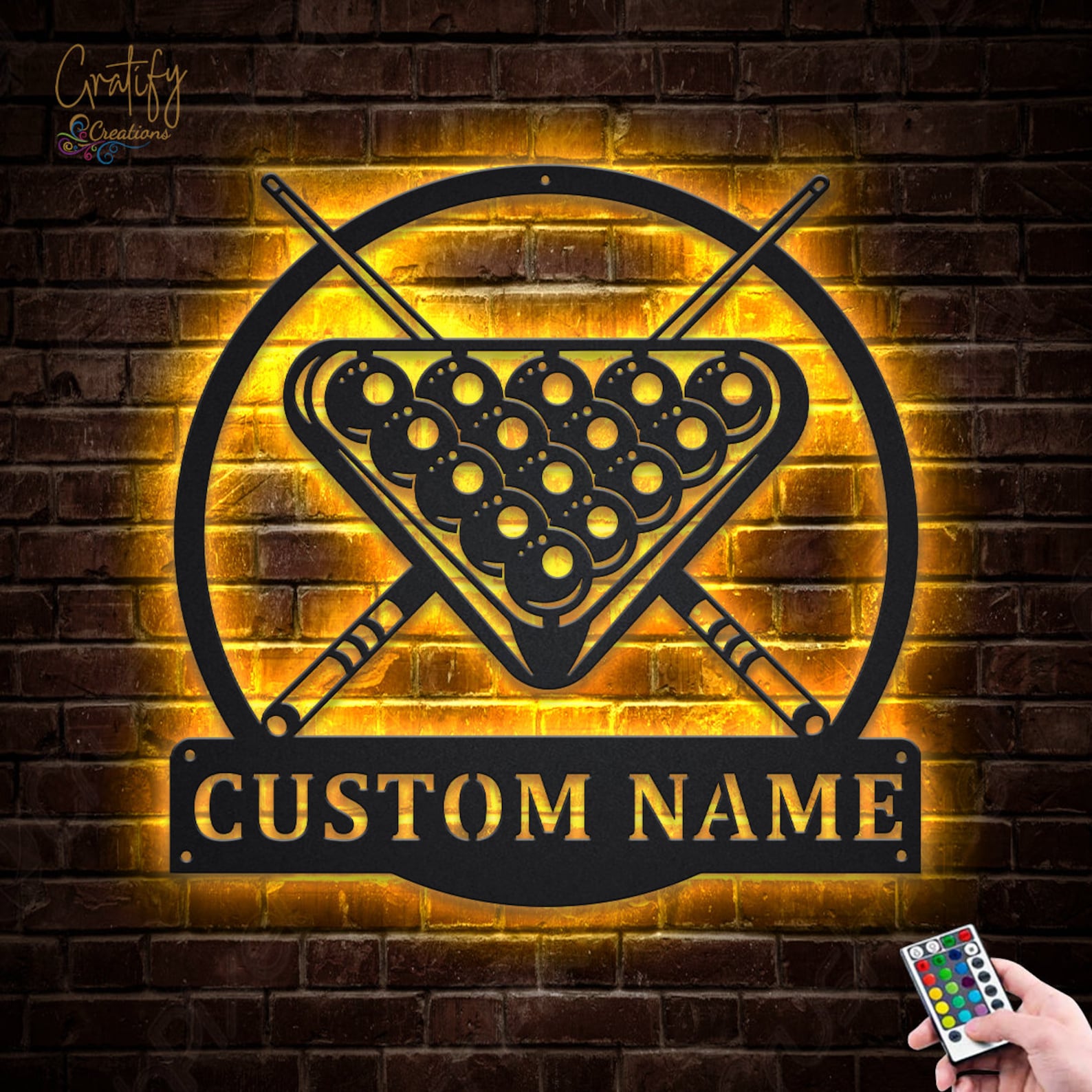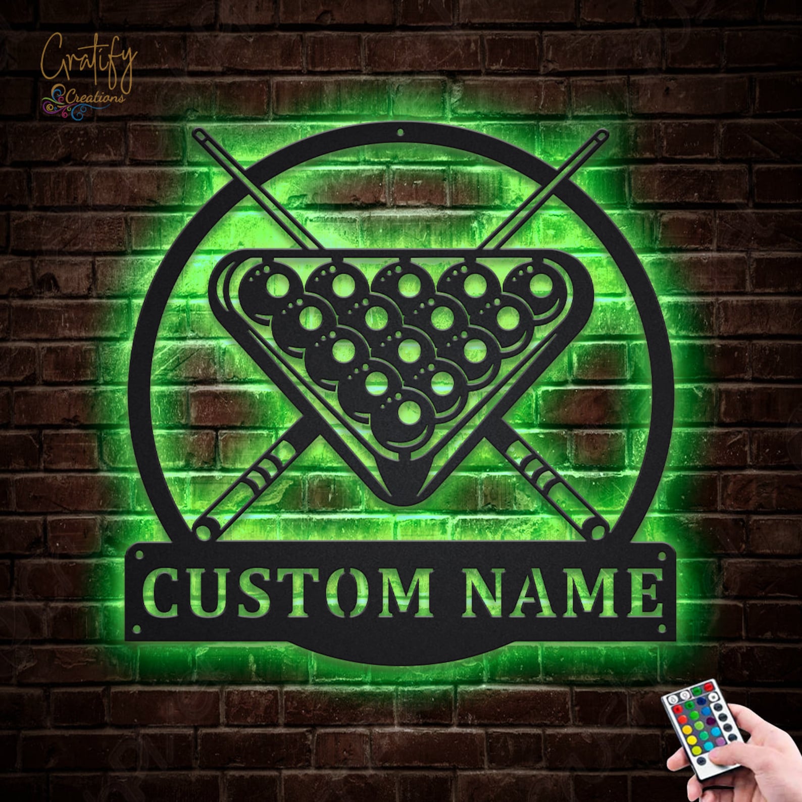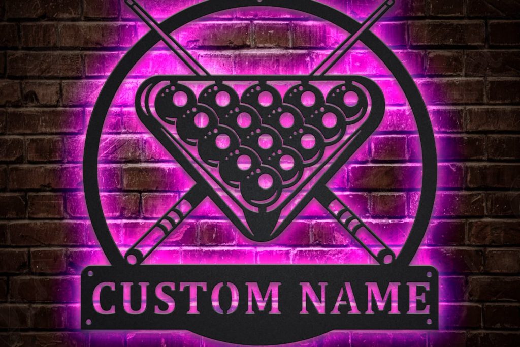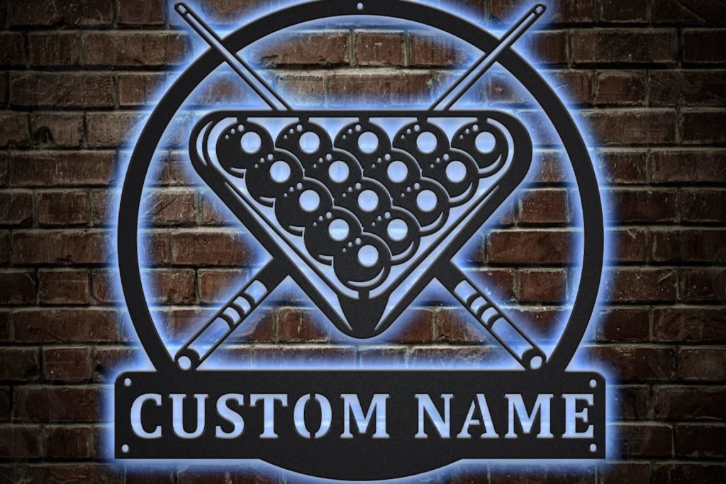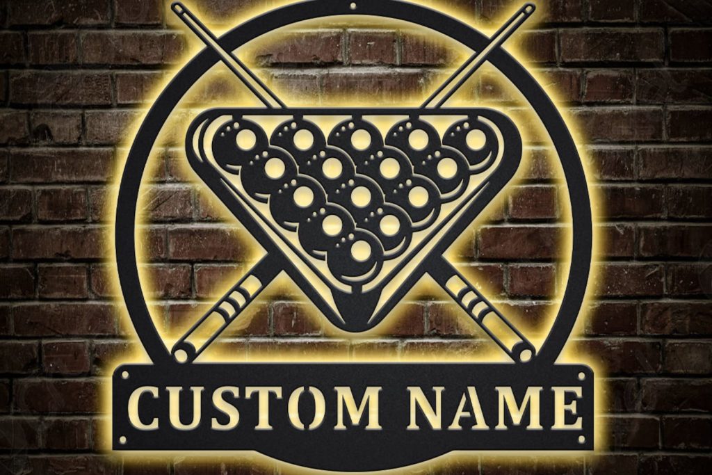 Elevate your home decor or impress customers in your restaurant or shop with our collection of billiards-themed signs and wall art. Choose from a variety of options, including our Billiards Neon Sign, Billiards LED Sign, and Custom Neon Sign to add a unique touch to any space. For a more personalized touch, check out our Personalized Billiards Neon Metal Sign, Billiards Wall Art, and Pool Player Metal Wall Hanging, all of which can be customized with your own name or message. These make great gifts for Christmas, Father9;s Day, or any occasion, and are sure to be a hit with any pool or snooker fan. Shop now and add some character to your man cave or game room!