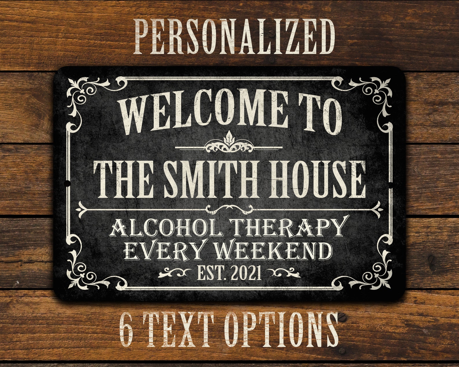 Personalized Vintage-look Bar Sign | Customize this sign | Great Gift | Customize this sign with your first name, last name or whatever bar name you choose. Designed with a weathered, antiqued look. This sign will look great in any bar, home bar, basement, or garage. Let friends and family know etly where the party starts at your place!