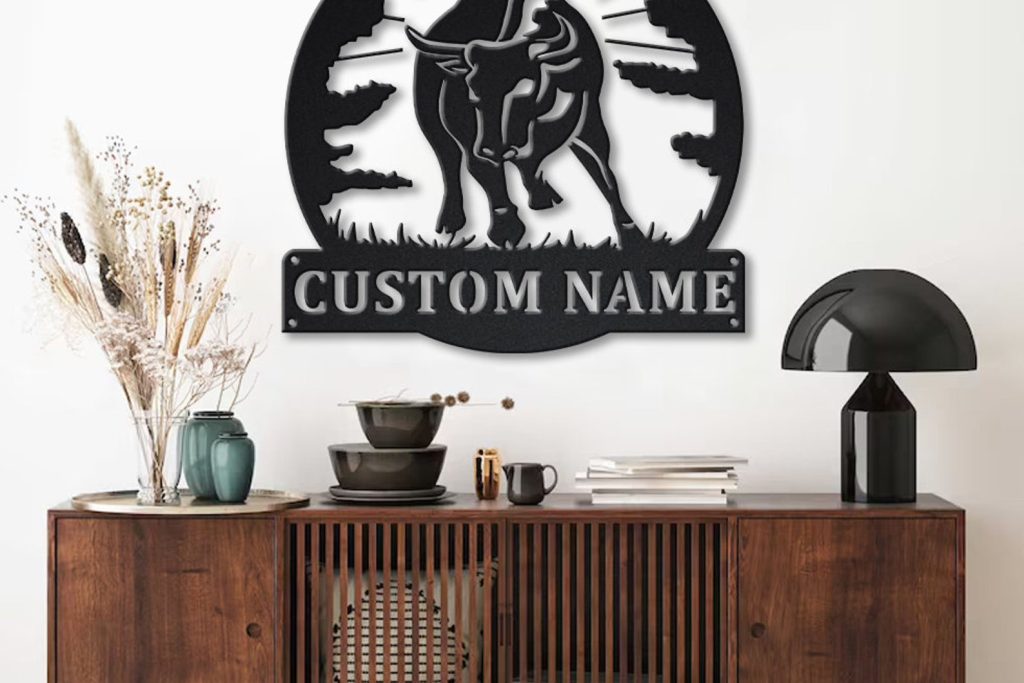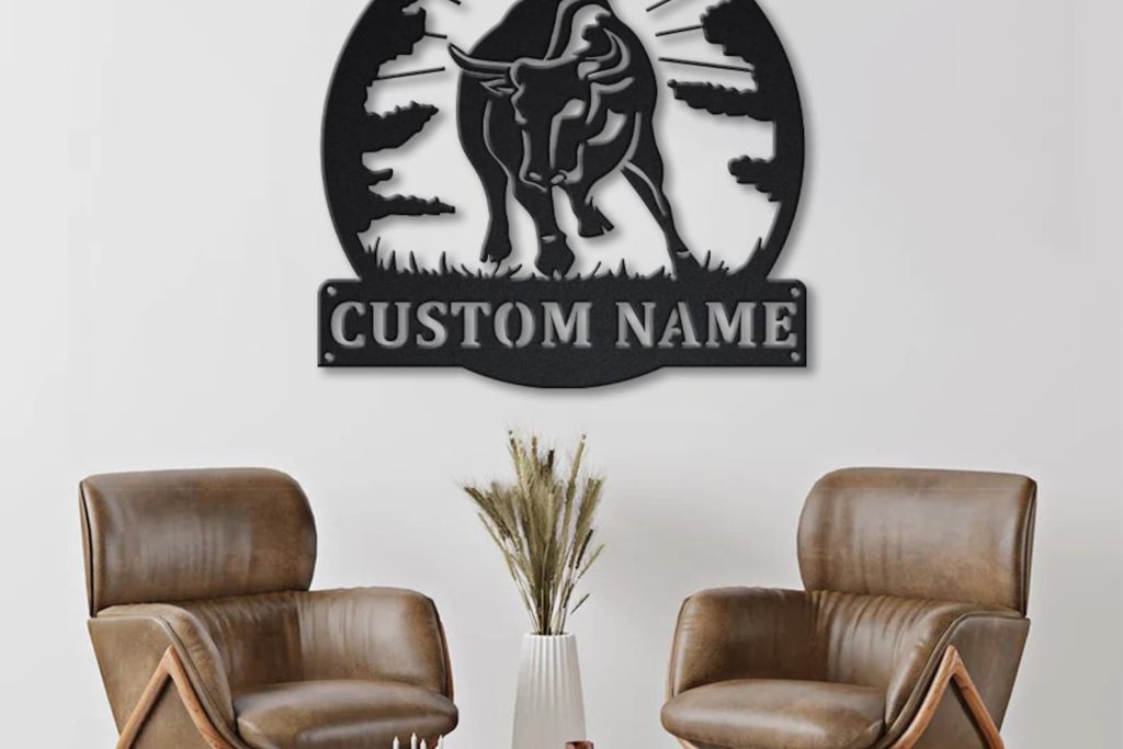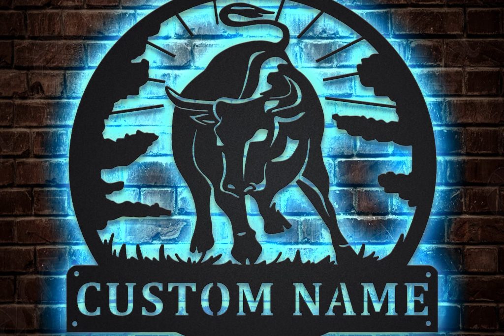 Black Bull Sign – LED Metal Farmhouse Decor