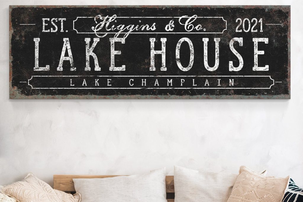 This custom vintage sign is a unique addition to your modern farmhouse decor! The graceful fonts and distressed texture add effortless, rela style to your home, or vacation getaway.