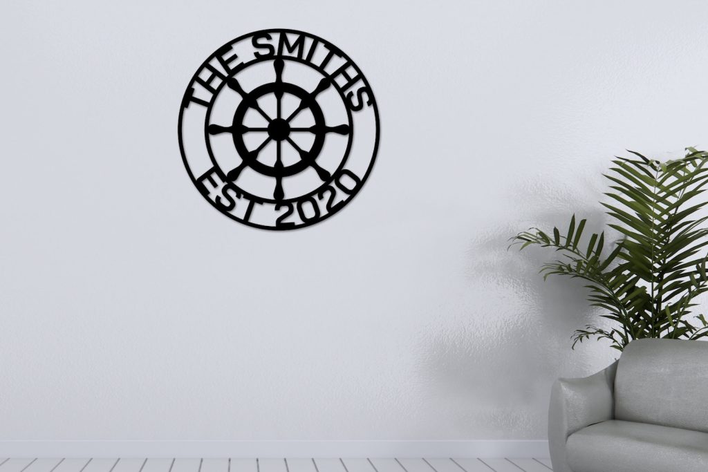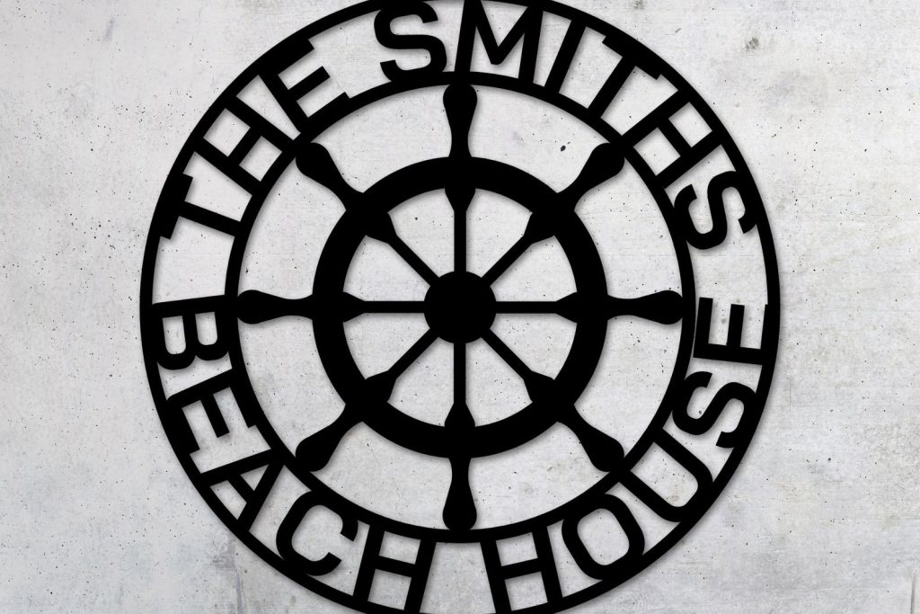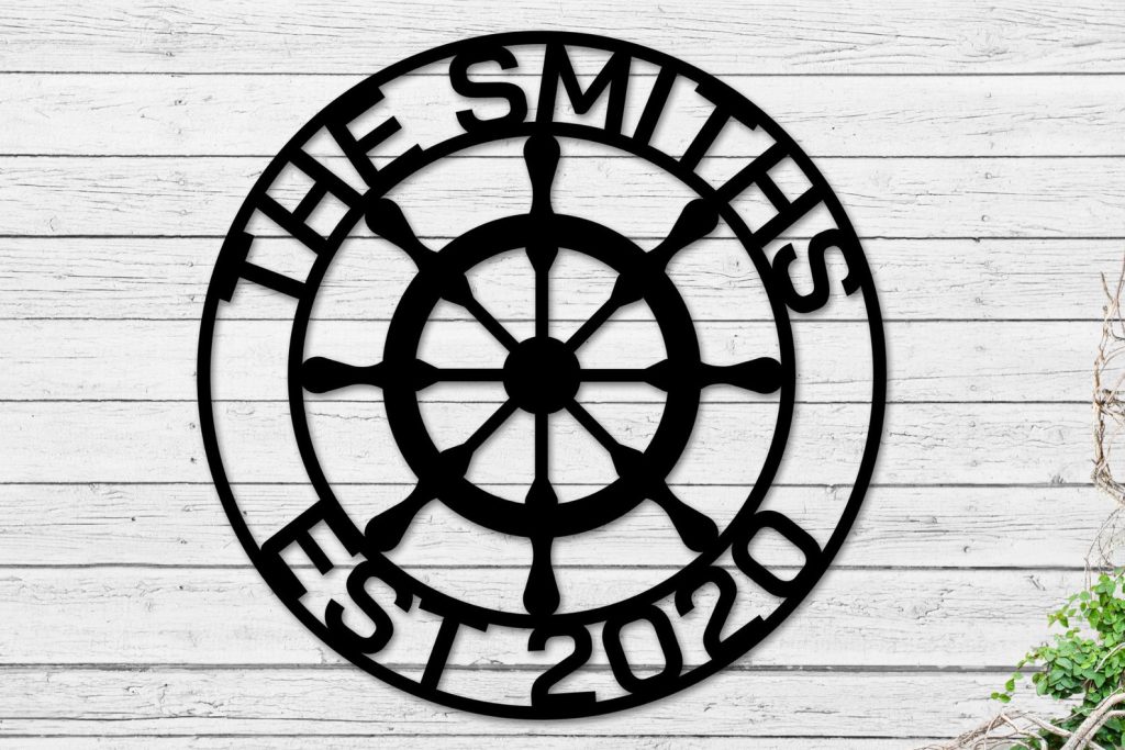 Boat Wheel Metal Sign, Nautical Beach House Decor
