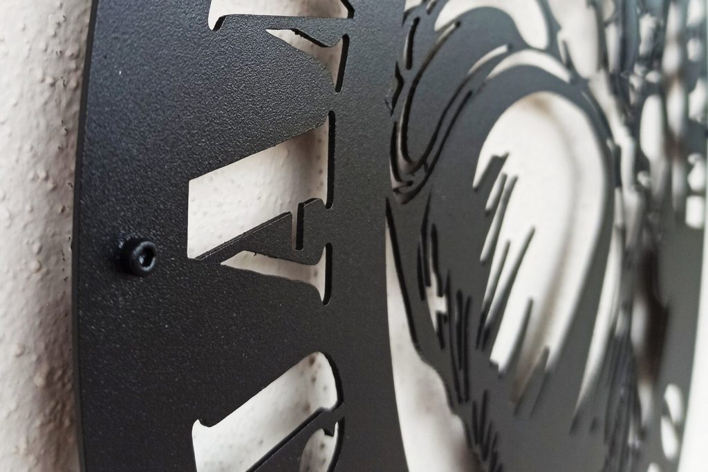 The product stands 0,4inches (1 cm.) from the wall. Lightweight metal decor is easy to handle, to mount and ready to hang on your walls. You can hang it with a single nail from the hook on the back of the decor. Doesn9;t need any additional mounting process. Feel free to message us for any advice on hanging your new sign.