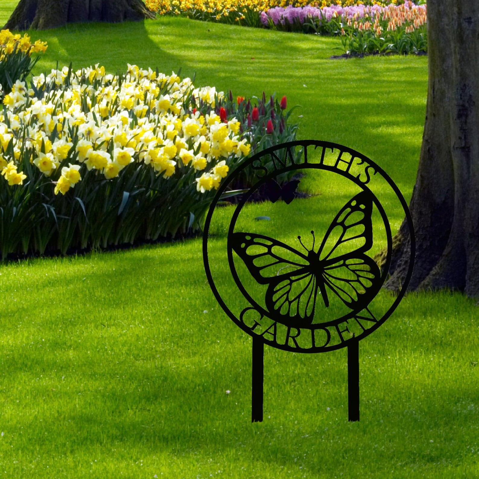 This personalized metal garden sign is the perfect piece to decorate your garden and home! This custom butterfly art yard art is perfect for your garden, yard, or patio.