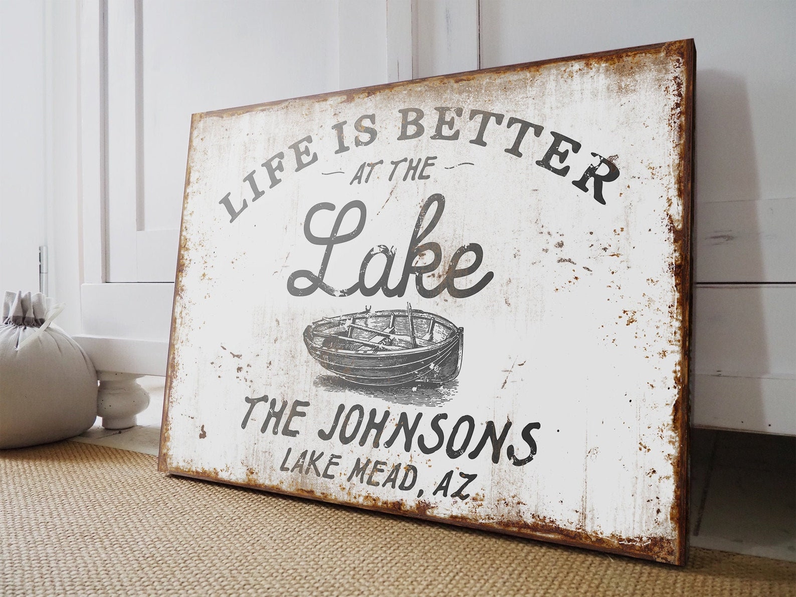 Rustic, personalized metal sign with house on a hill scene or cabin on a hill.