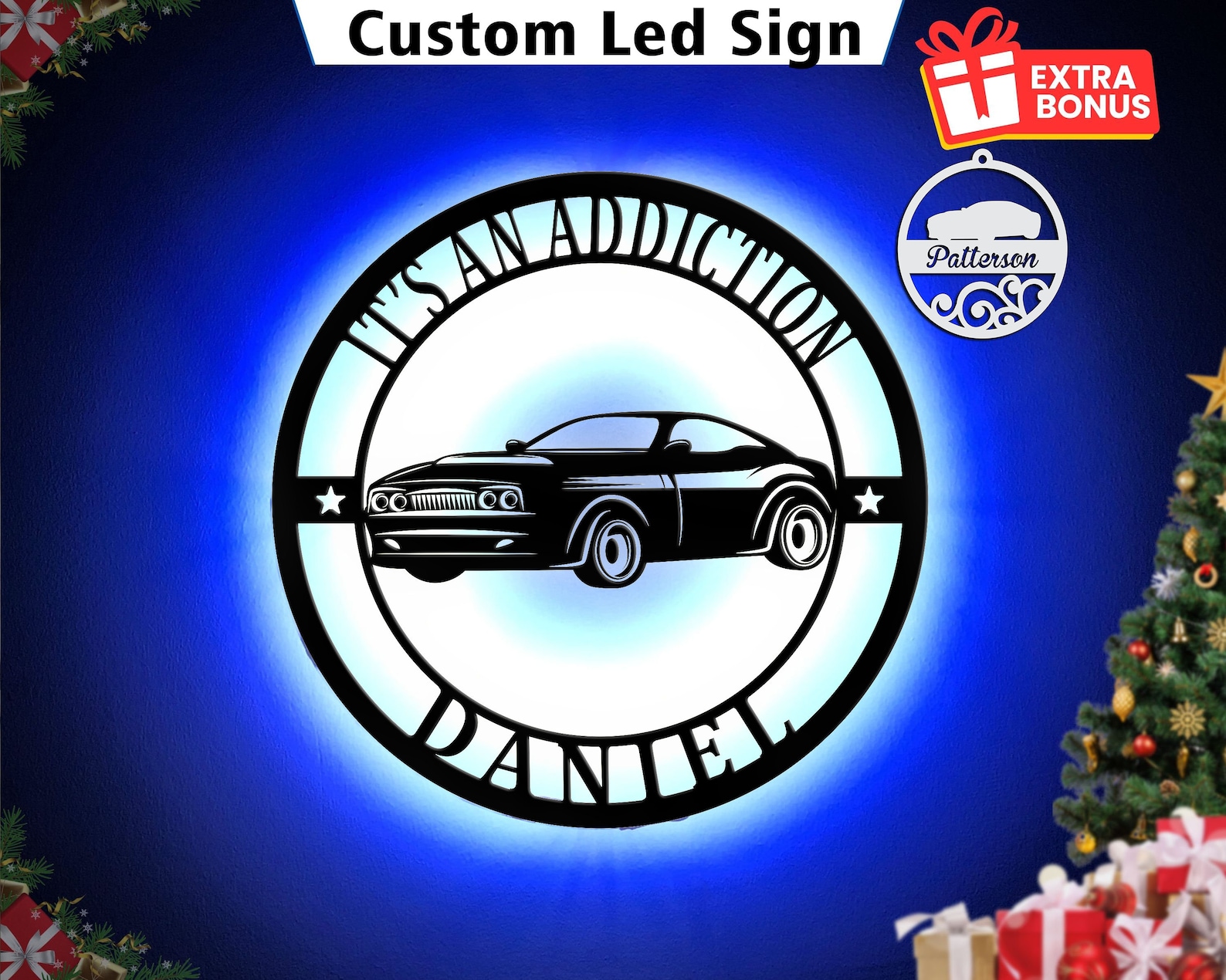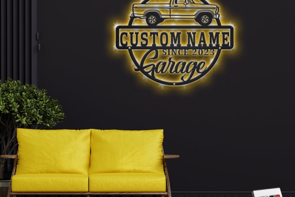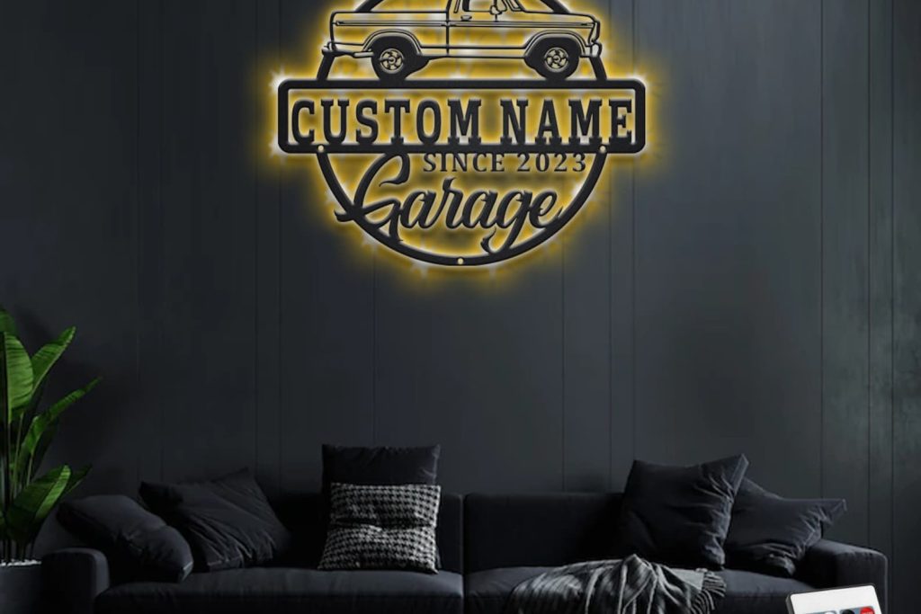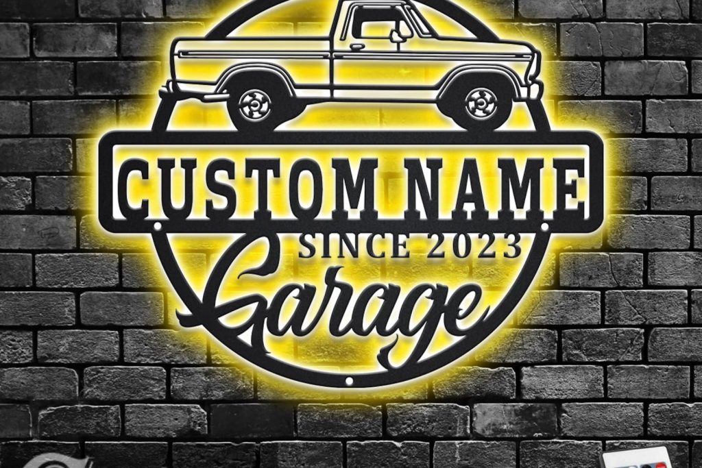 Car Garage Sign – LED Personal Metal Plaque, Gift