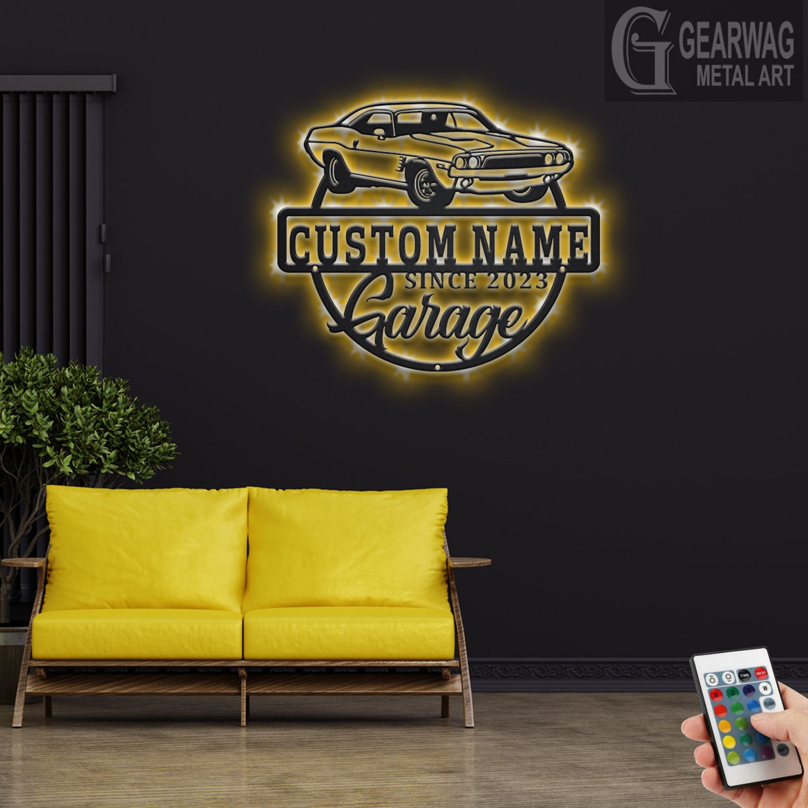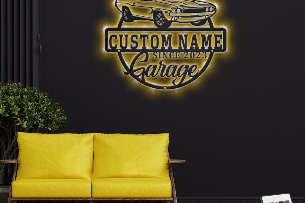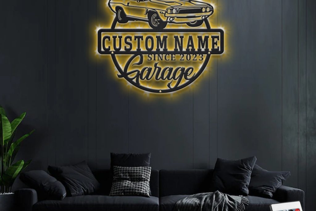 Car Garage Sign – LED Personal Metal Plaque, Man Cave