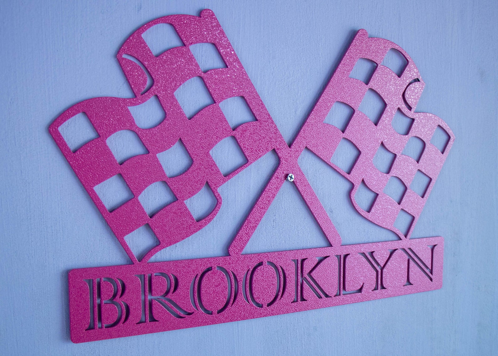 We do not include hanging equipment due to various hanging methods. This sign hangs easily with screws, hooks, wall magnets or any other methods you choose.