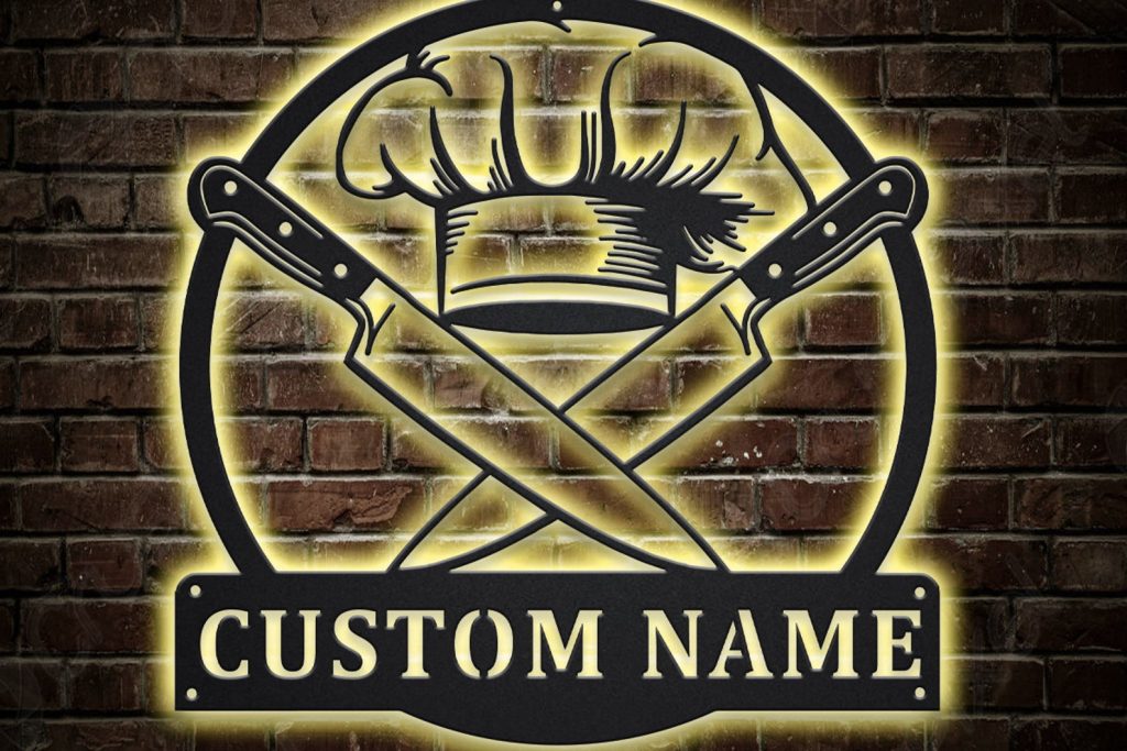Be the first to review “Chef Kitchen Metal Sign with LED, V7”