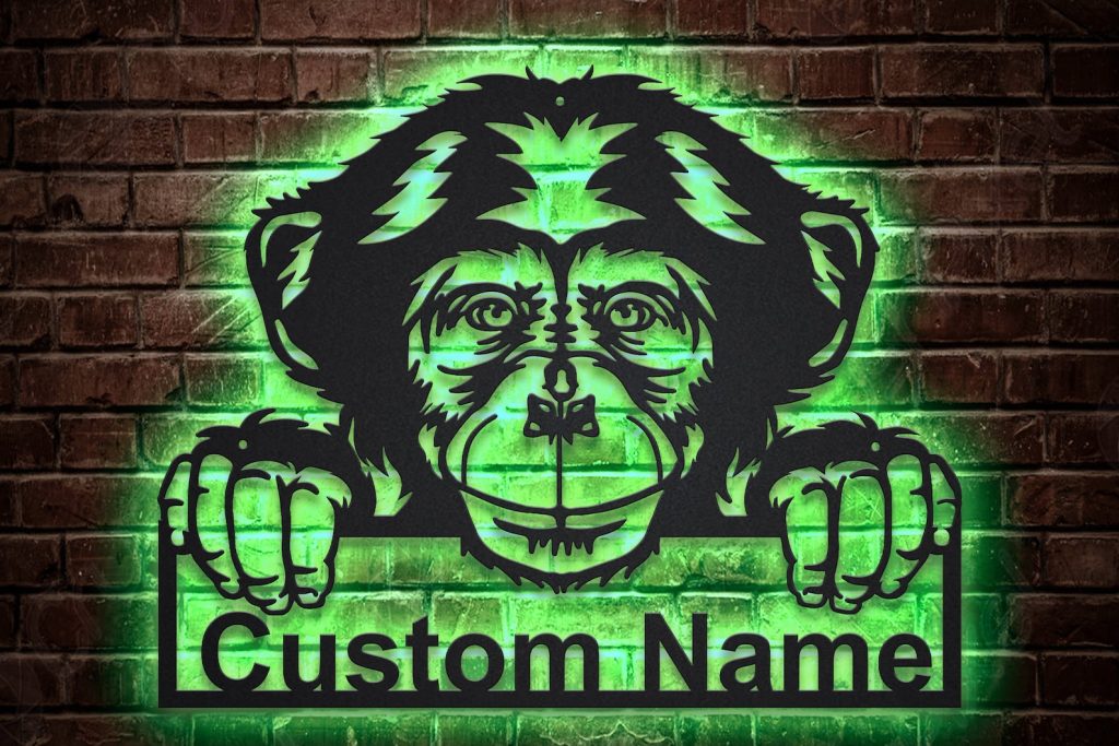 Be the first to review “Chimpanzee LED Sign – Personalized Metal Monkey Wall Neon Art”