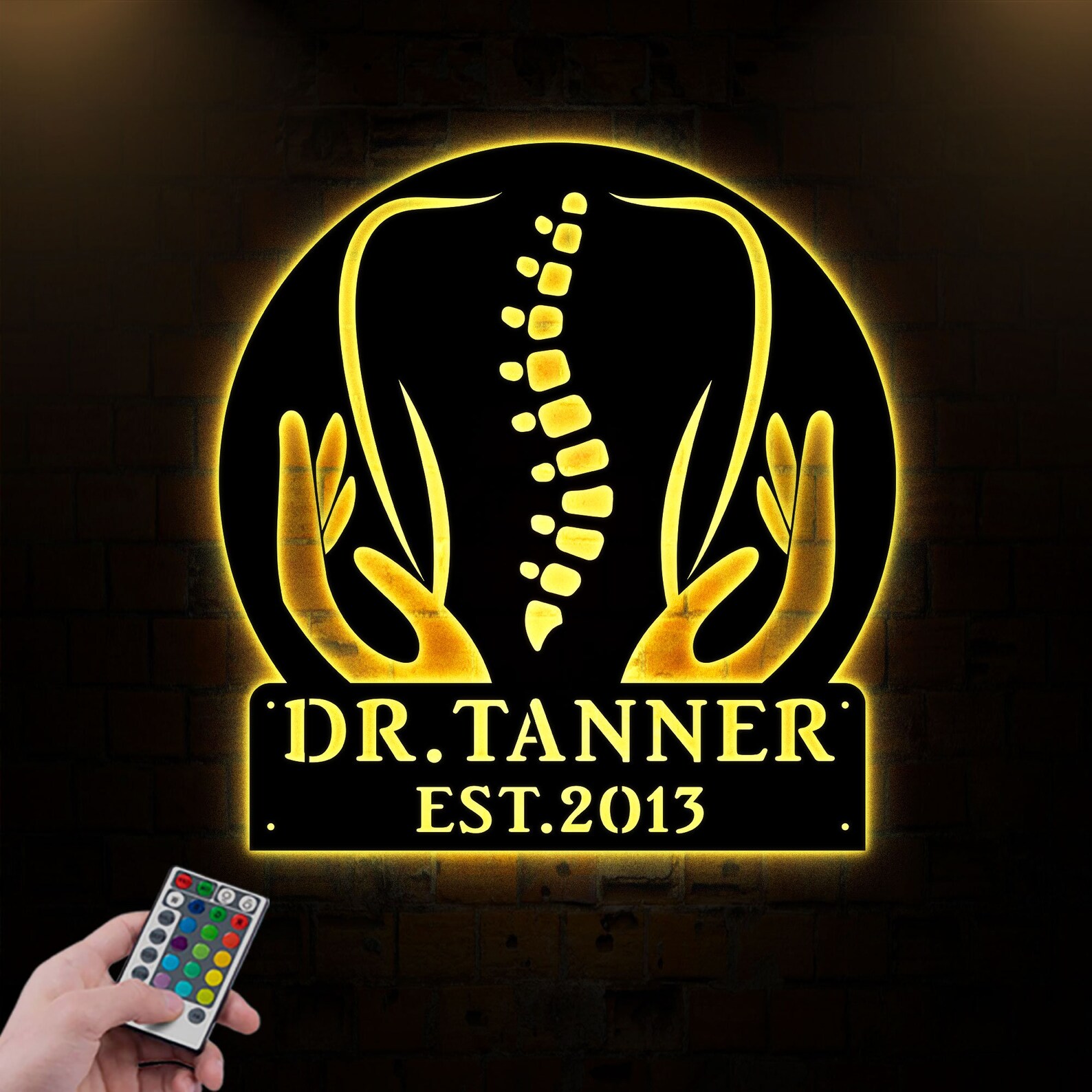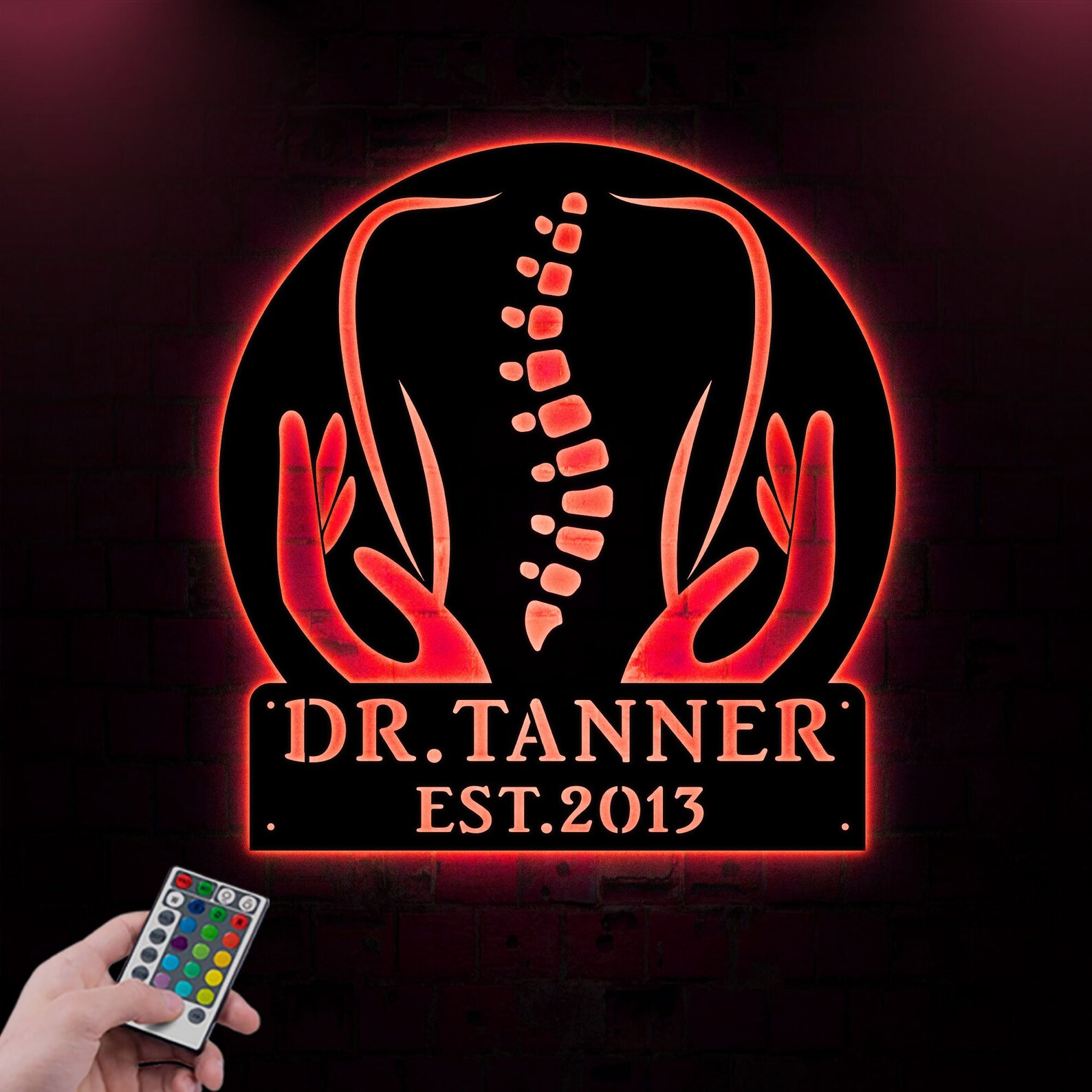 Personalized Chiropractor Metal Sign With Led Lights, Chiropractic Metal Office Sign, Gift For Physiotherapist, Kinesiologist, Physiotherapy