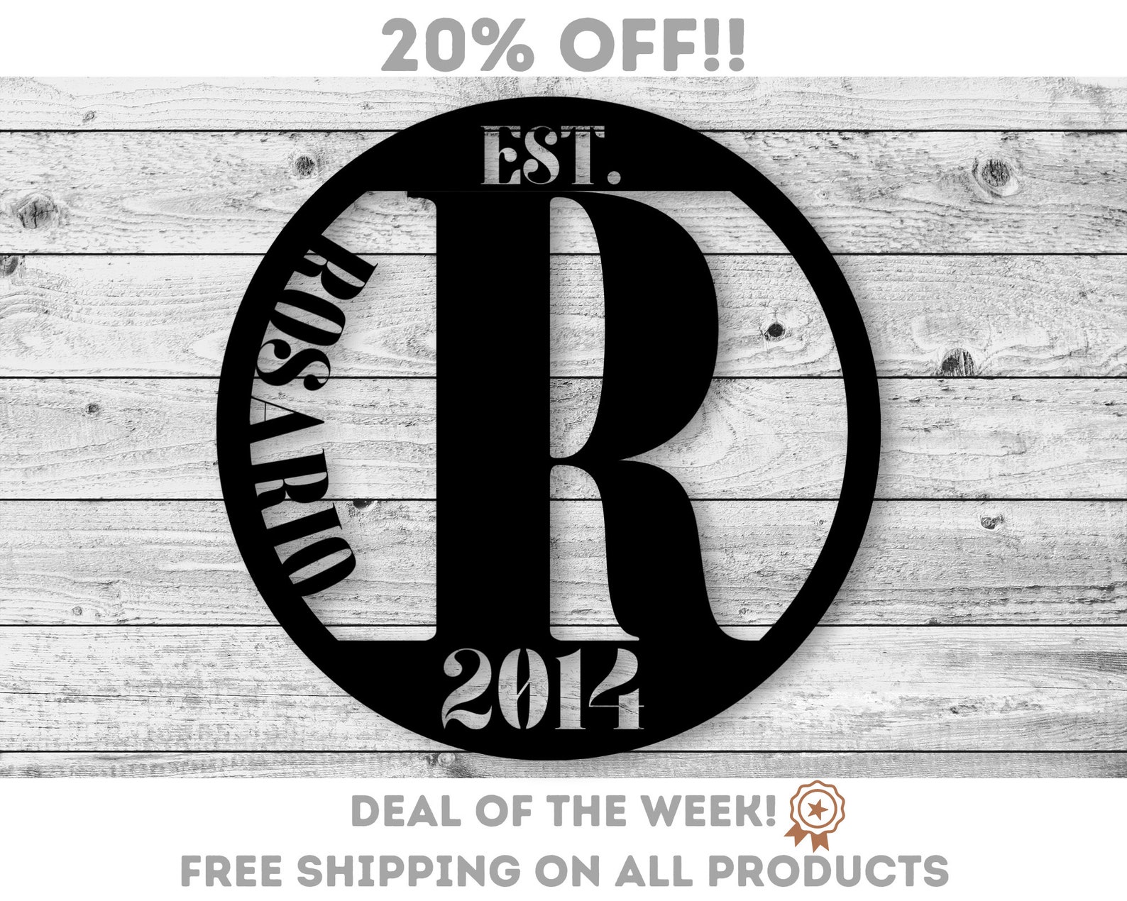 Circle Initial Sign – Custom Metal Est. Valentine Gift