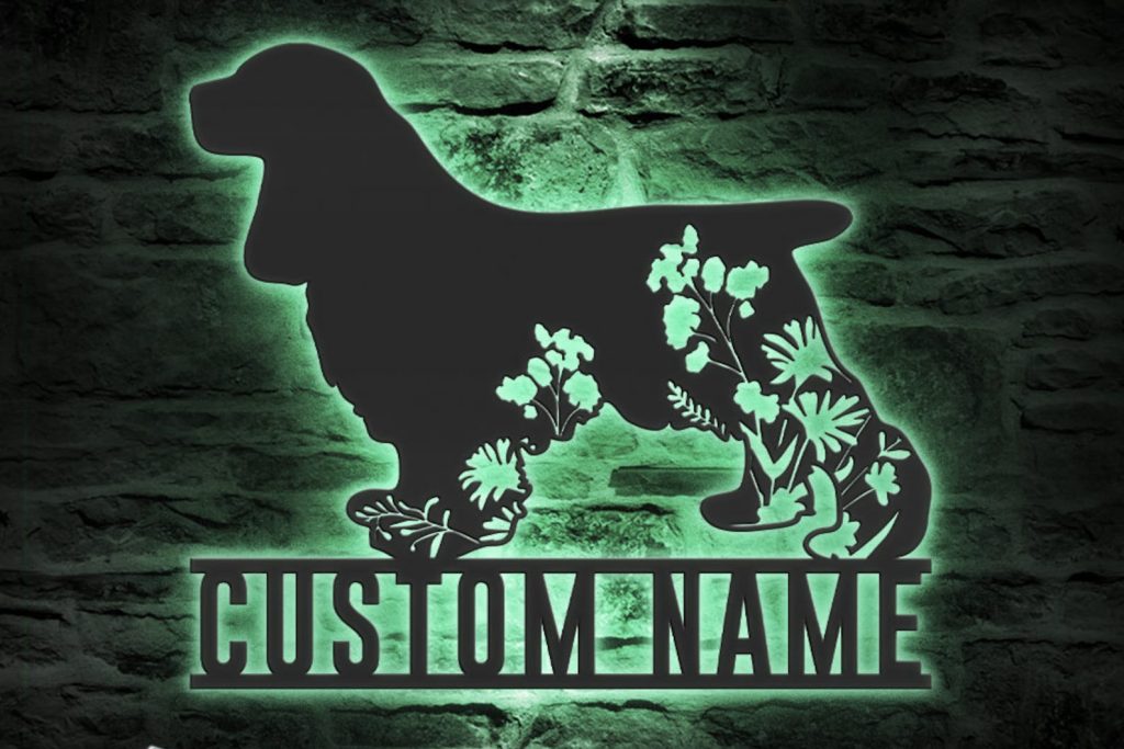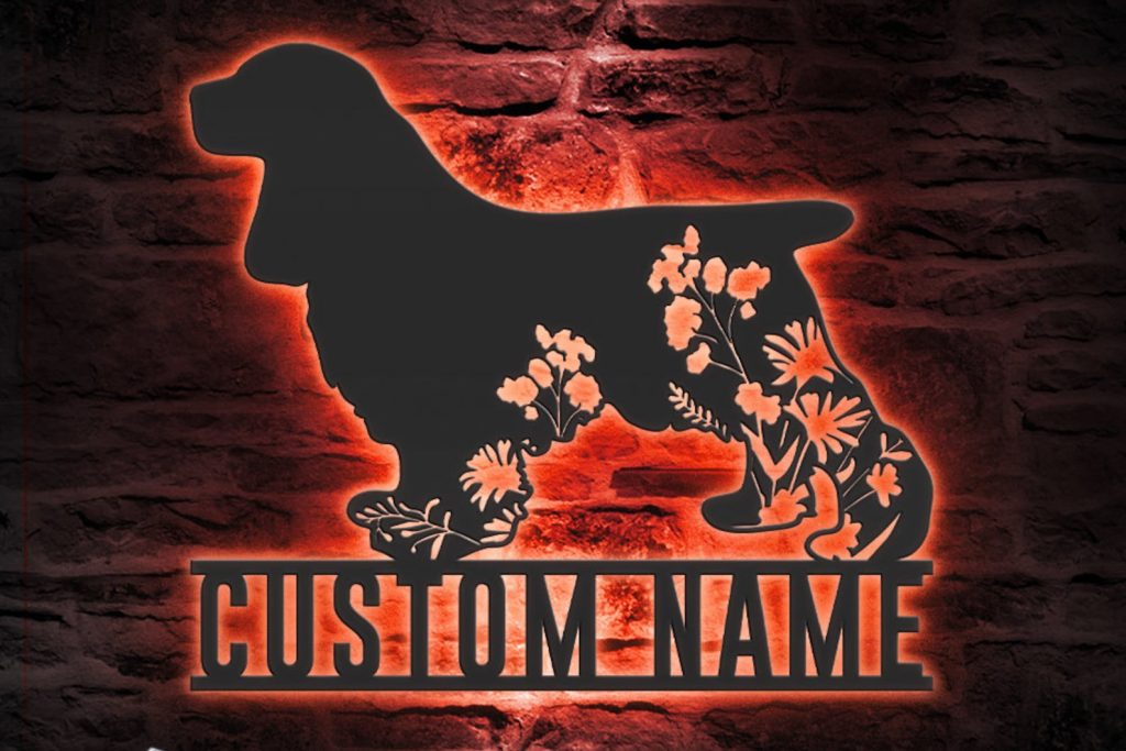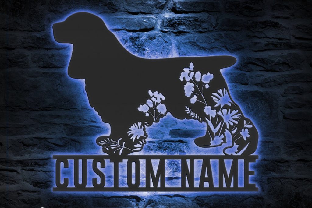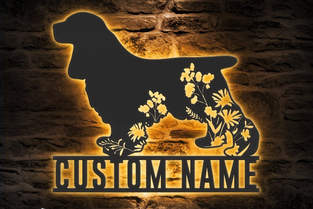 Be the first to review “Cocker Spaniel Floral LED Metal Wall Art – Custom Decor”
