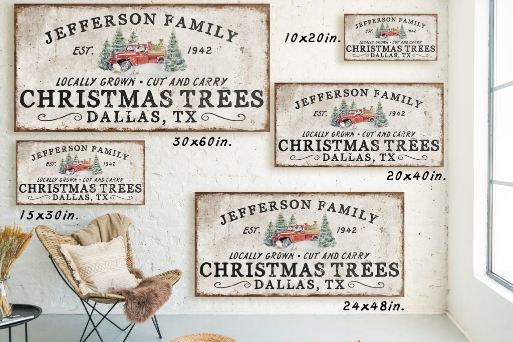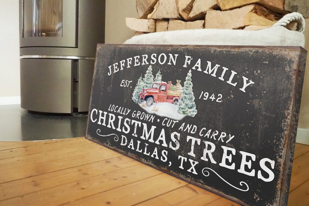 Personalized FamilytChristmas Tree FarmtSigns for FronttPorch Front DoortHoliday Decor CustomtFarmhouse ChristmastRed Truck Wall ArttRustic Christmastold rusty Decortvintage chippytold antiquetfamily name signtmetal canvas wood