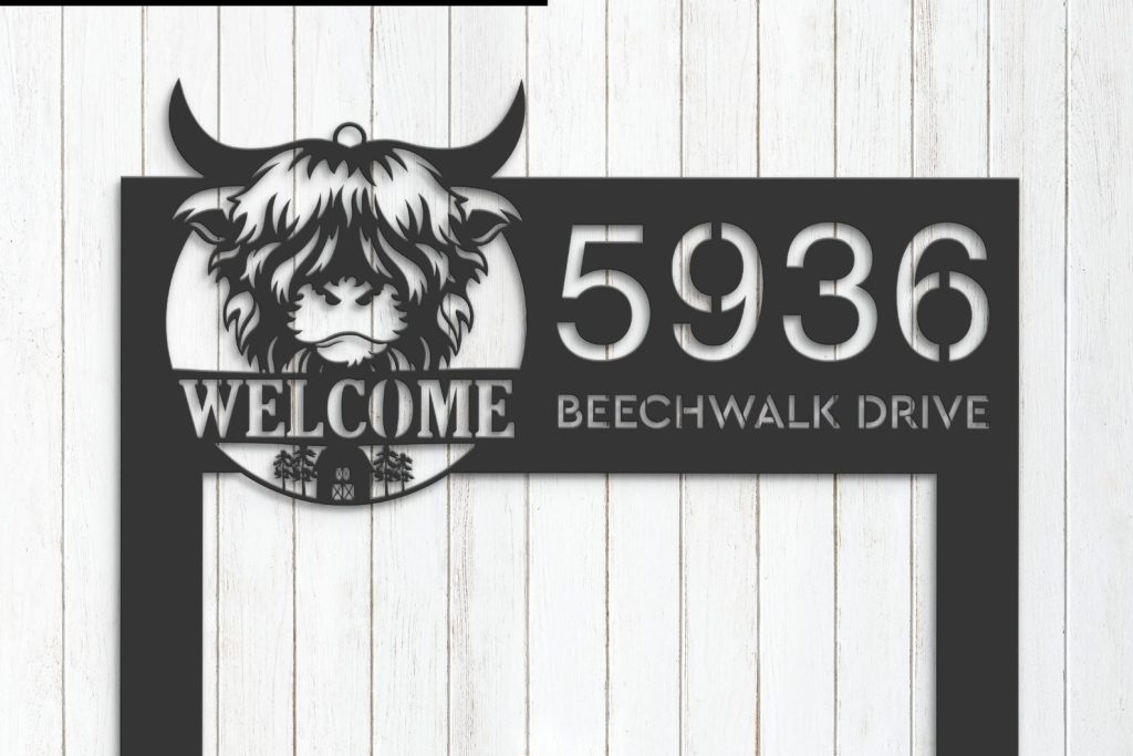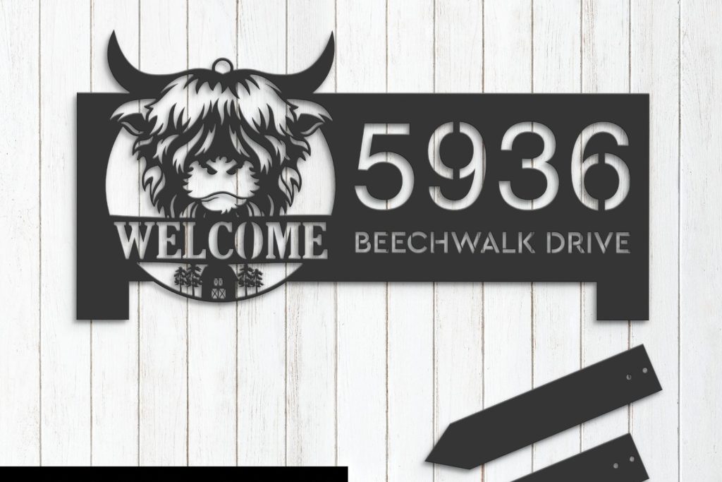 Cow Heifer Address Sign – Custom Metal Farm Decor
