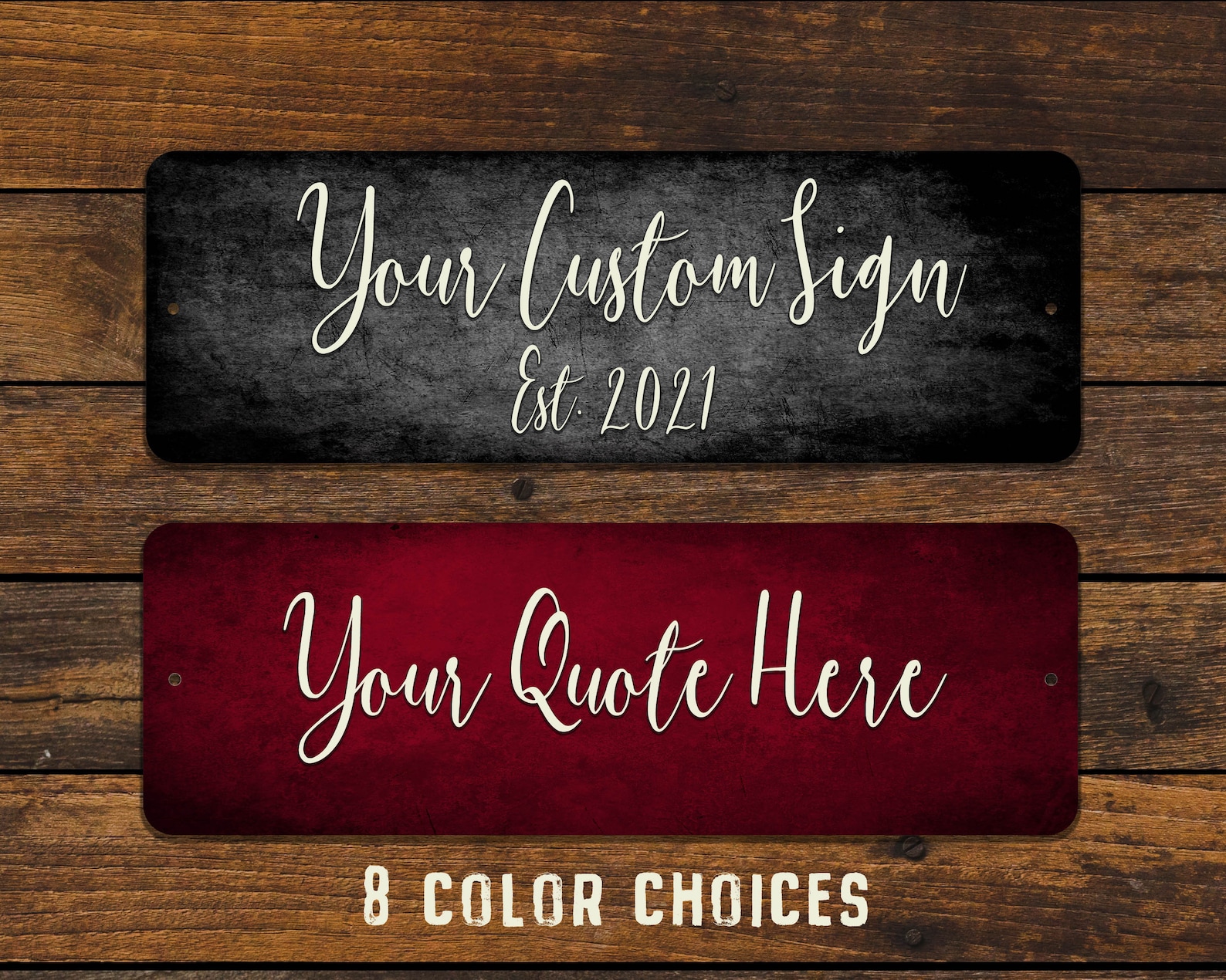 Let your imagination run wild with these super affordable vintage-style, weathered-look 6 X 18 signs. Light weight and durable, these nifty signs are made to order in the USA. These custom metal signs will look perfect in any kitchen, home, bar, pub, bath, office, garage, and business. Our signs are made from .032 UV treated aluminum, which means they9;re built to last. Sublimation creates a super tough image that is fused into the surface of the metal making it almost impossible to scratch. You can install these signs anywhere indoors or outdoors though we do recommend not placing them in direct sunlight to avoid fading over time.