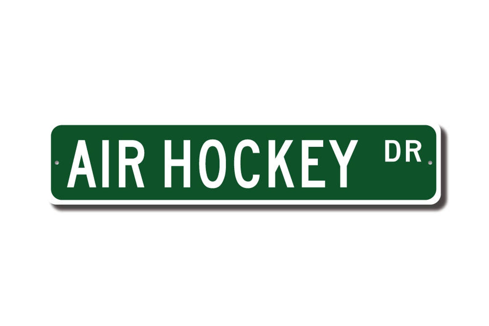 Air Hockey lovers check out this awesome street sign! This will make the perfect piece for any Air Hockey fan, or maybe you are an Air Hockey lover and looking for a cool decor piece ! Made of premium aluminum it will stand the test of time. This sign will look great in any room, home den, cave, or office ! Get this sign for your favorite Air Hockey aficionado !