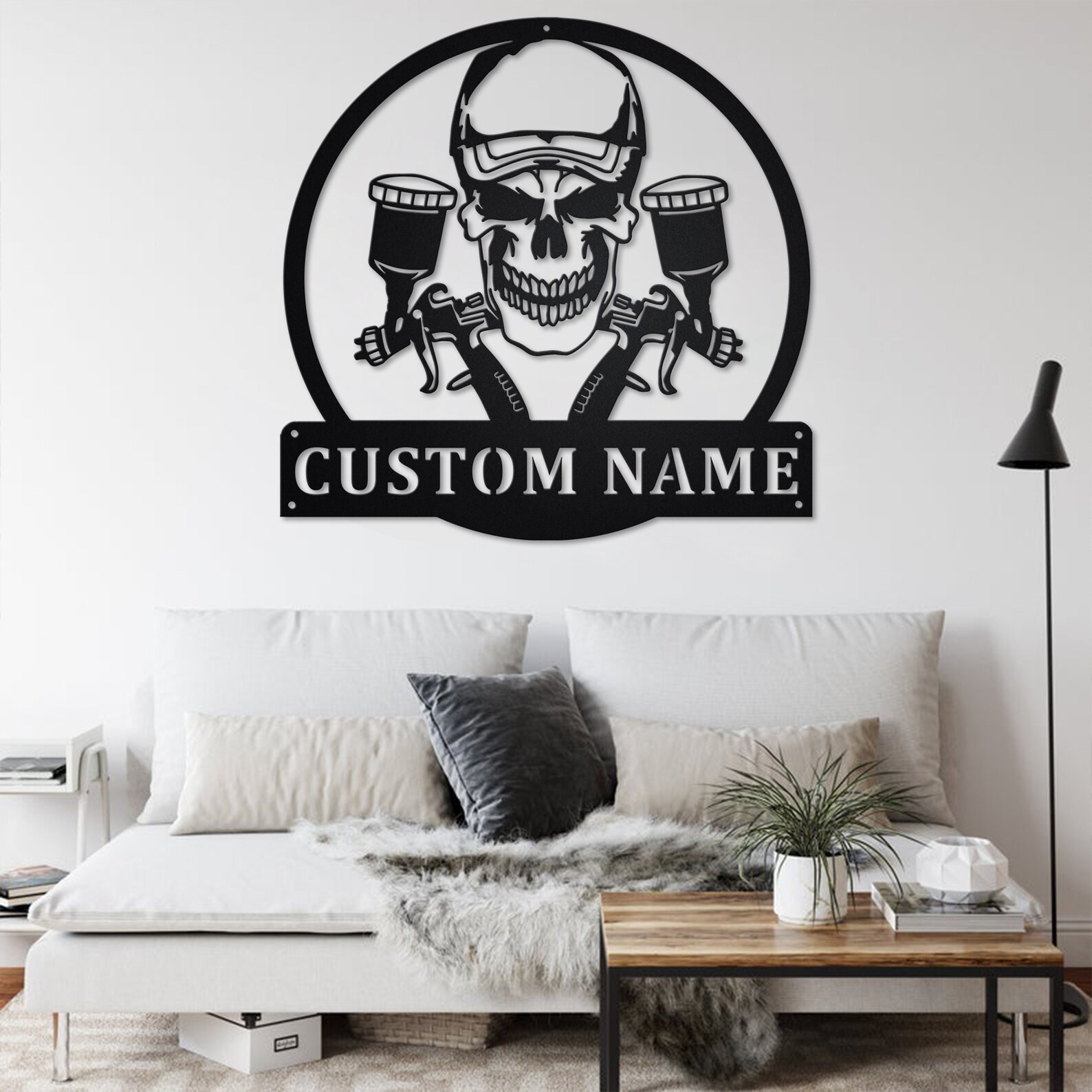 Custom Airbrush Painter Skull Metal Wall Art