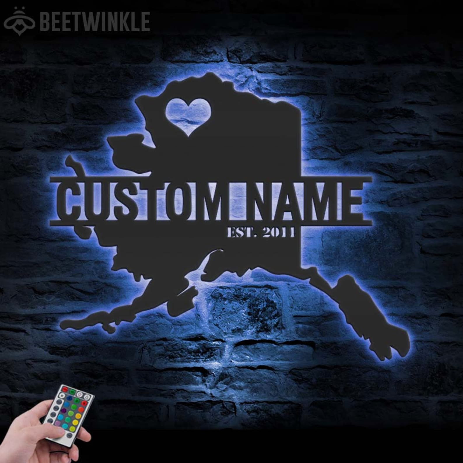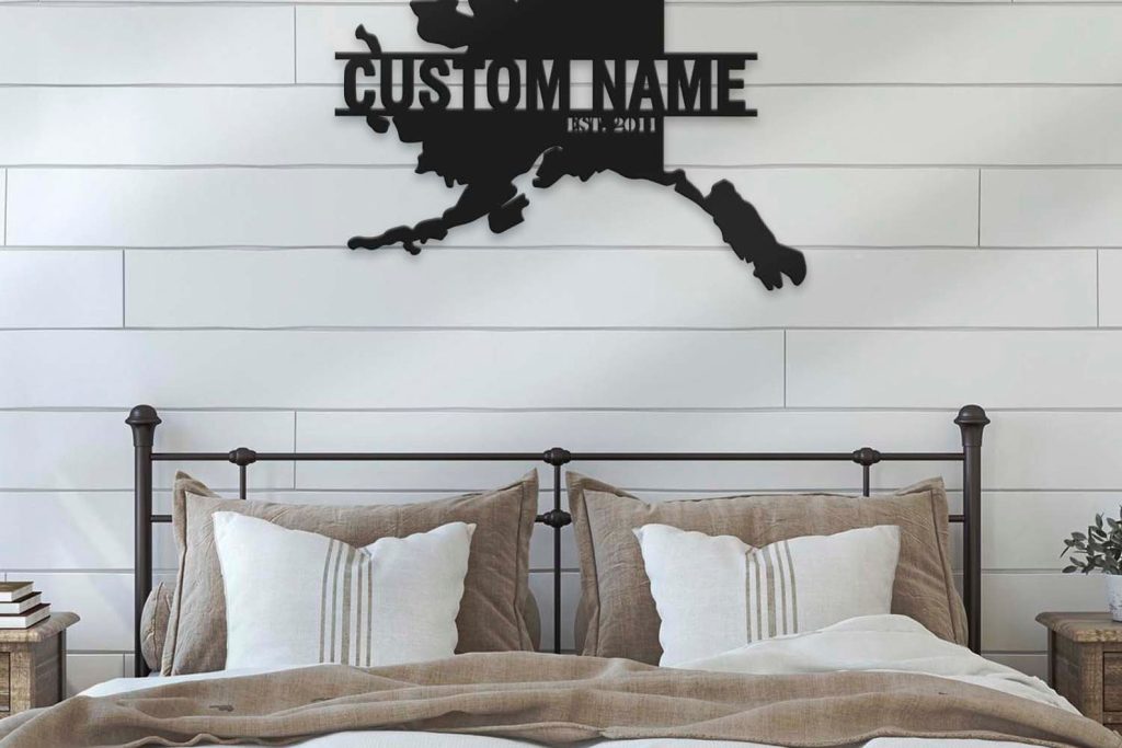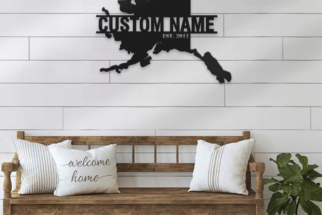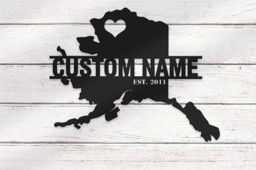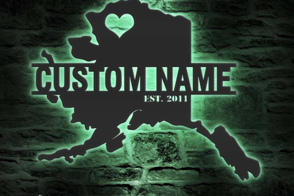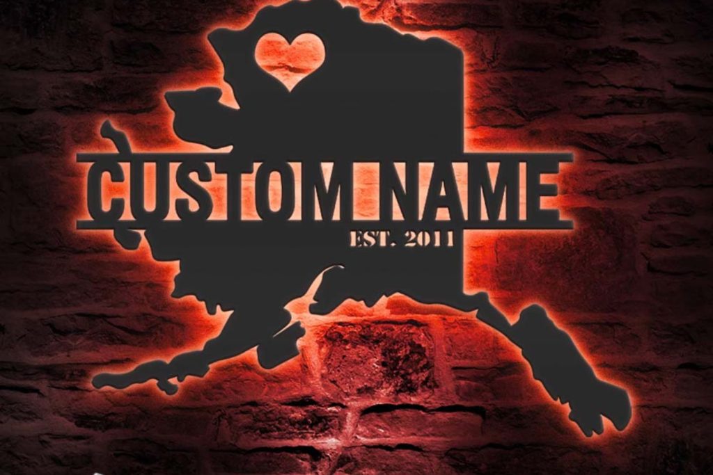 Custom Alaska Map Metal Wall Art – LED Light, Personalized State Name Sign