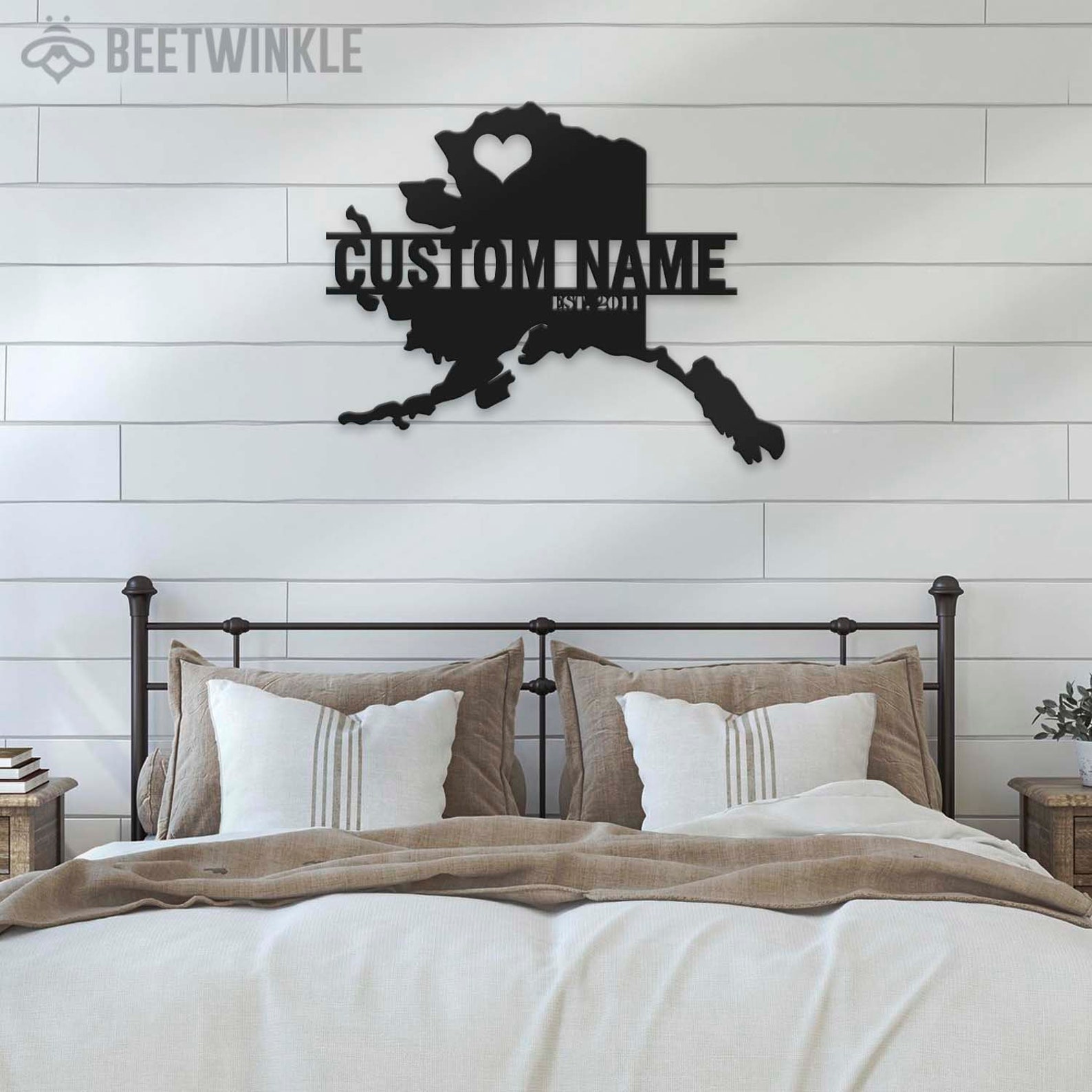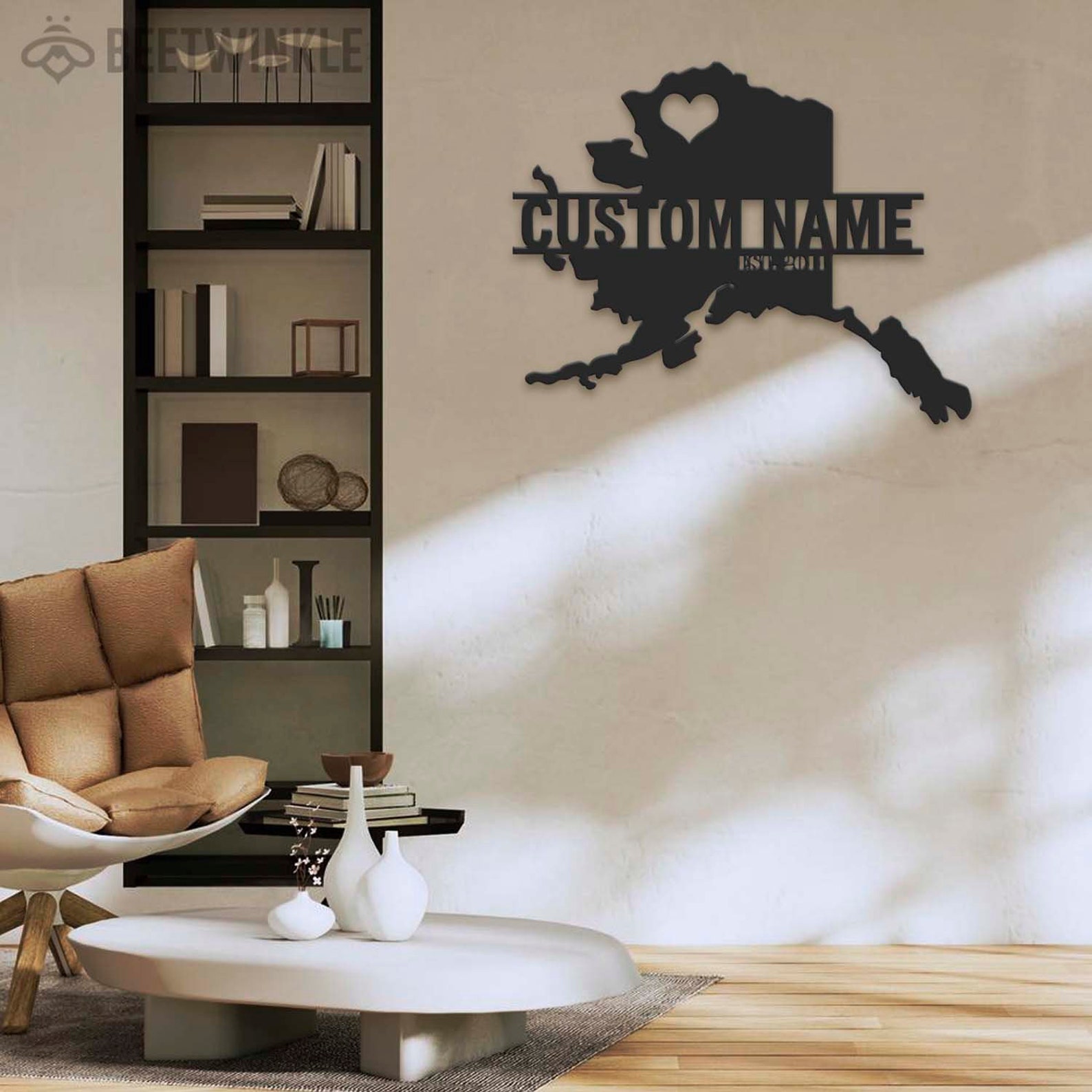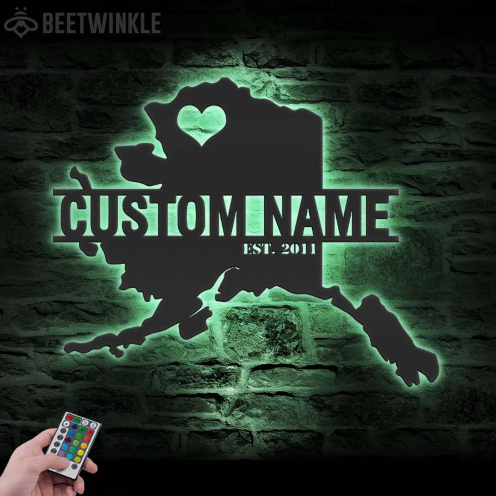 Custom Alaska Map Metal Wall Art – LED Light, Personalized State Name Sign