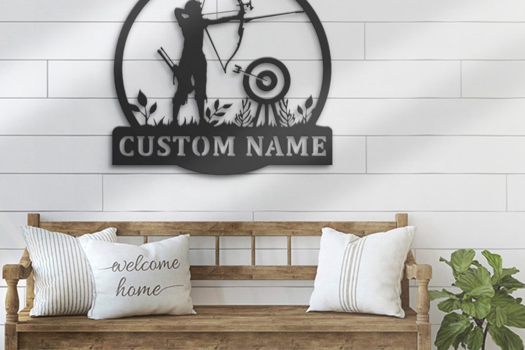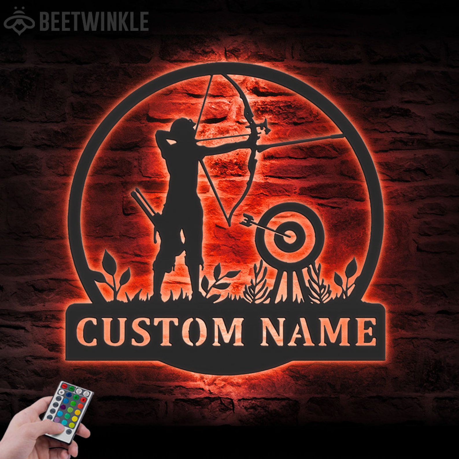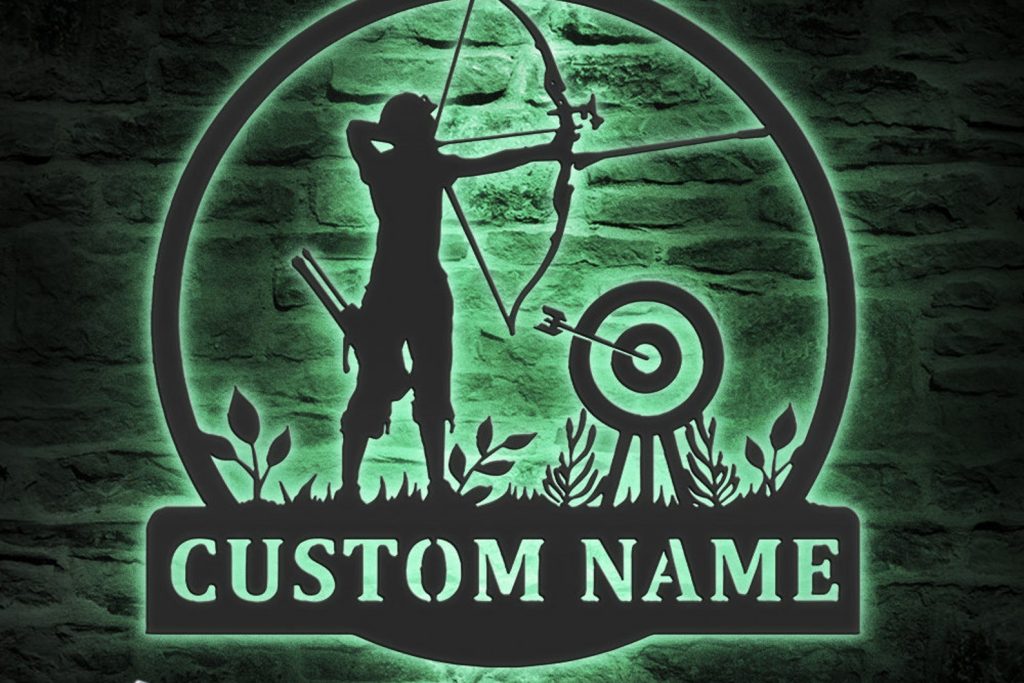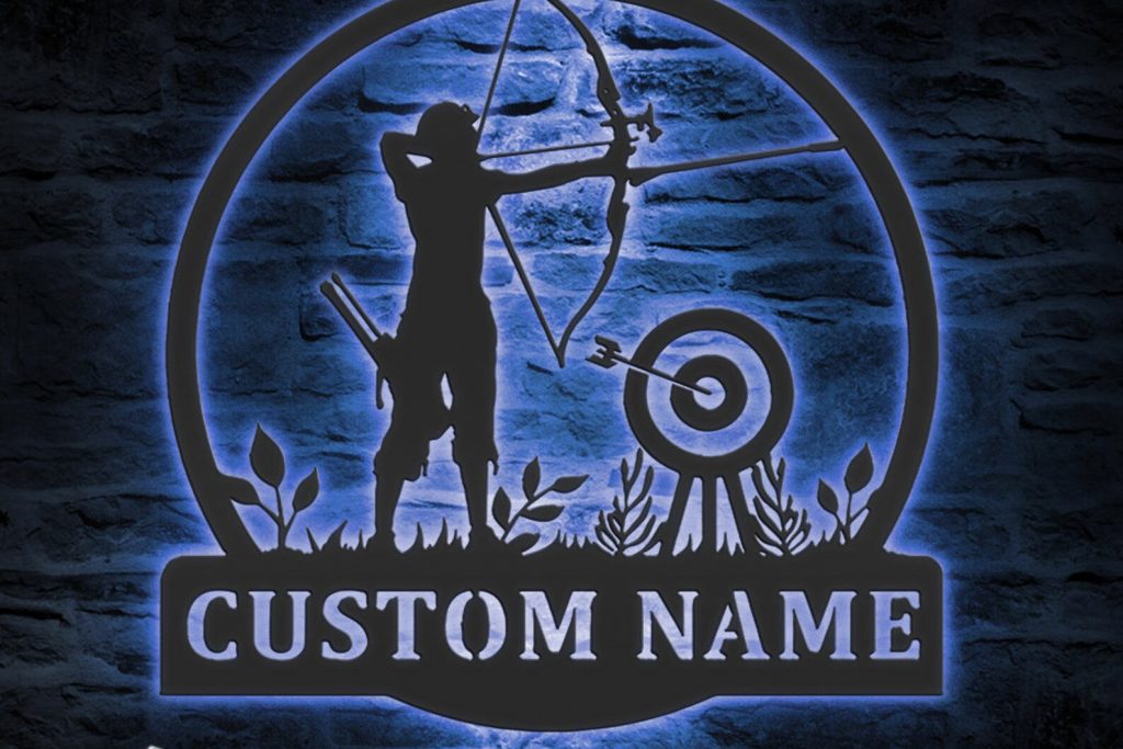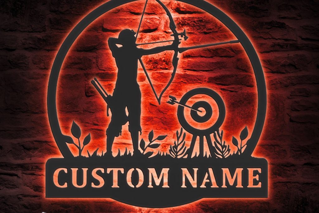Custom Archery Metal Sign, LED Light, Archer Name Sign