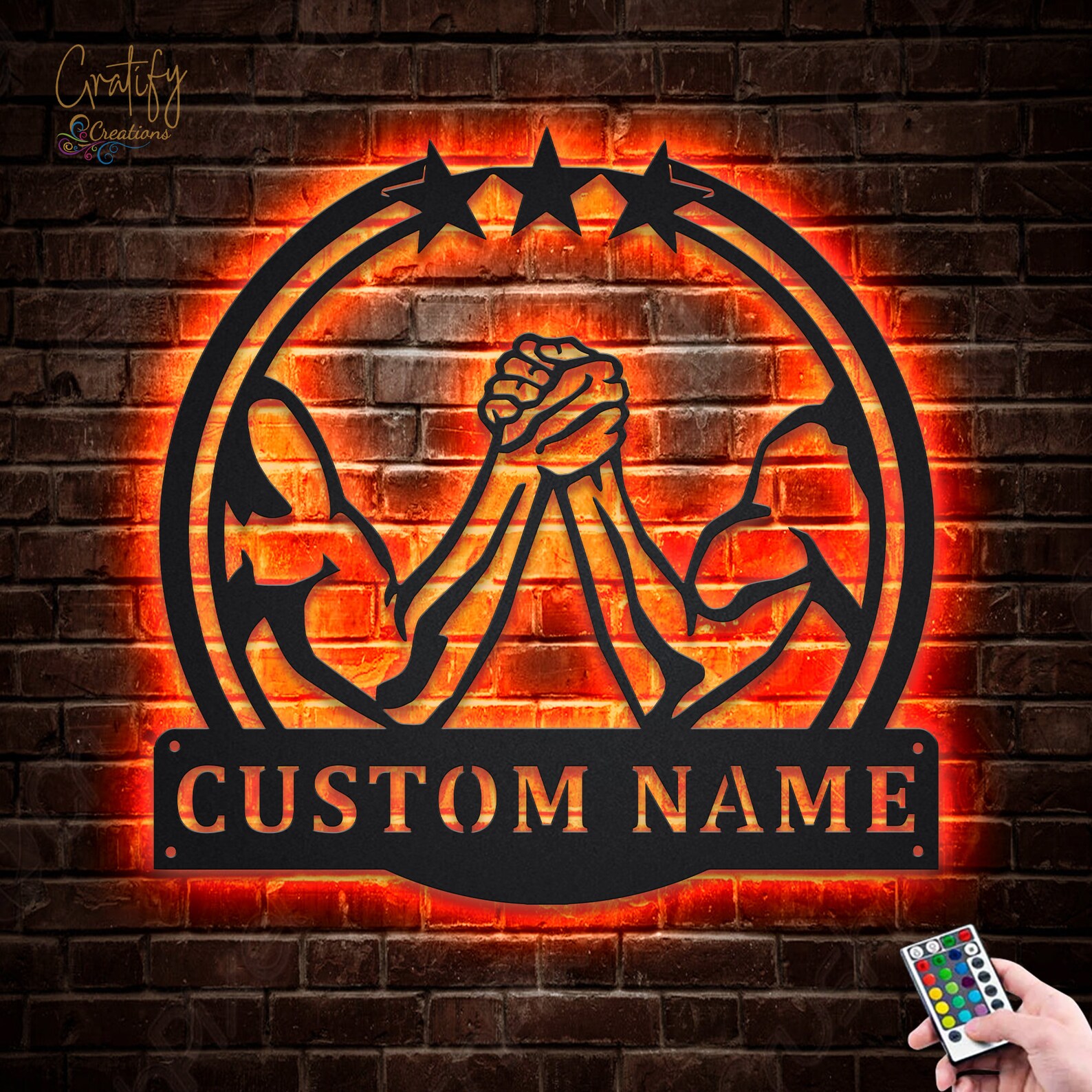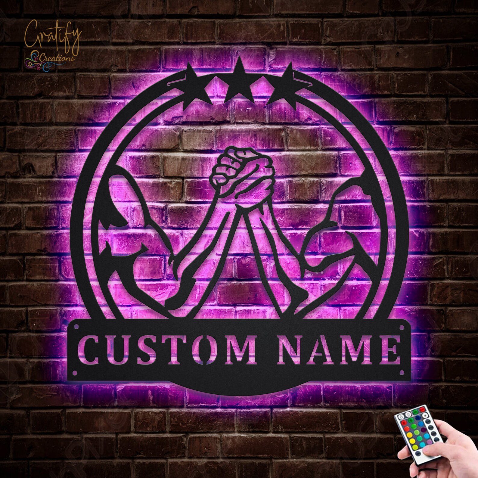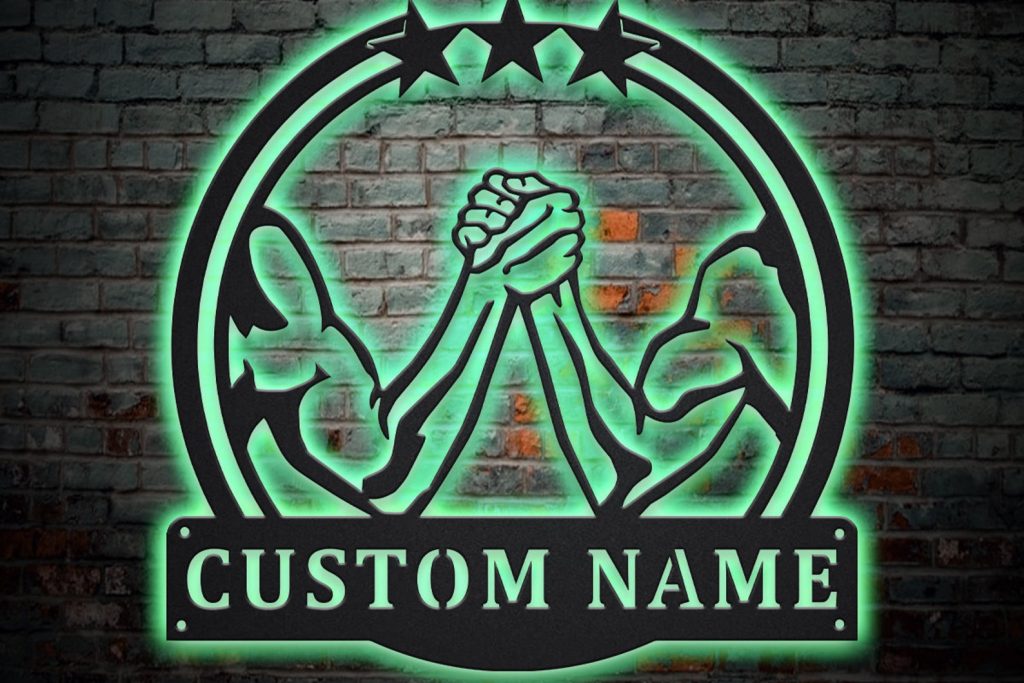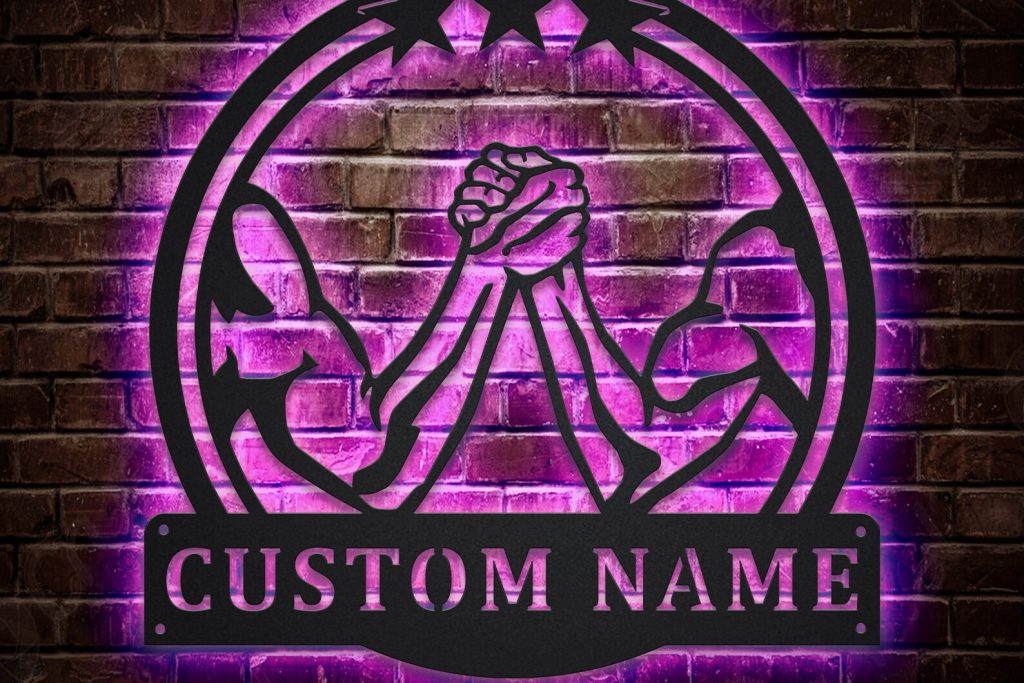 Custom Arm Wrestling Metal Sign with LED – Neon Wall Decor