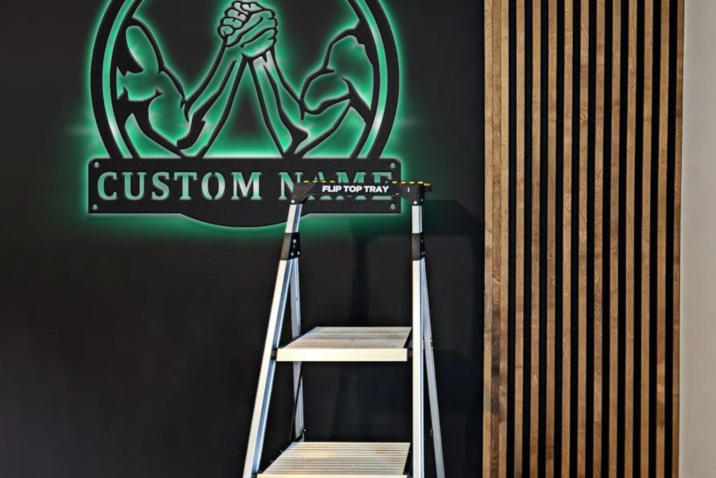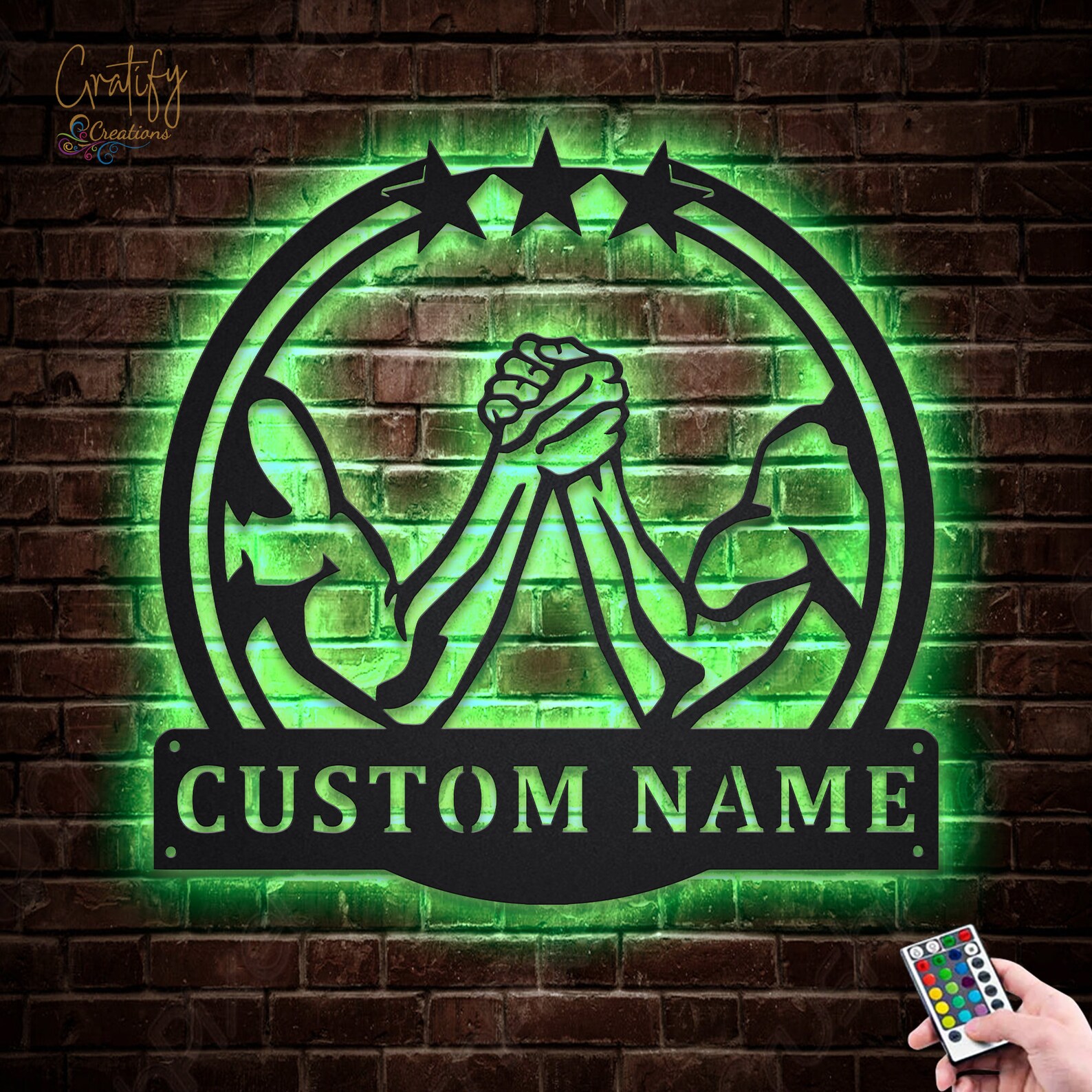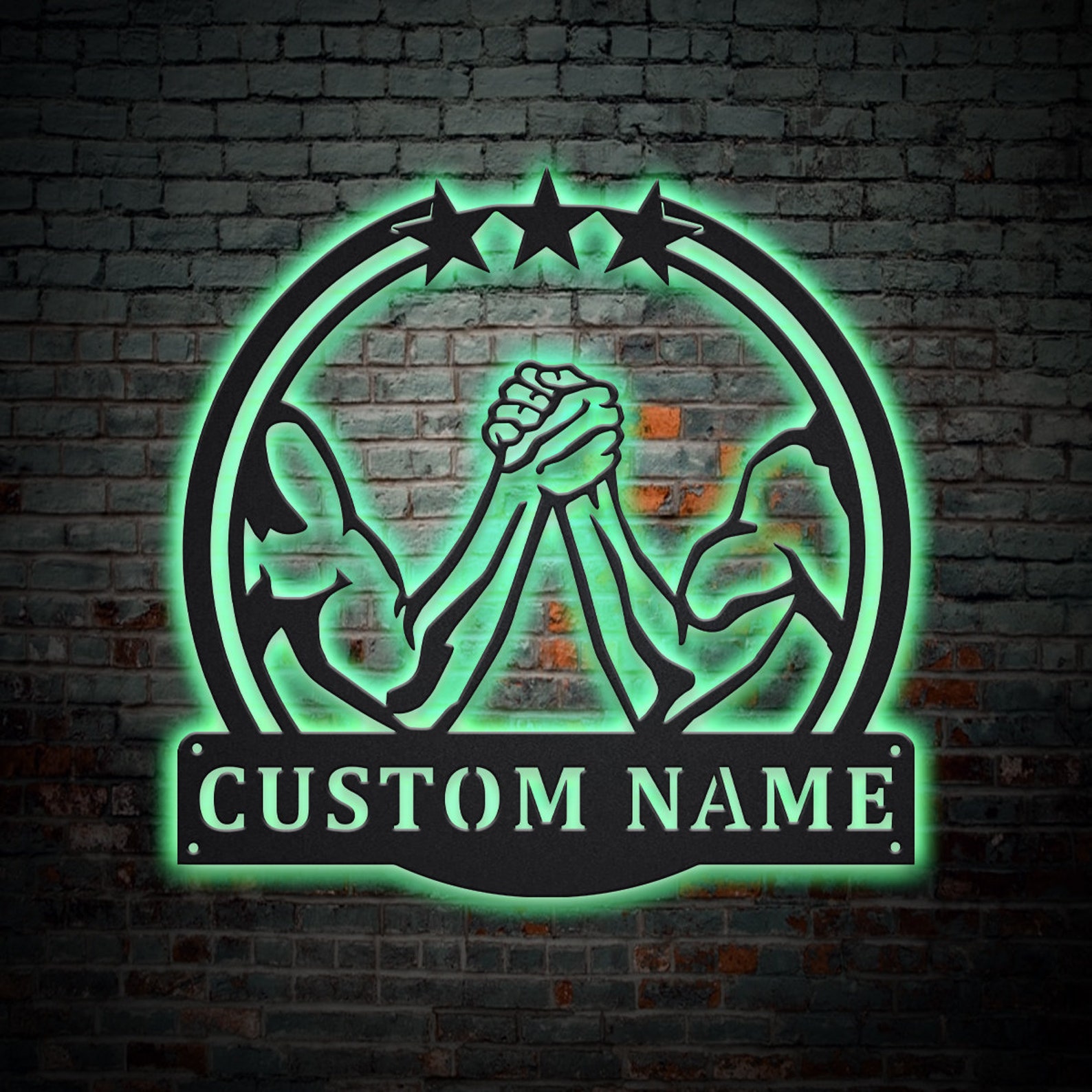 Custom Arm Wrestling Metal Sign with LED – Neon Wall Decor