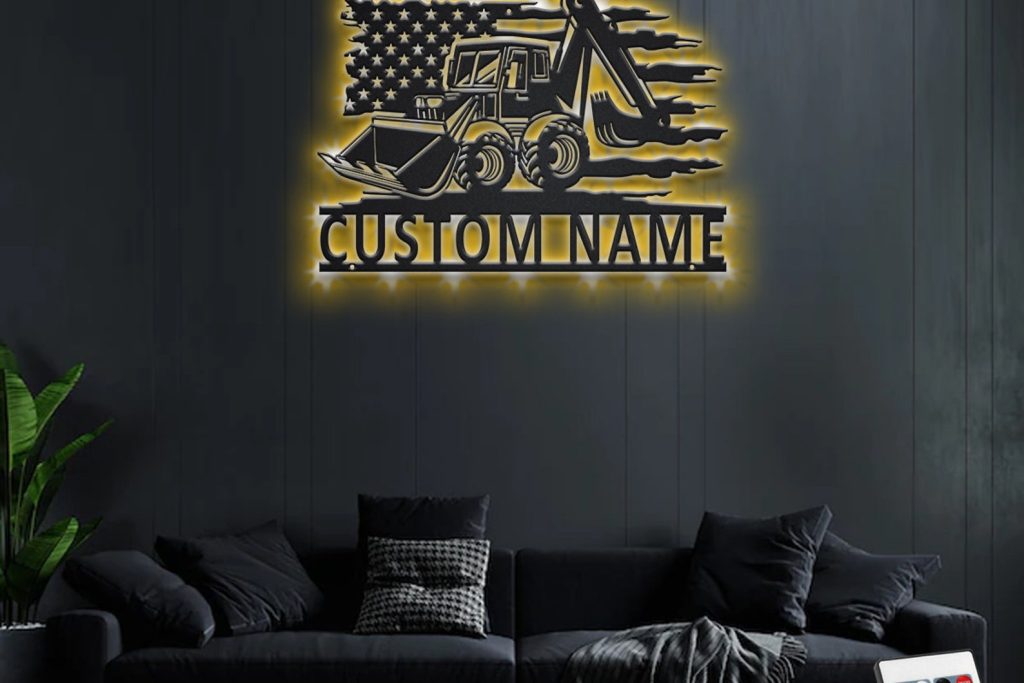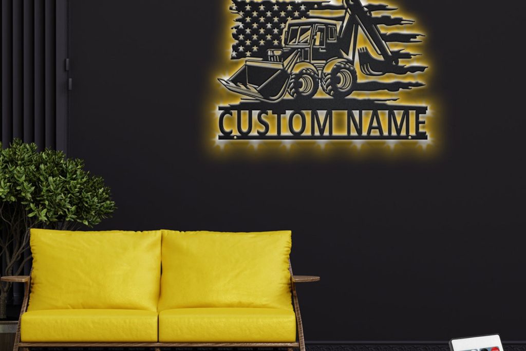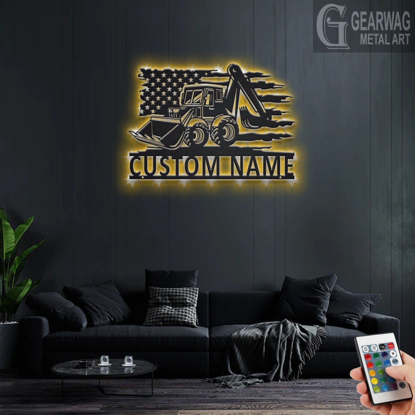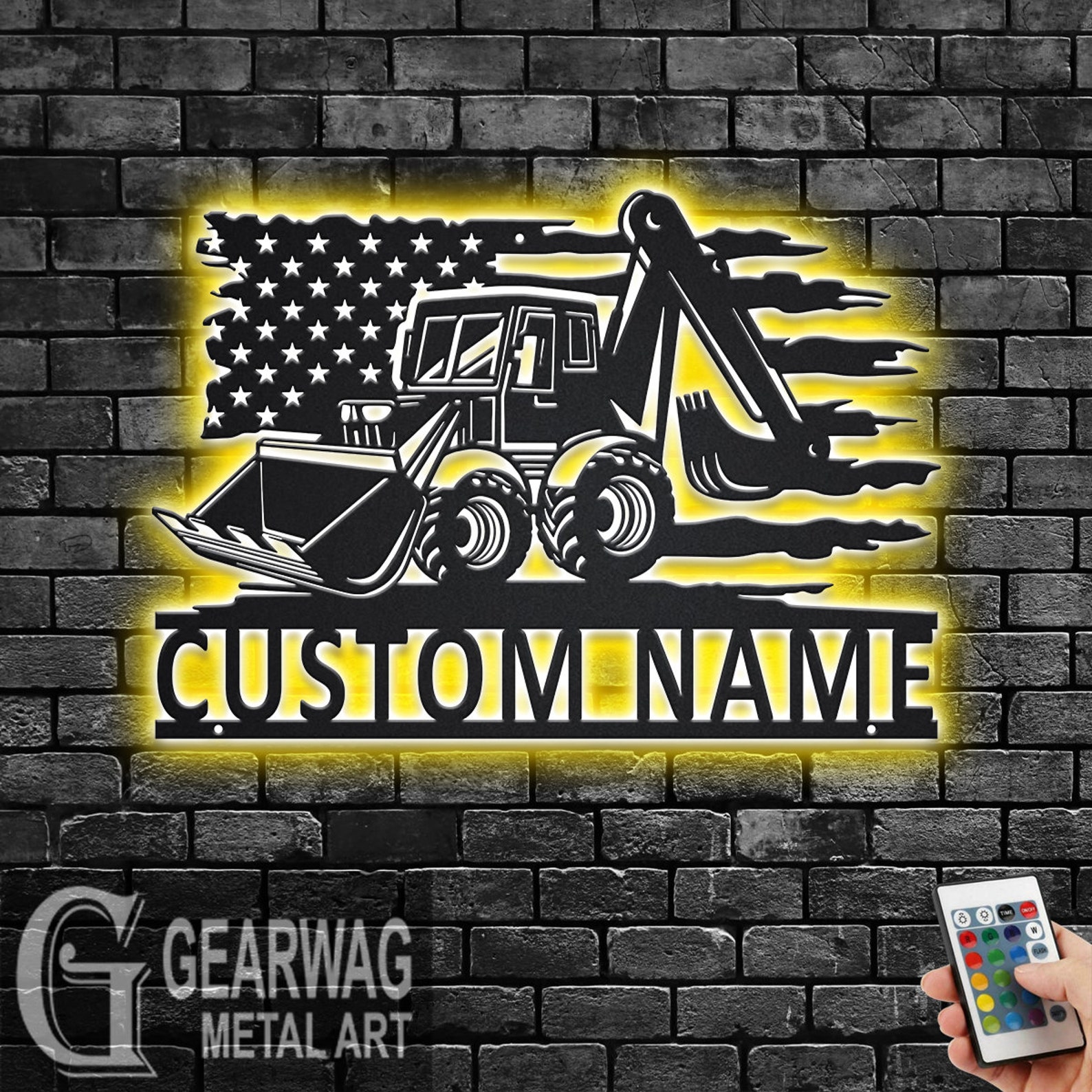 Custom Backhoe Truck Metal Sign, LED Light, Man Cave Decor