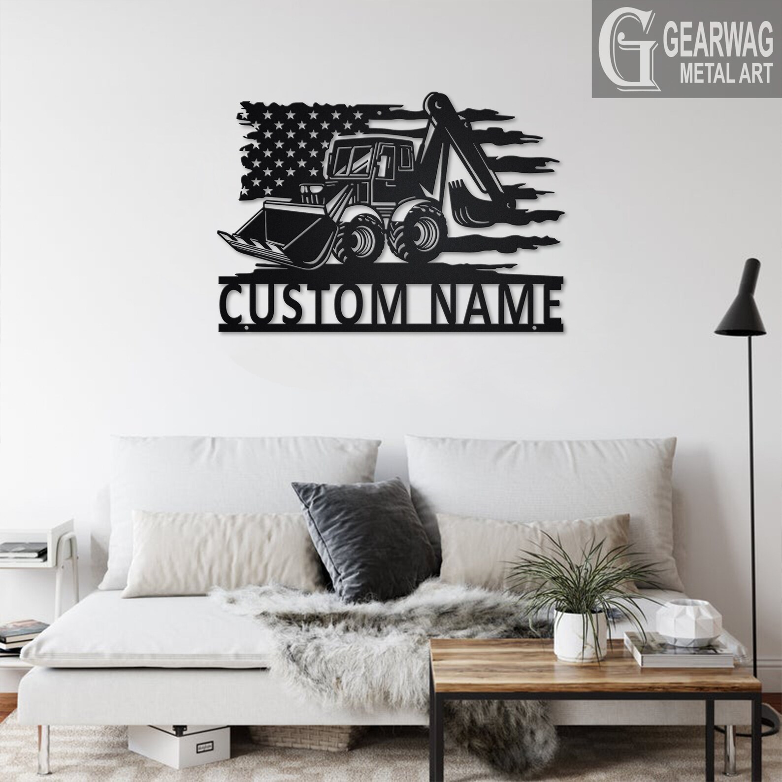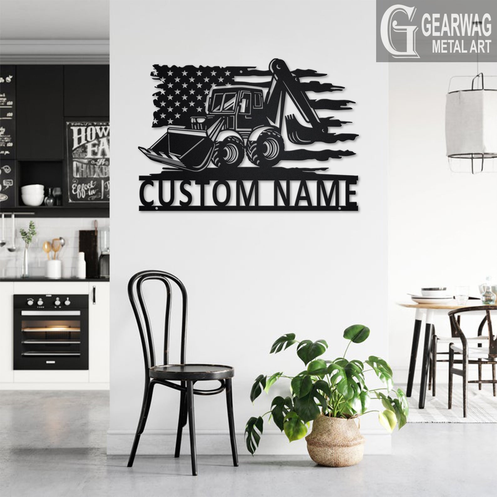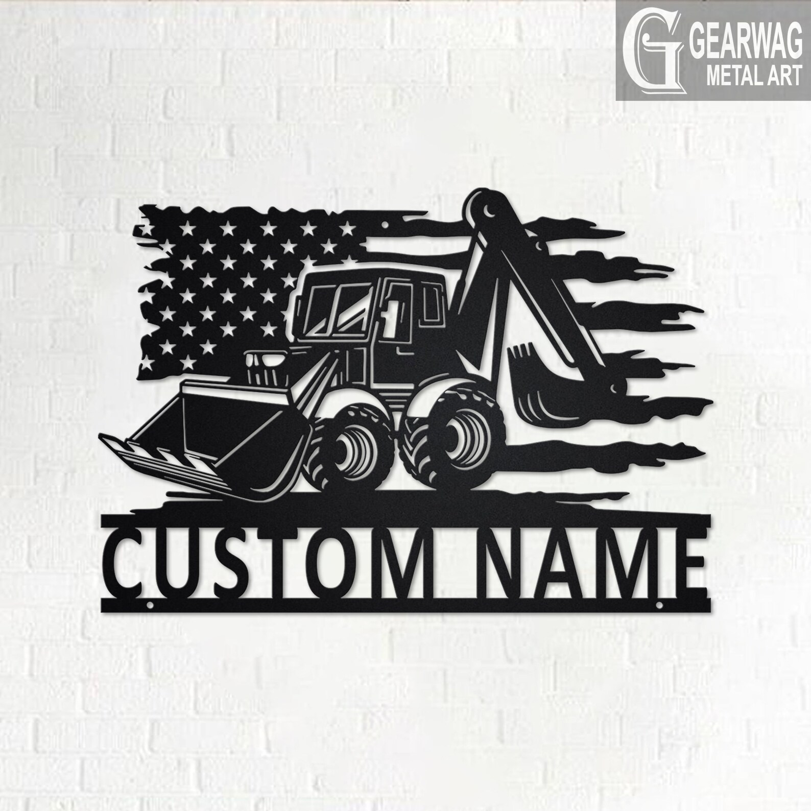 Custom Backhoe Truck Metal Sign, LED Light, Man Cave Decor