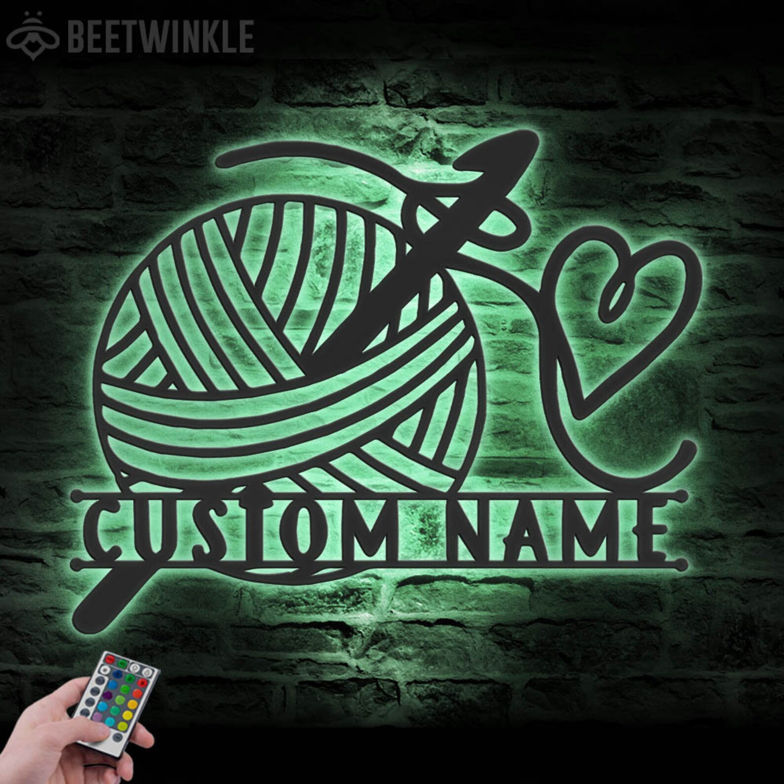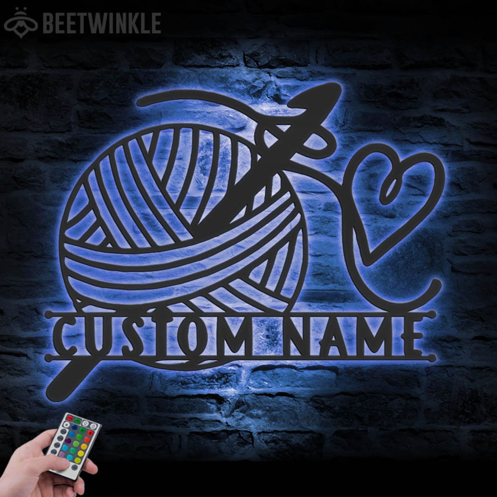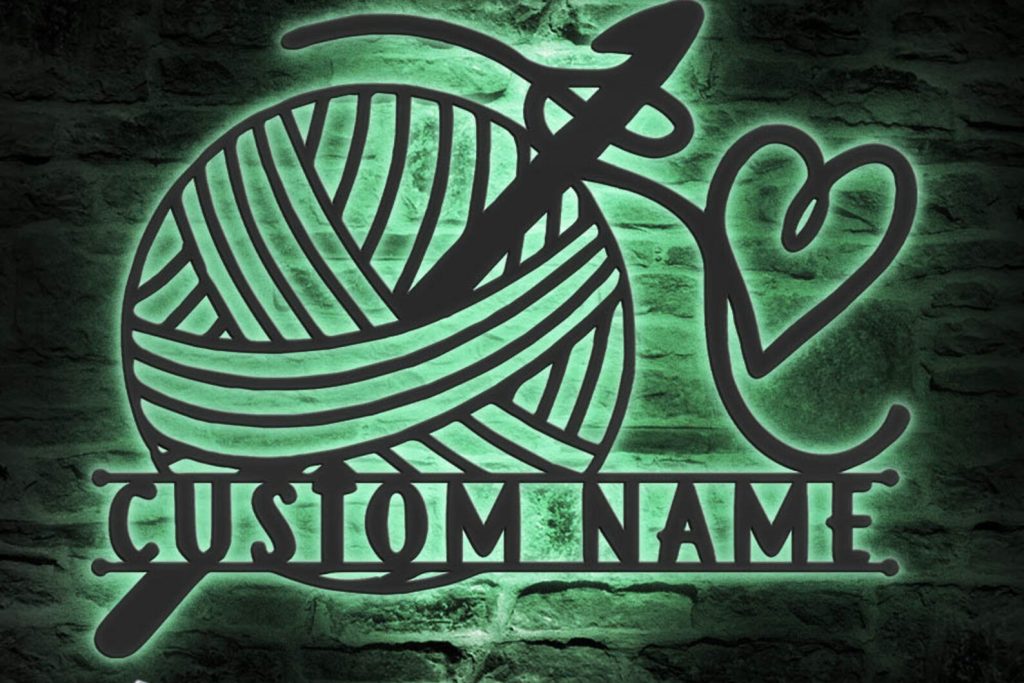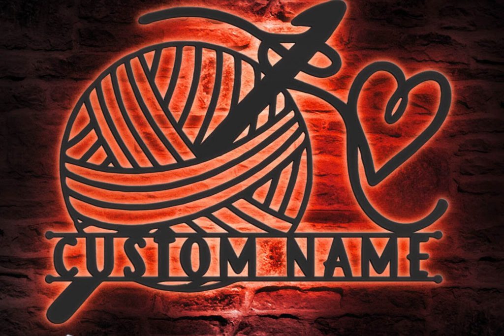 Be the first to review “Custom Ball Yarn Heart Metal Wall Art – LED Light”
