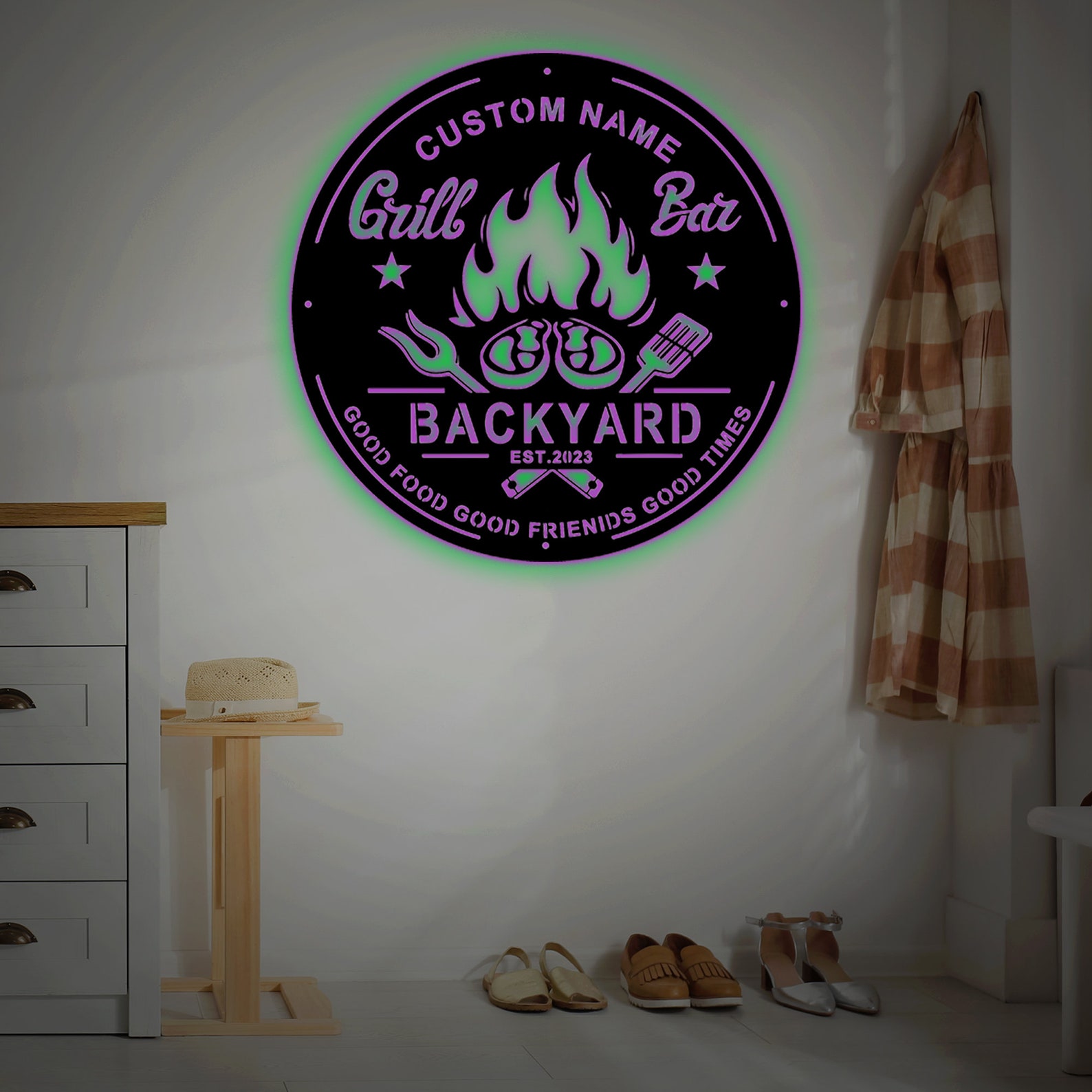 Custom Bar And Grill Metal Wall Led Signs-BBQ Metal Wall Art-Bar Sign-Personalized Sign-Bar Decor-Man Cave Sign-Family Gift Signs-Home Decor