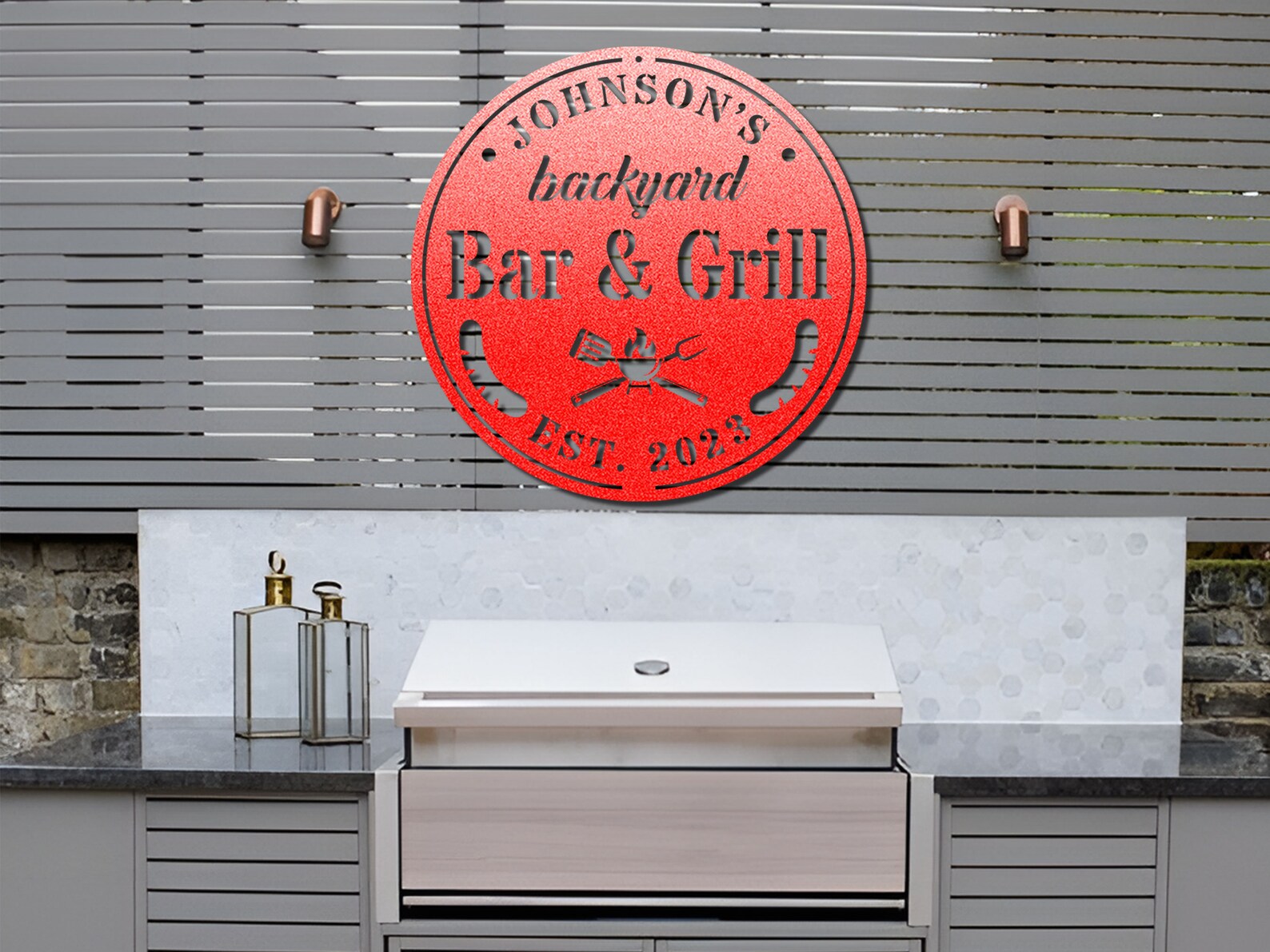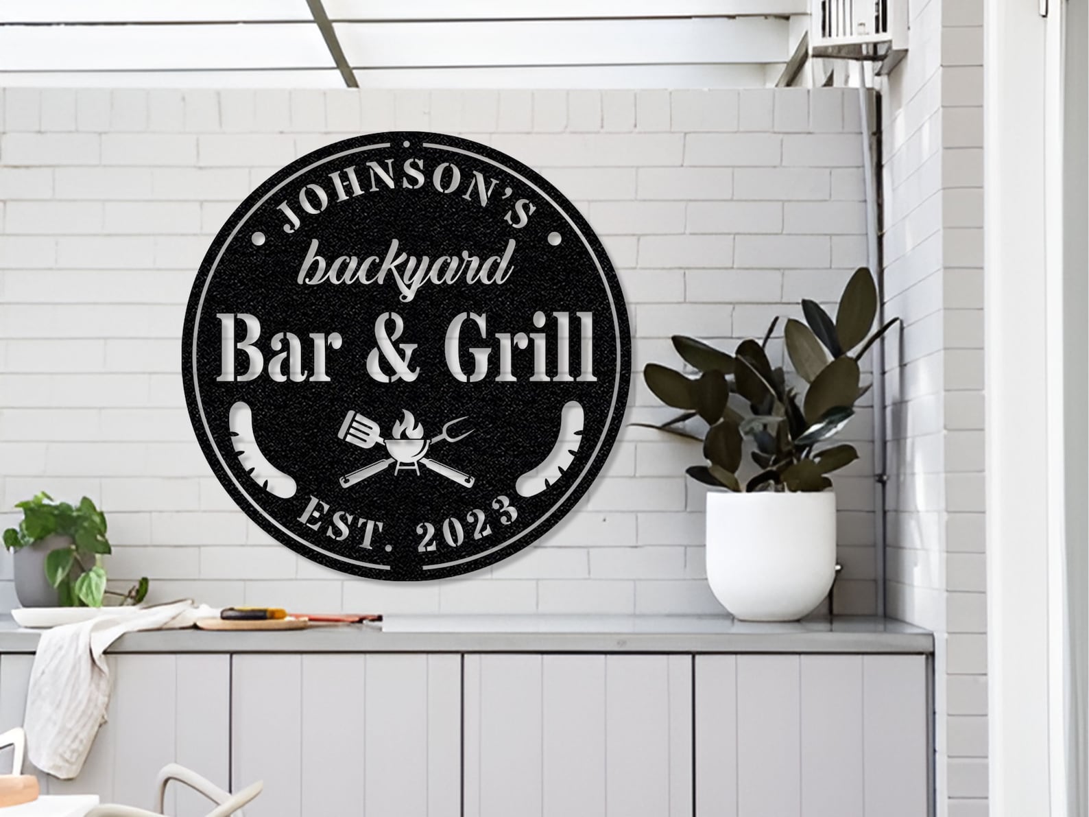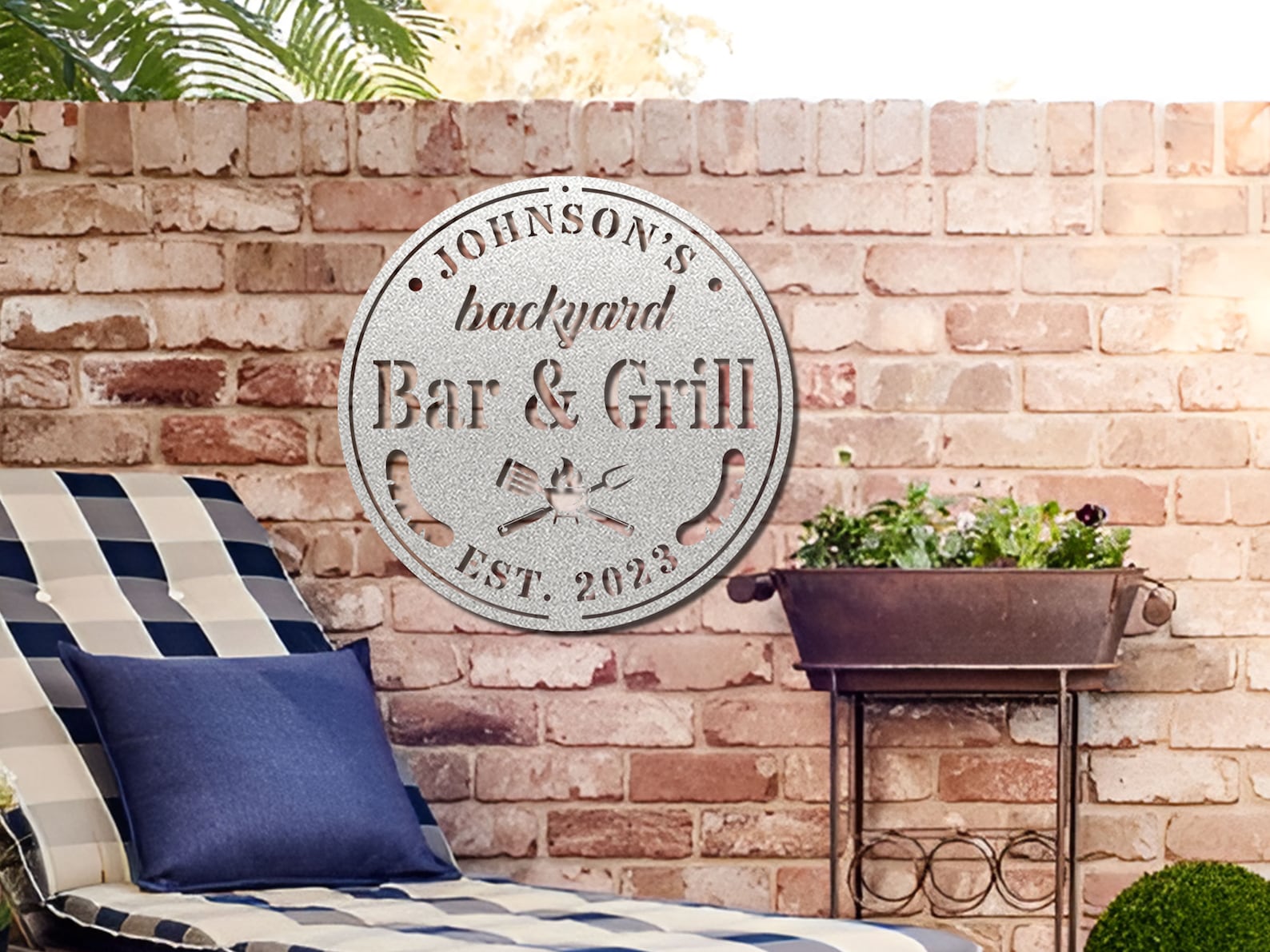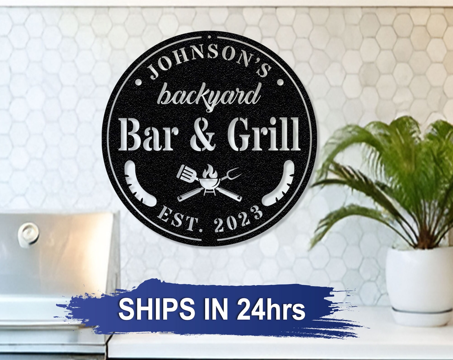 Custom Bar And Grill Metal Wall Art,BBQ Metal Wall Art,Bar Grill Sign,Personalized Sign,Bar Decor,Man Cave Sign,Family Gift Signs,Home Decor,Grill Gifts for Dad,Fathers Day Gifts