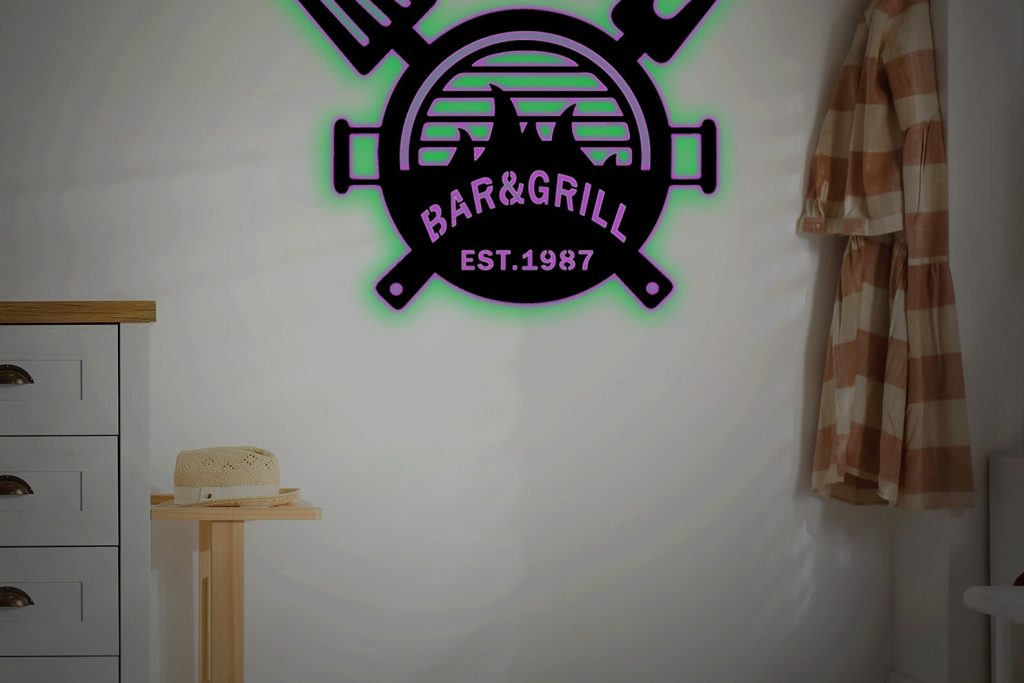 Custom Bar And Grill Metal Wall Led Signs-BBQ Metal Wall Art-Bar Sign-Personalized Sign-Bar Decor-Man Cave Sign-Family Gift Signs-Home Decor