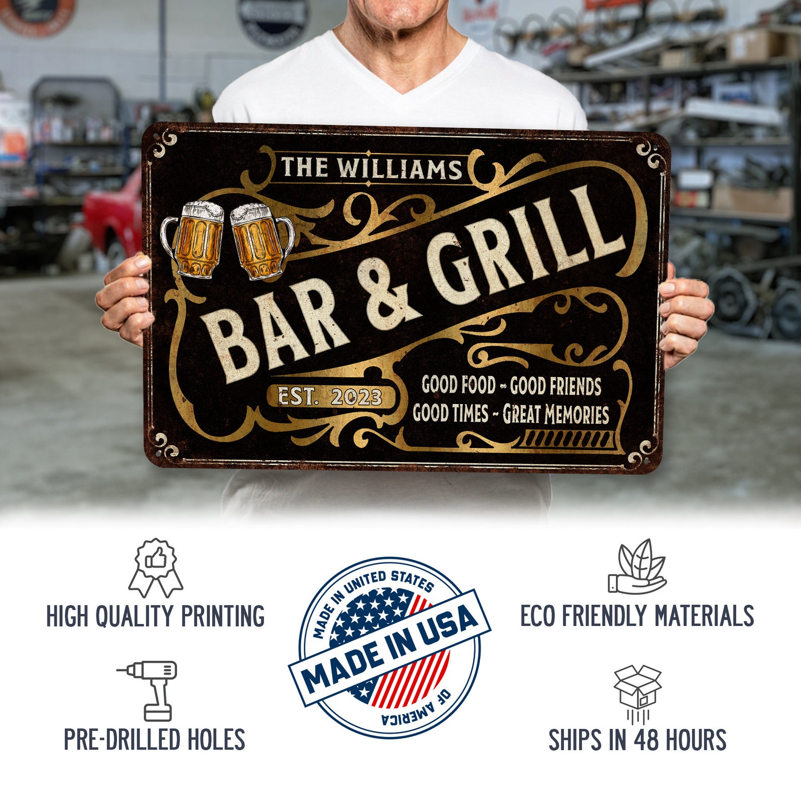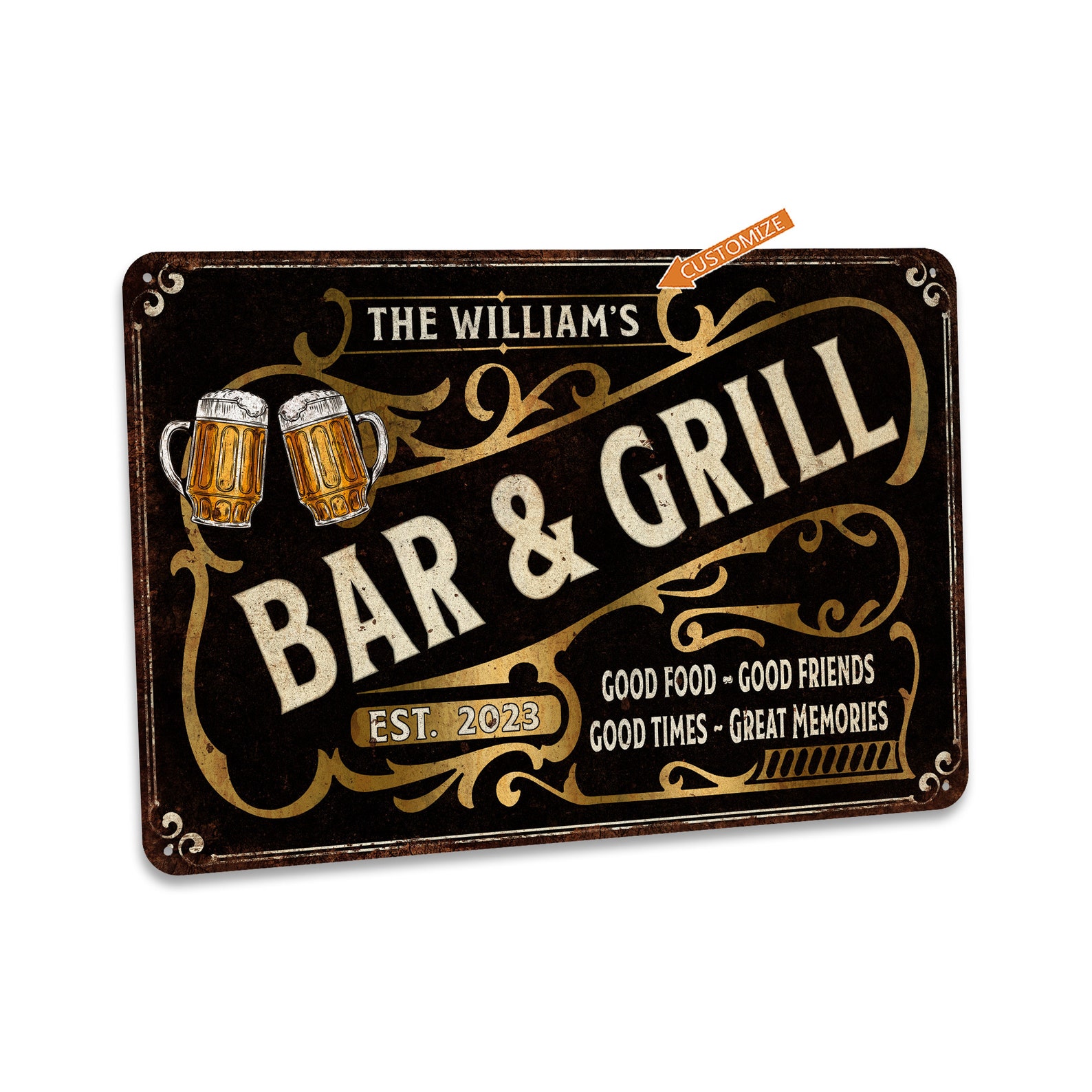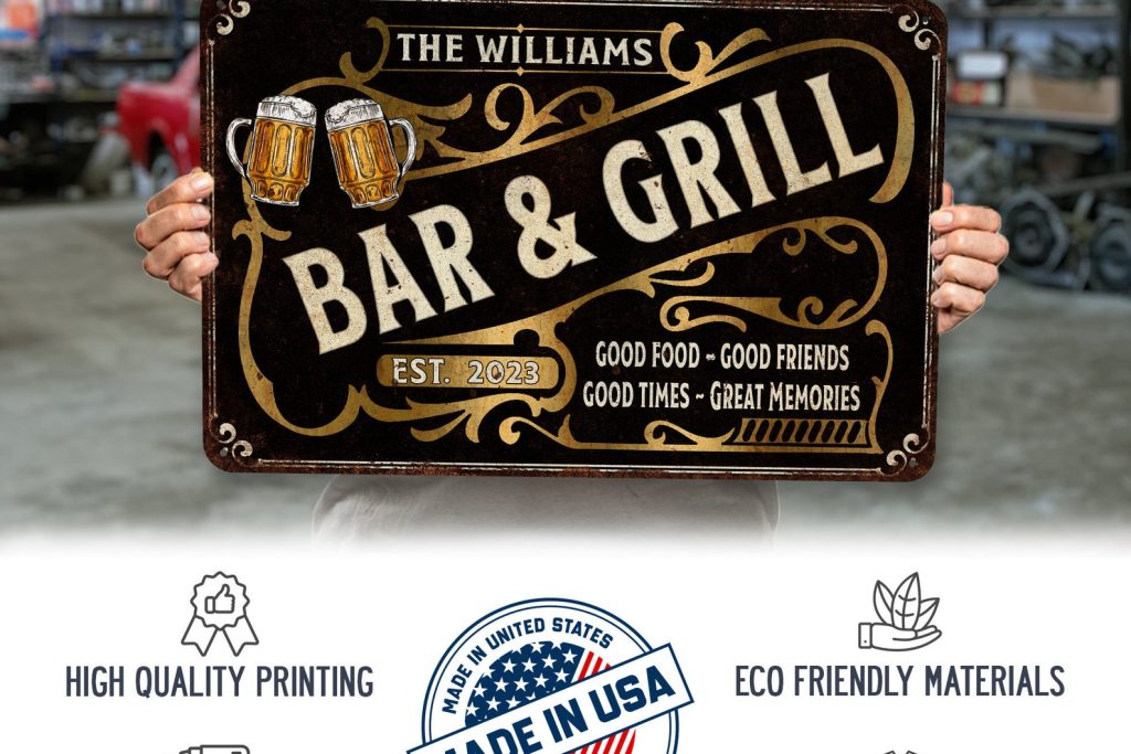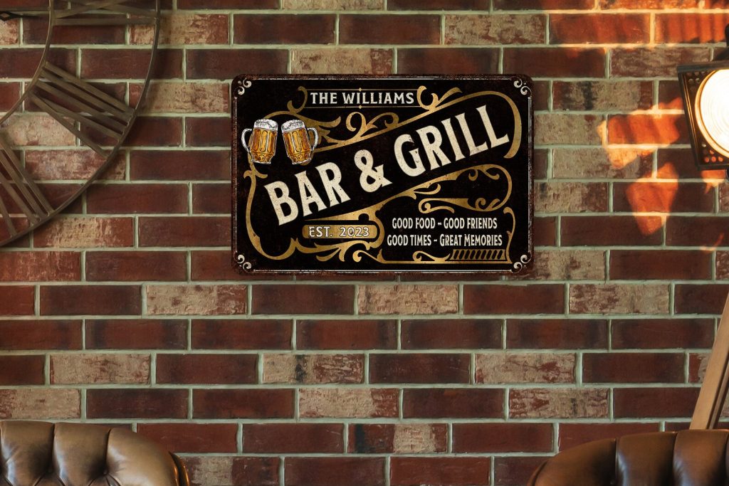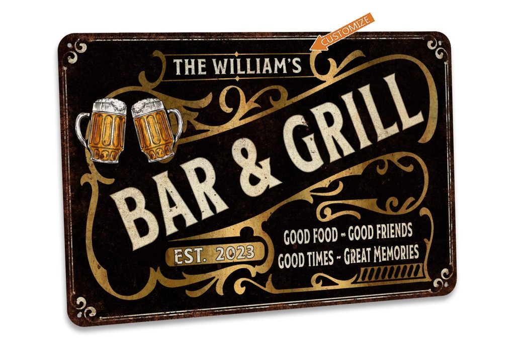Custom Bar & Grill Sign Vintage Bar Decor Custom Metal Sign Home Bar Decor Man Cave Decor Pub Tavern Gifts For Him 108122002168