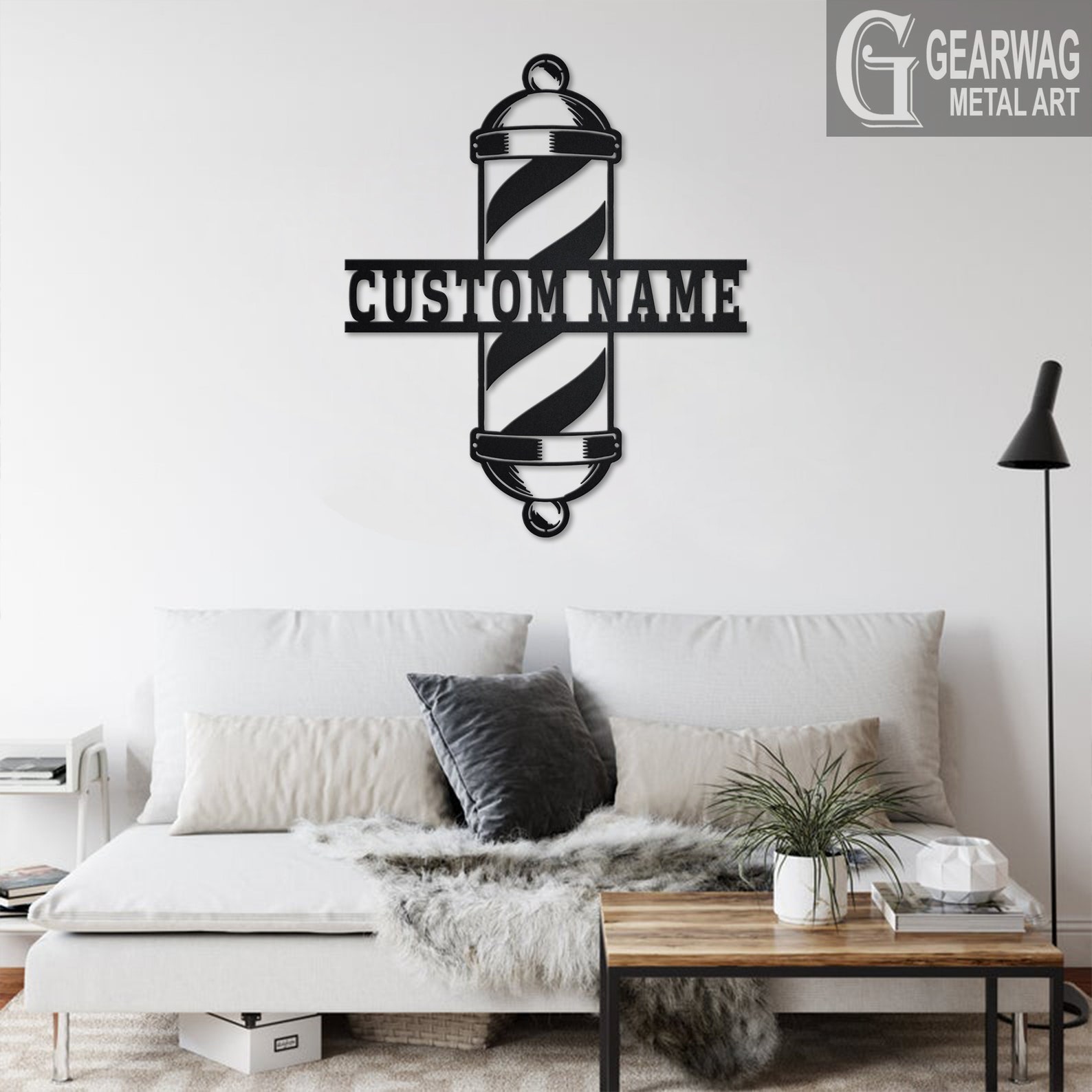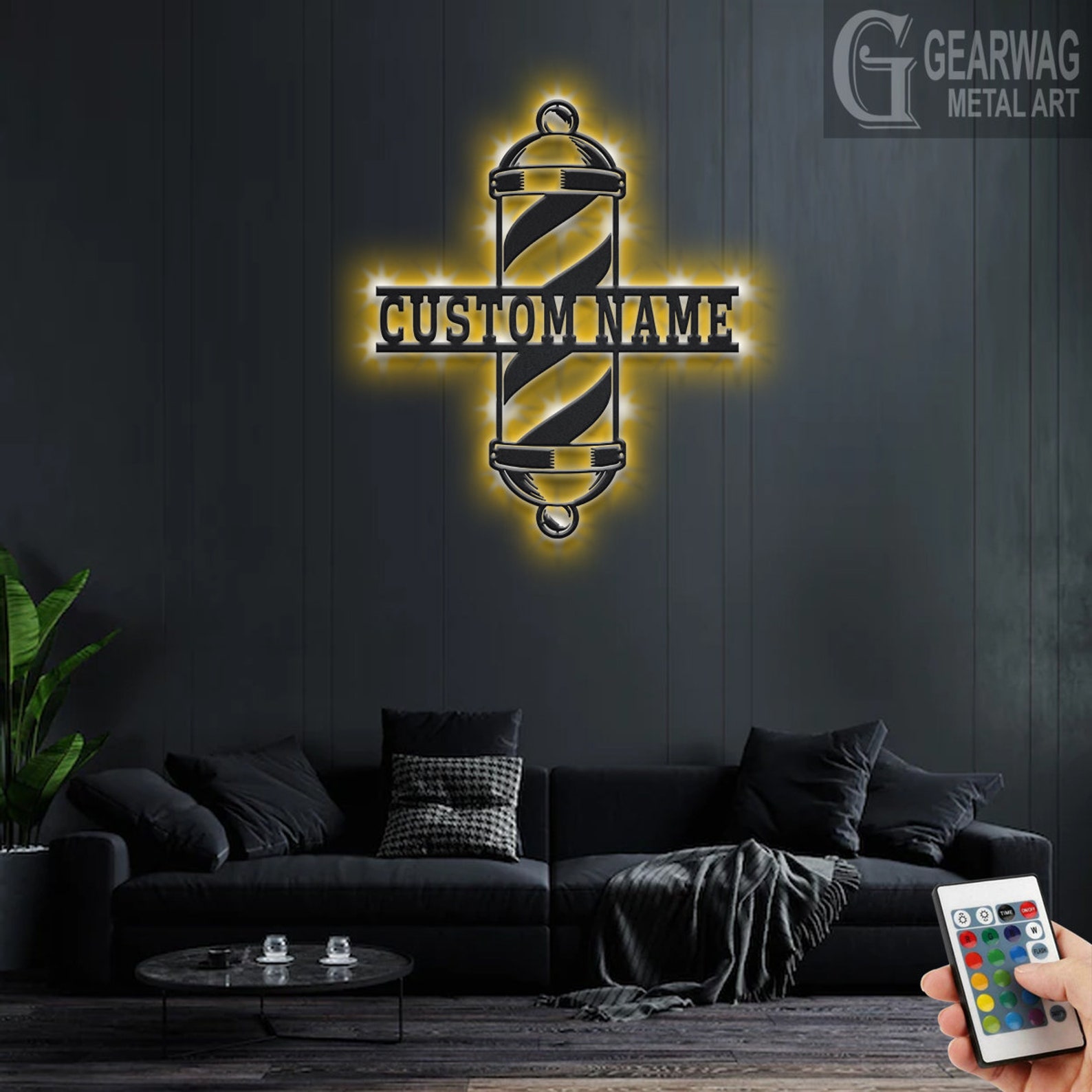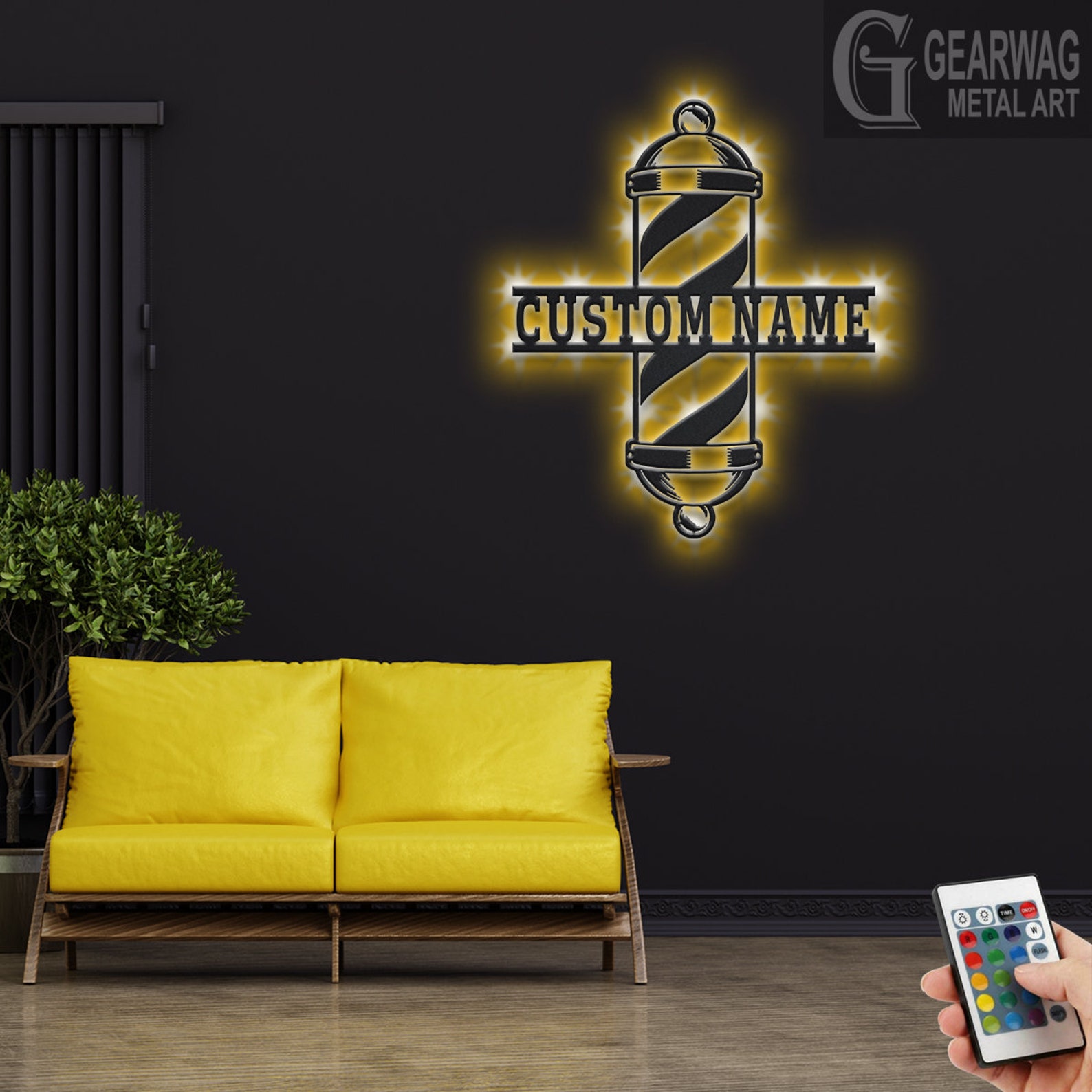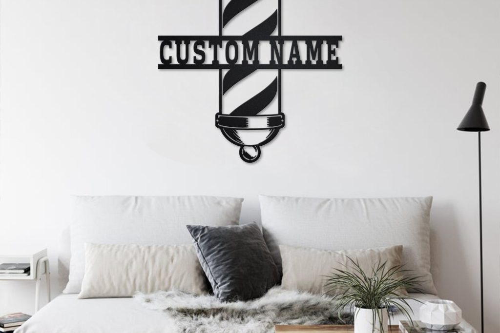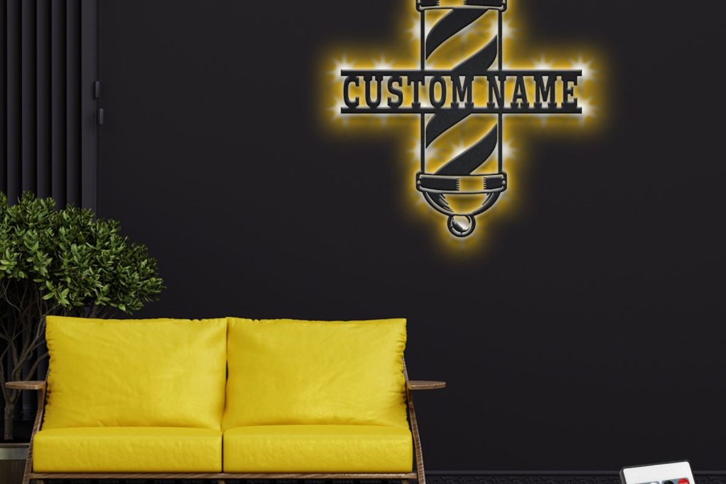 Custom Barber Pole Metal Wall Art with LED & Shop Name