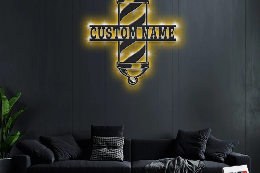Be the first to review “Custom Barber Pole Metal Wall Art with LED & Shop Name”