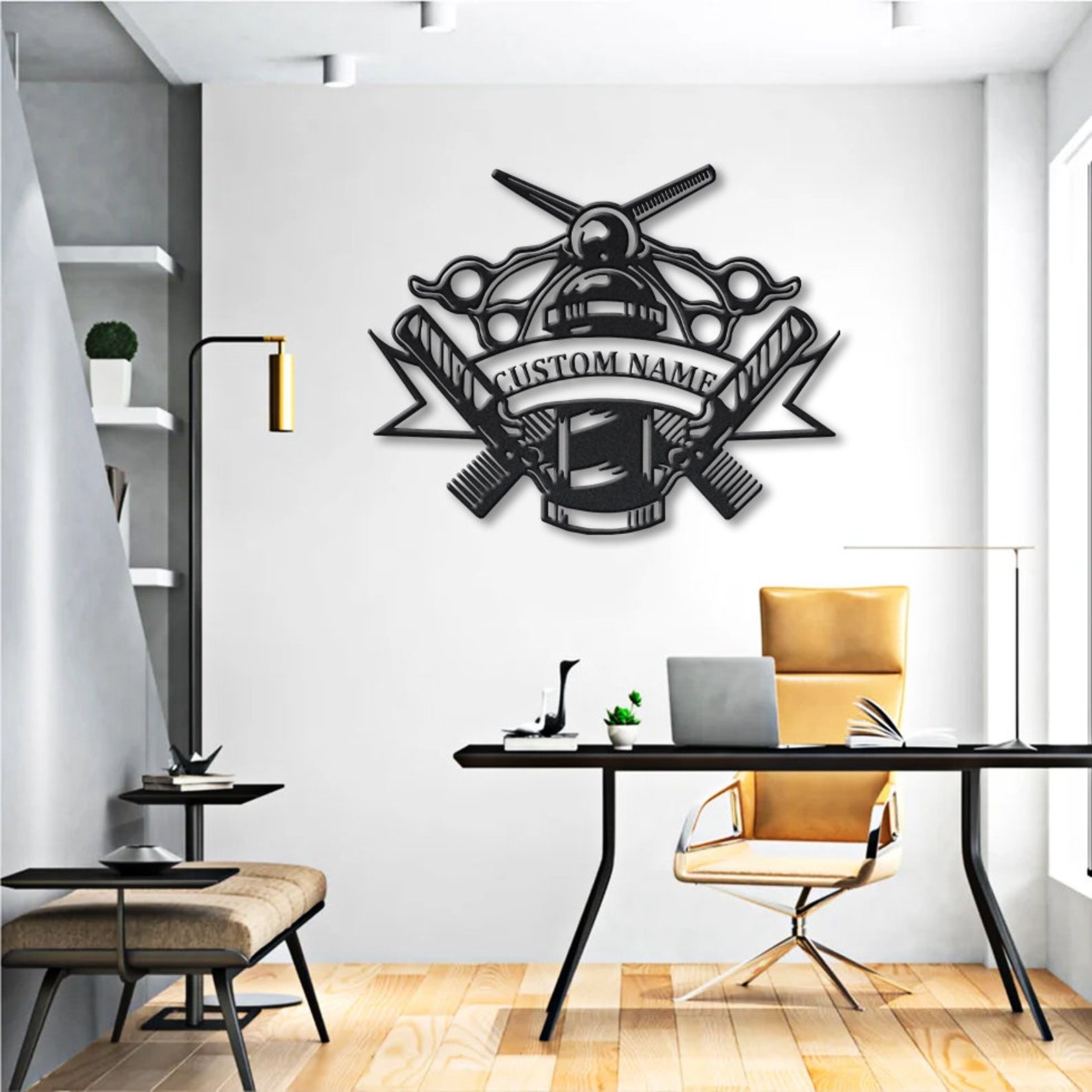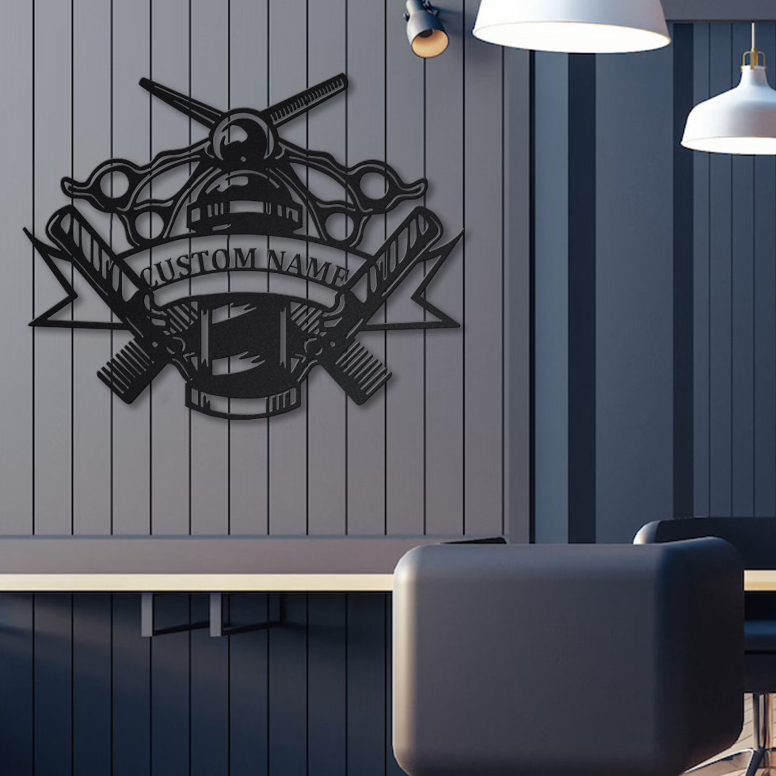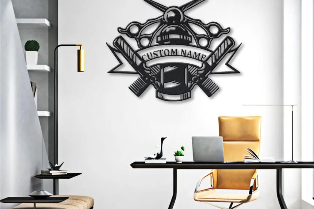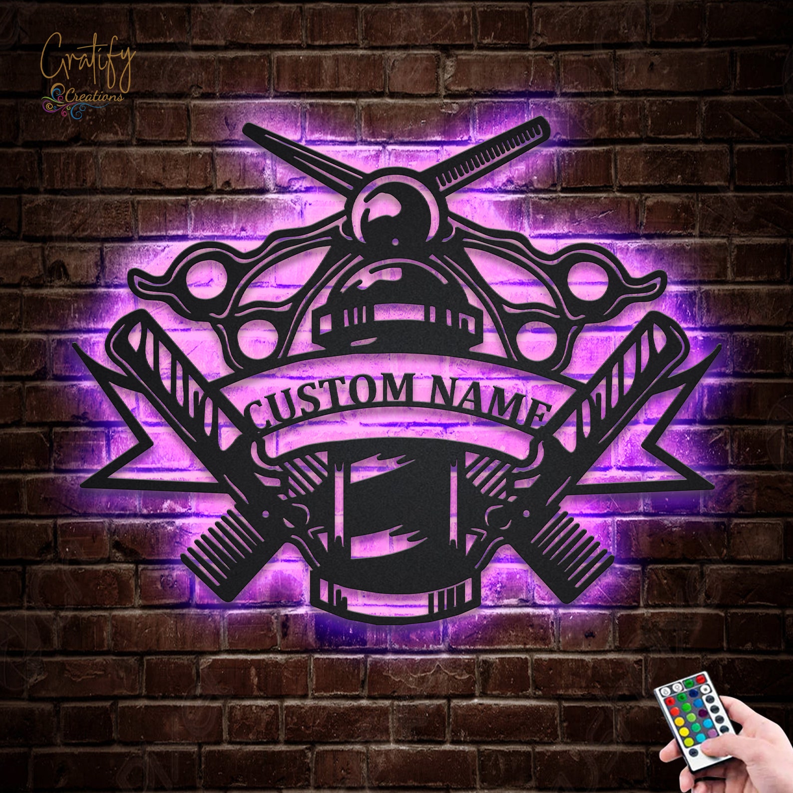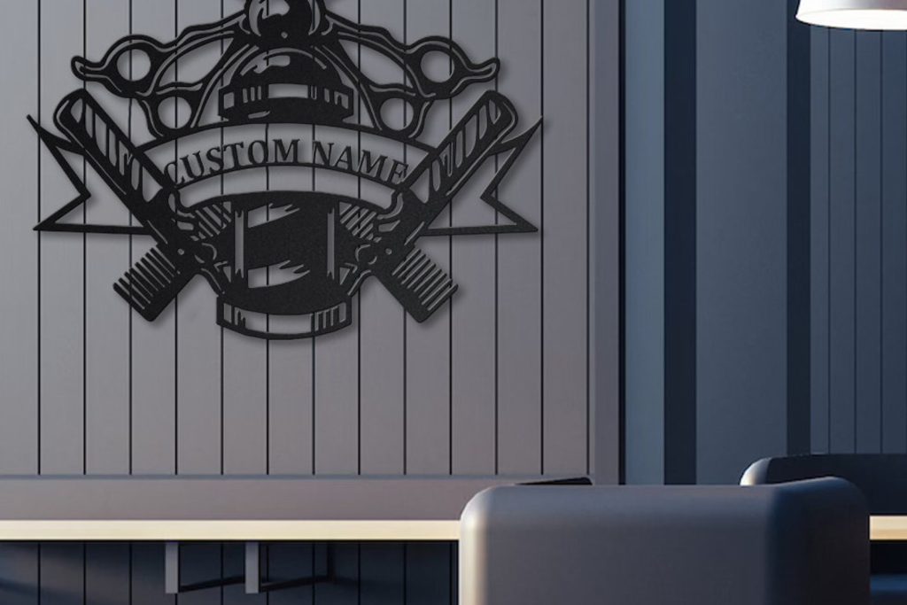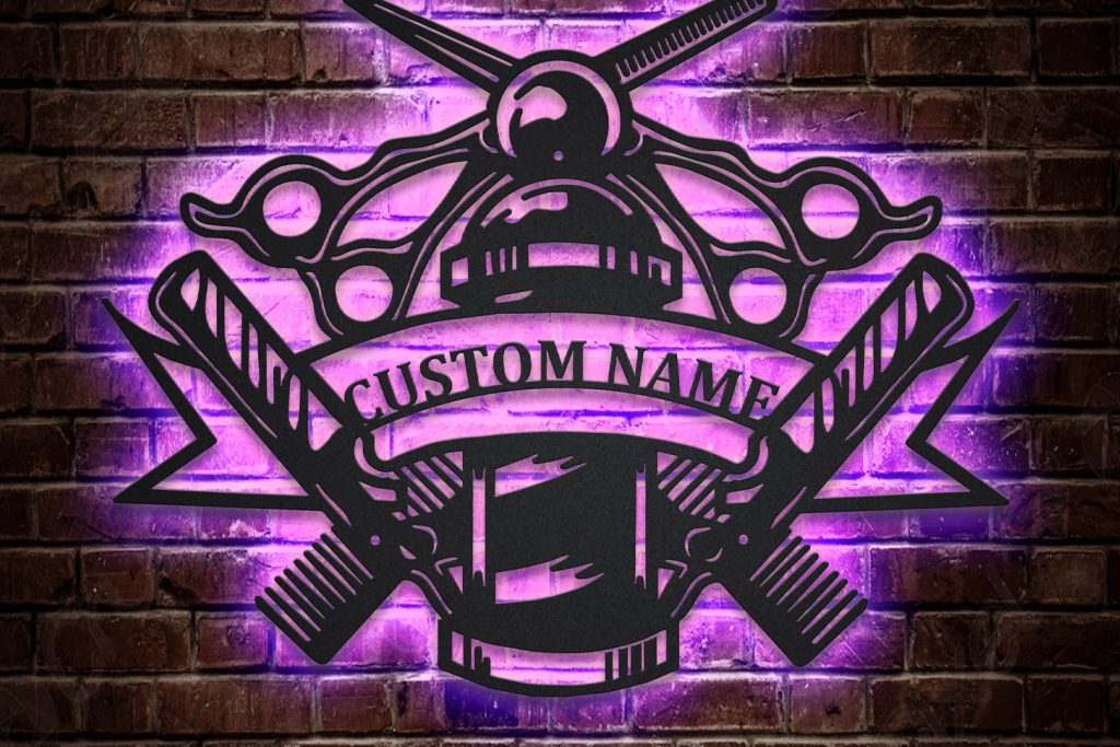 Custom Barber Shop Metal Sign with LED Lights V2