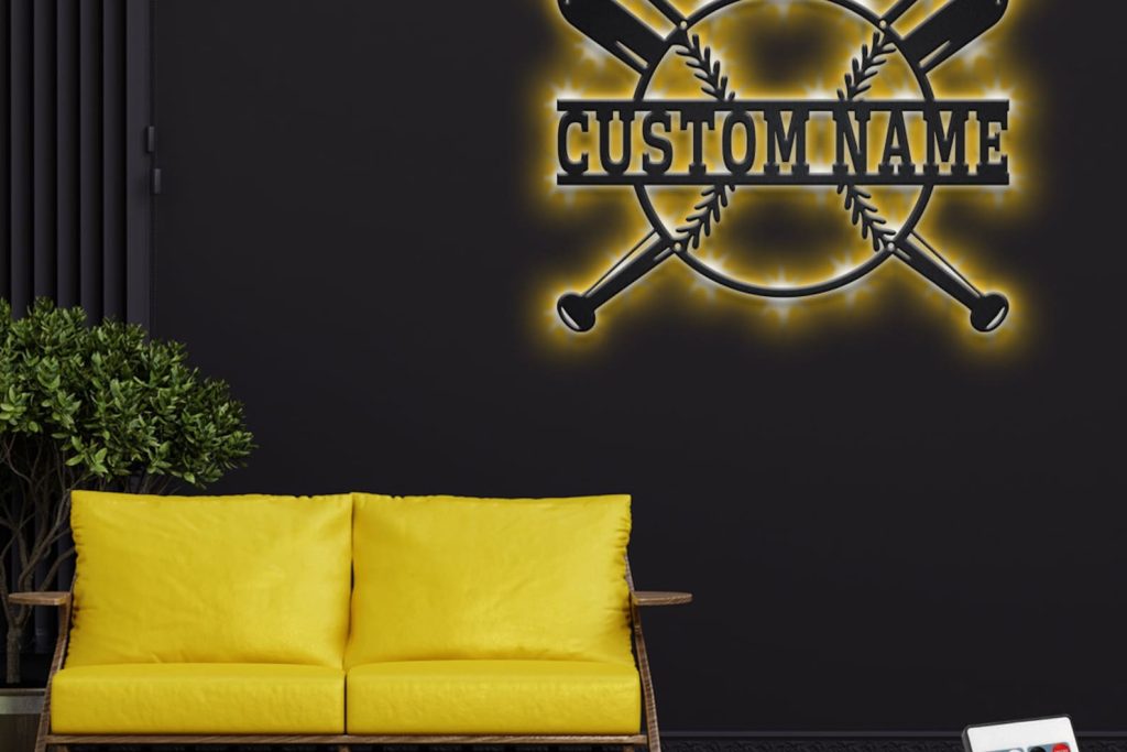 Be the first to review “Custom Baseball Bat Metal Wall Art with LED Light, Personalized Name Sign”