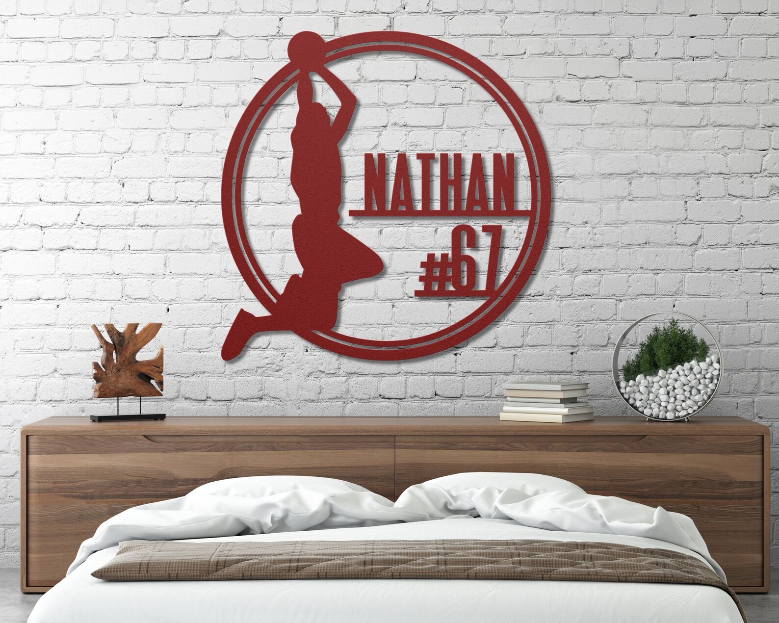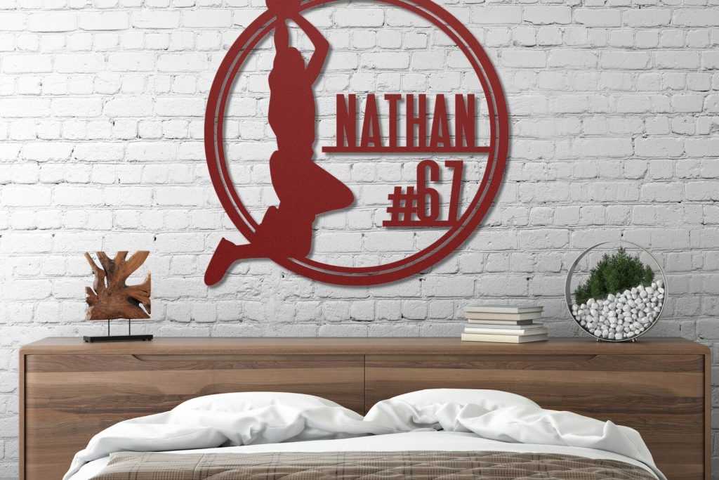 This unique, handcrafted sign is a perfect gift for basketball fans of all ages. Made from high-quality metal, it9;s designed to last and add a sporty vibe to any space. Whether you9;re looking for a standout piece for your home gym, a unique decoration for your kid9;s room, or the perfect gift for a basketball coach, this sign delivers. It features the name of your choice, making it a truly personalized item.