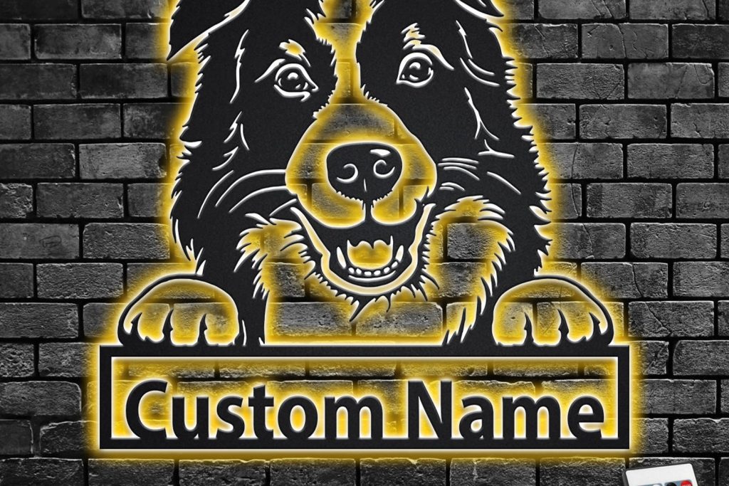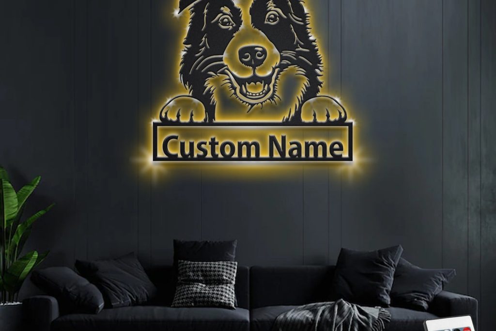 Custom Border Collie Metal Sign with LED – Dog Room Decor