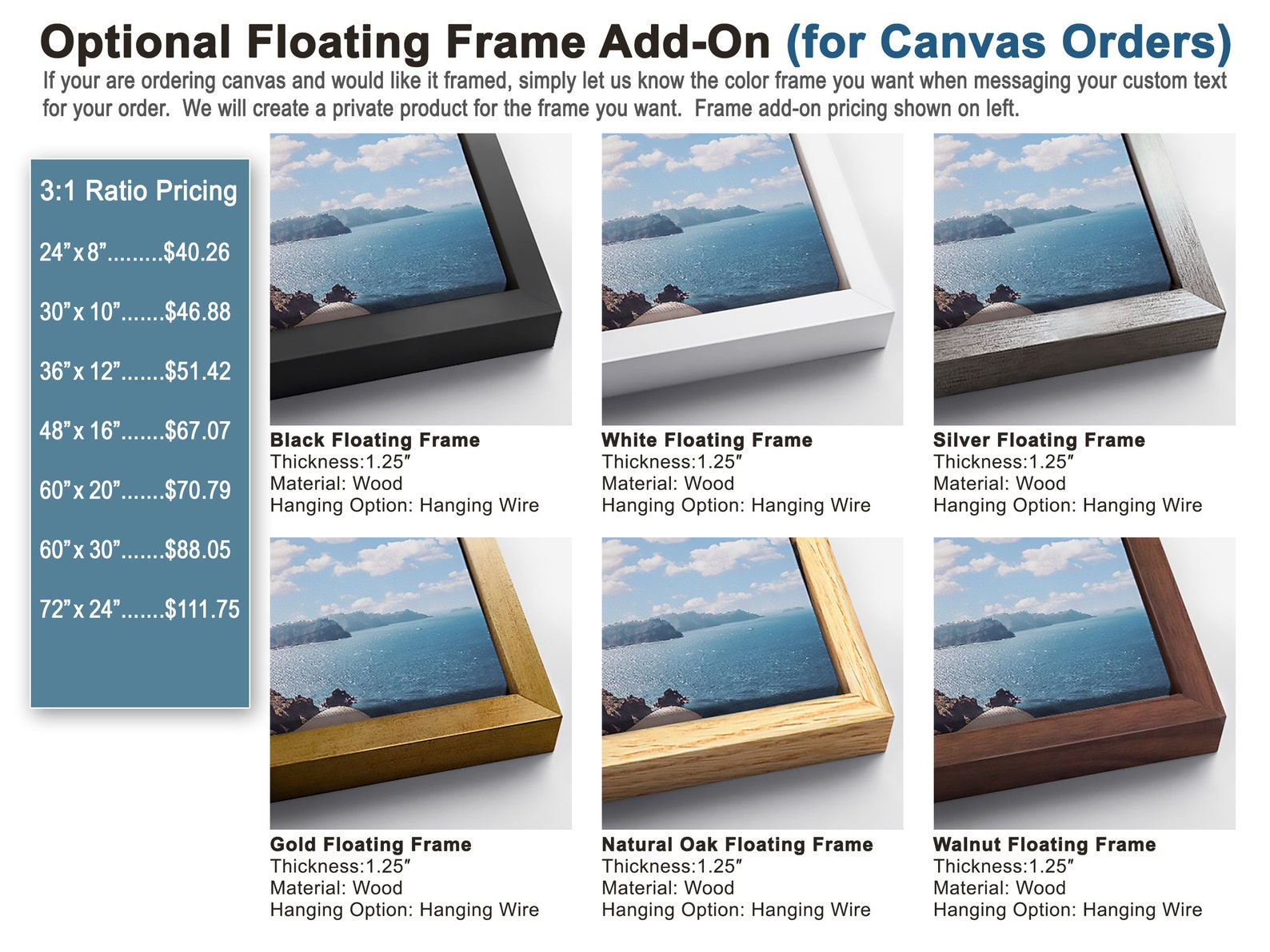 We will install a sawtooth hanger on the back of your canvas or leave it off if requested.