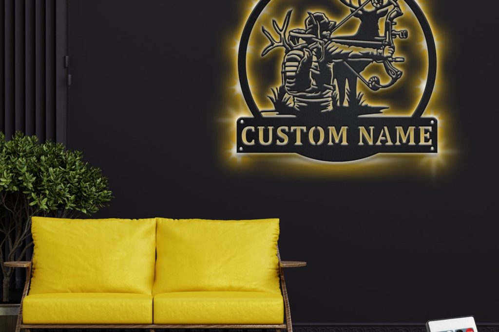 Custom Bow Hunting Metal Wall Art with LED & Name
